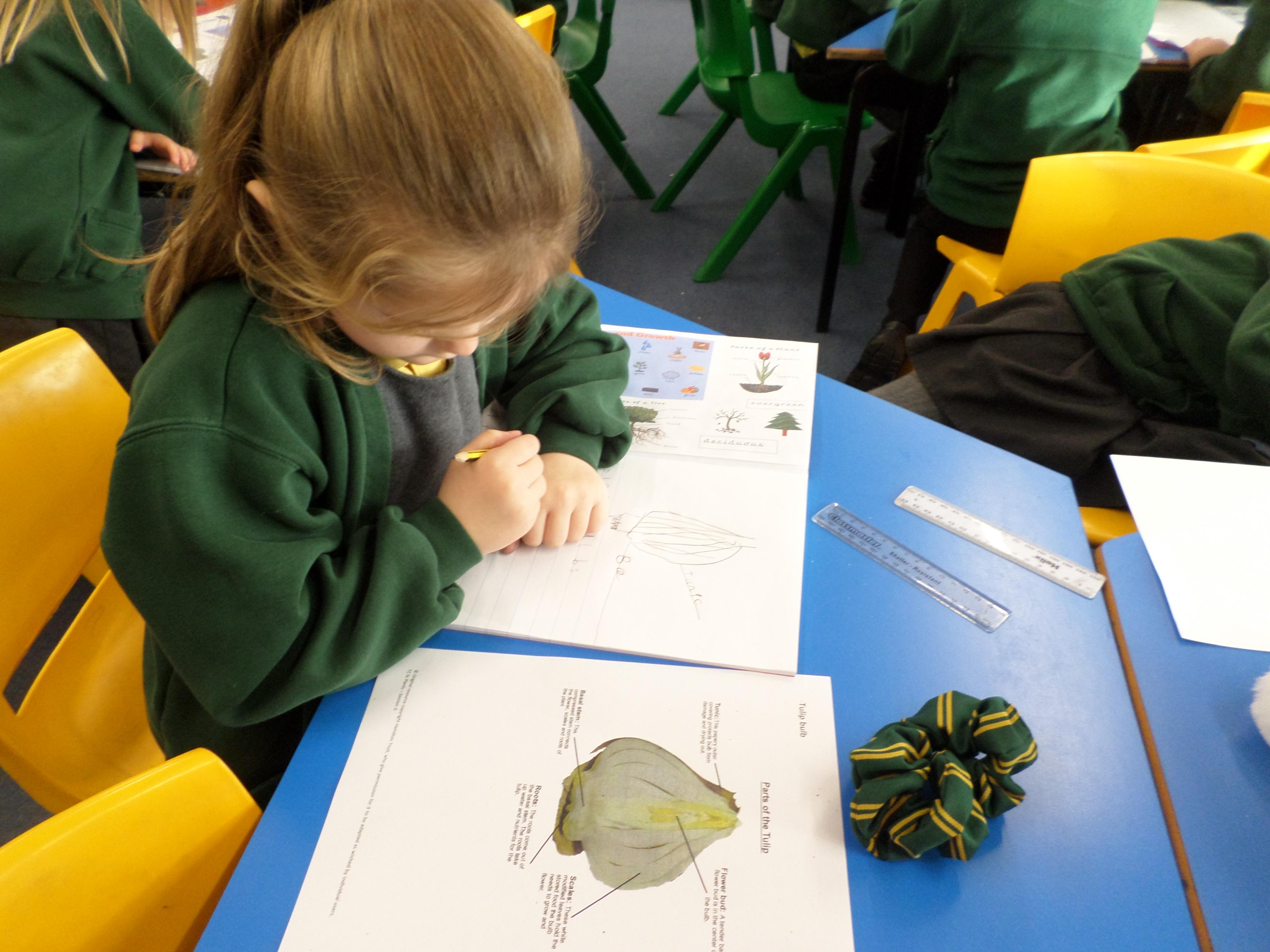 Today Willow pupils took a good look at different types of bulbs. They drew a dissected bulb and labelled the different parts.
