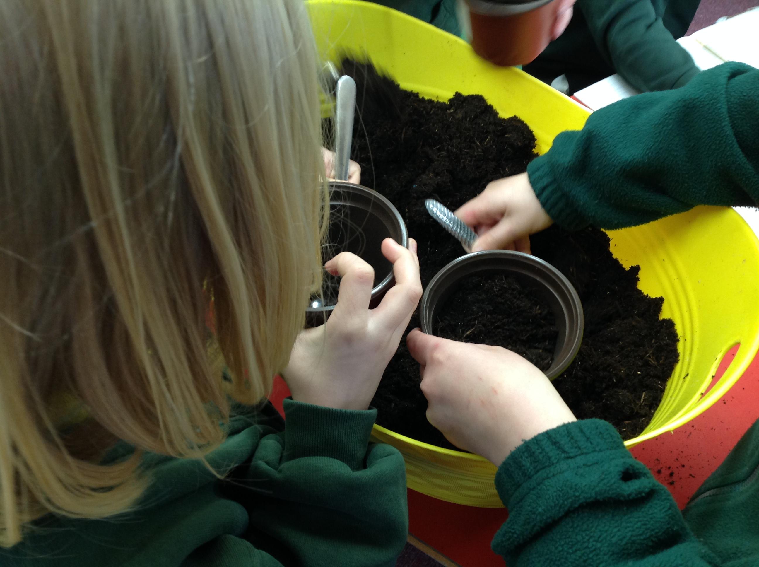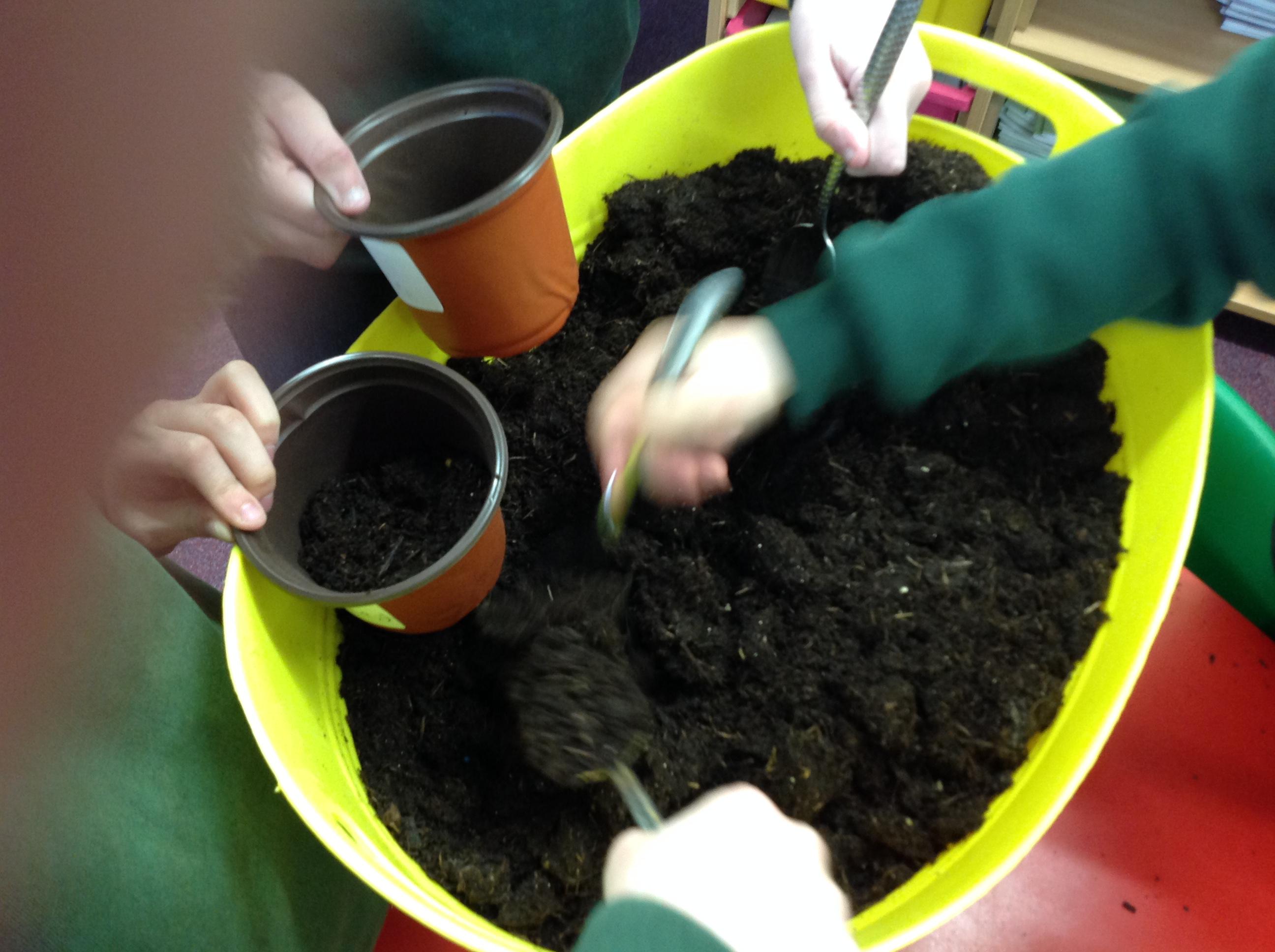 This term we are looking at how plants grow, pollinate and are fertilised. So we have decided to grow our own Sunflowers to see how the process works. The children have been busy potting and planting this afternoon. They also used all their knowledge from last term to predict how their plants will grow in the first week.