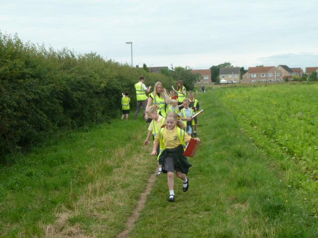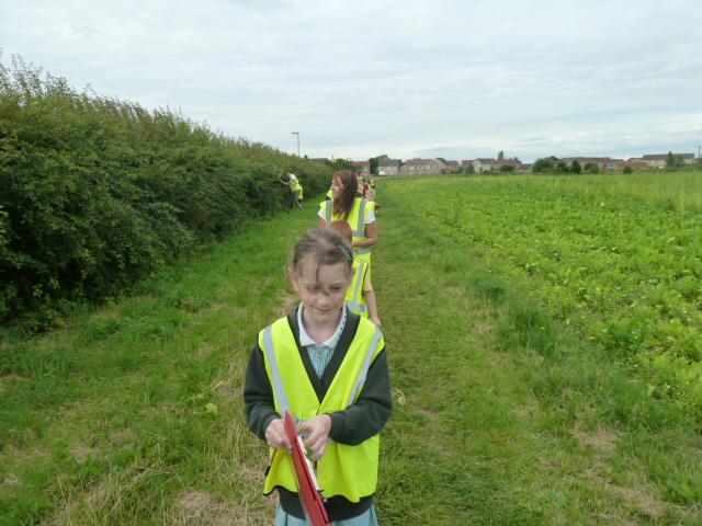We also went on a hedgerow walk to find flowers and mini beasts.  We saw different types of ladybird, beetles and caterpillars and we collected small samples of the different plants to identify.  We were glad it was much warmer this time!
