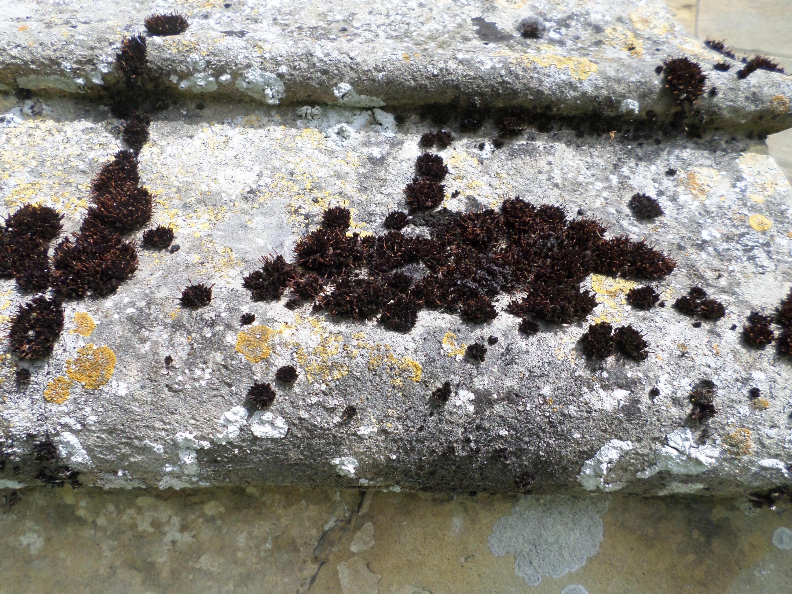We found that the deciduous trees were all in leaf and that a lot of the moss had dried up in the sunshine, including the moss that was growing on the telephone box.  We found different types of plants growing in the shady areas near the church walls and that the flowers on some trees had already begun to turn into fruit.  The water had a green algae plant on its surface and a lot more reeds.