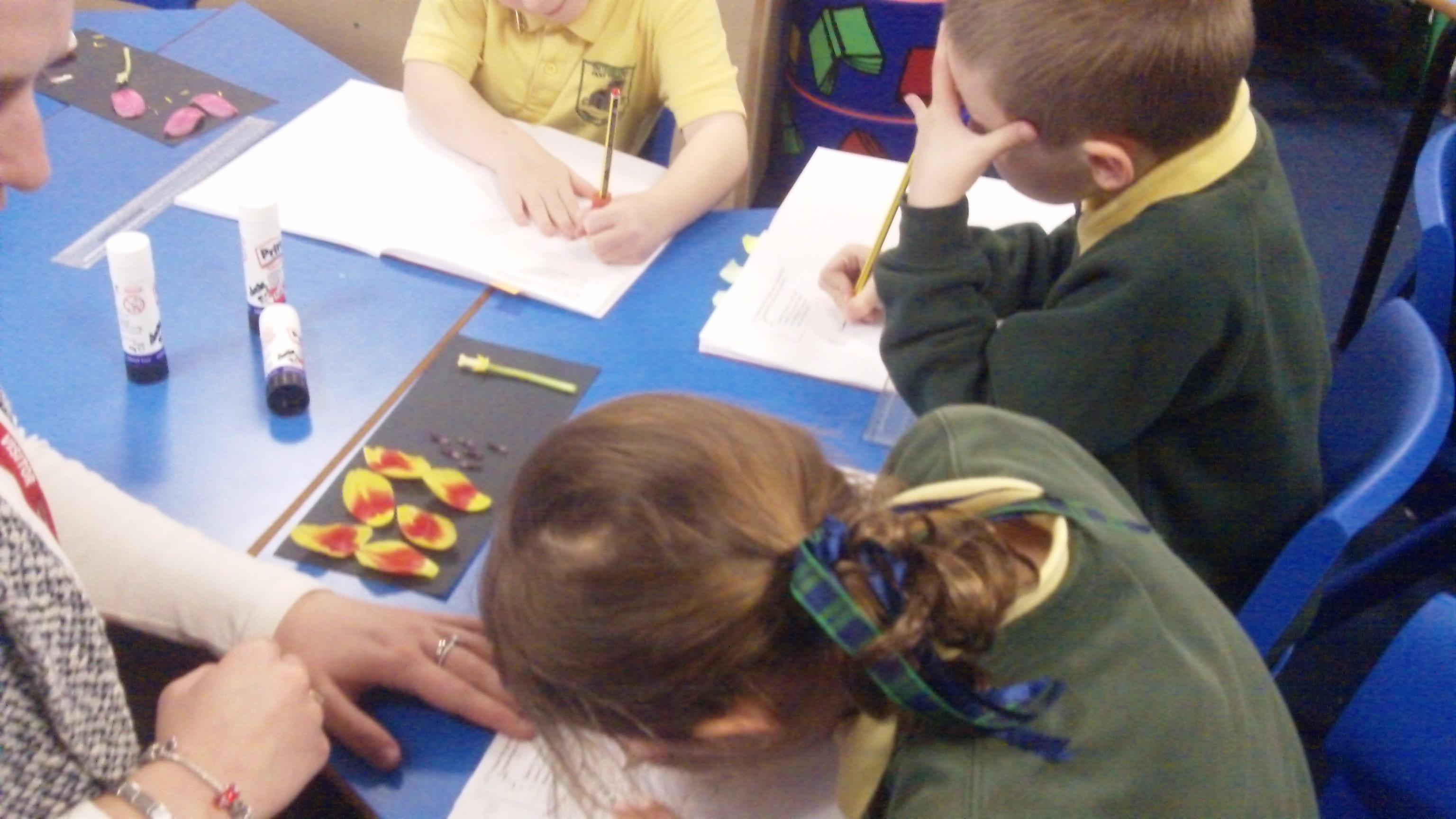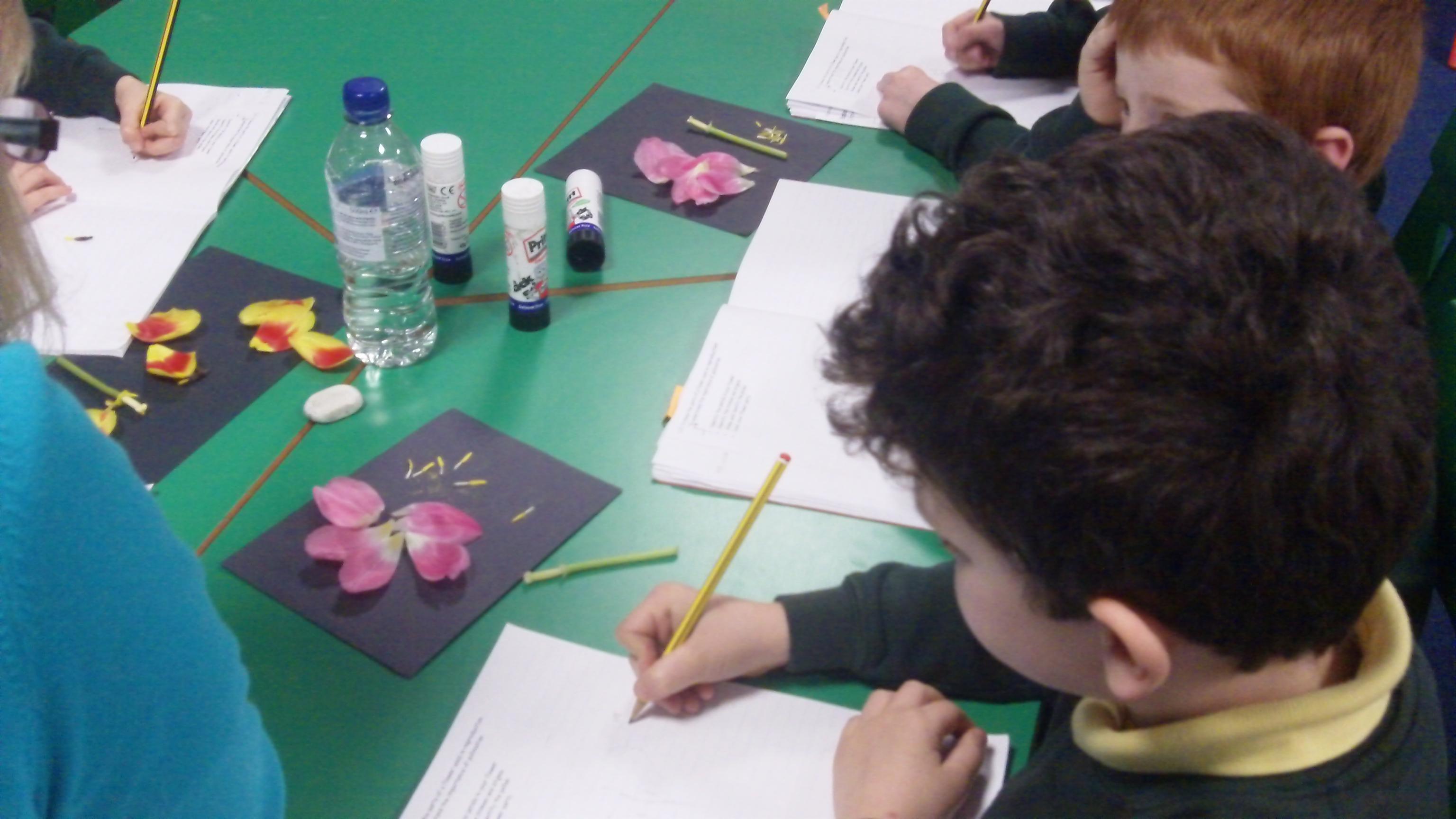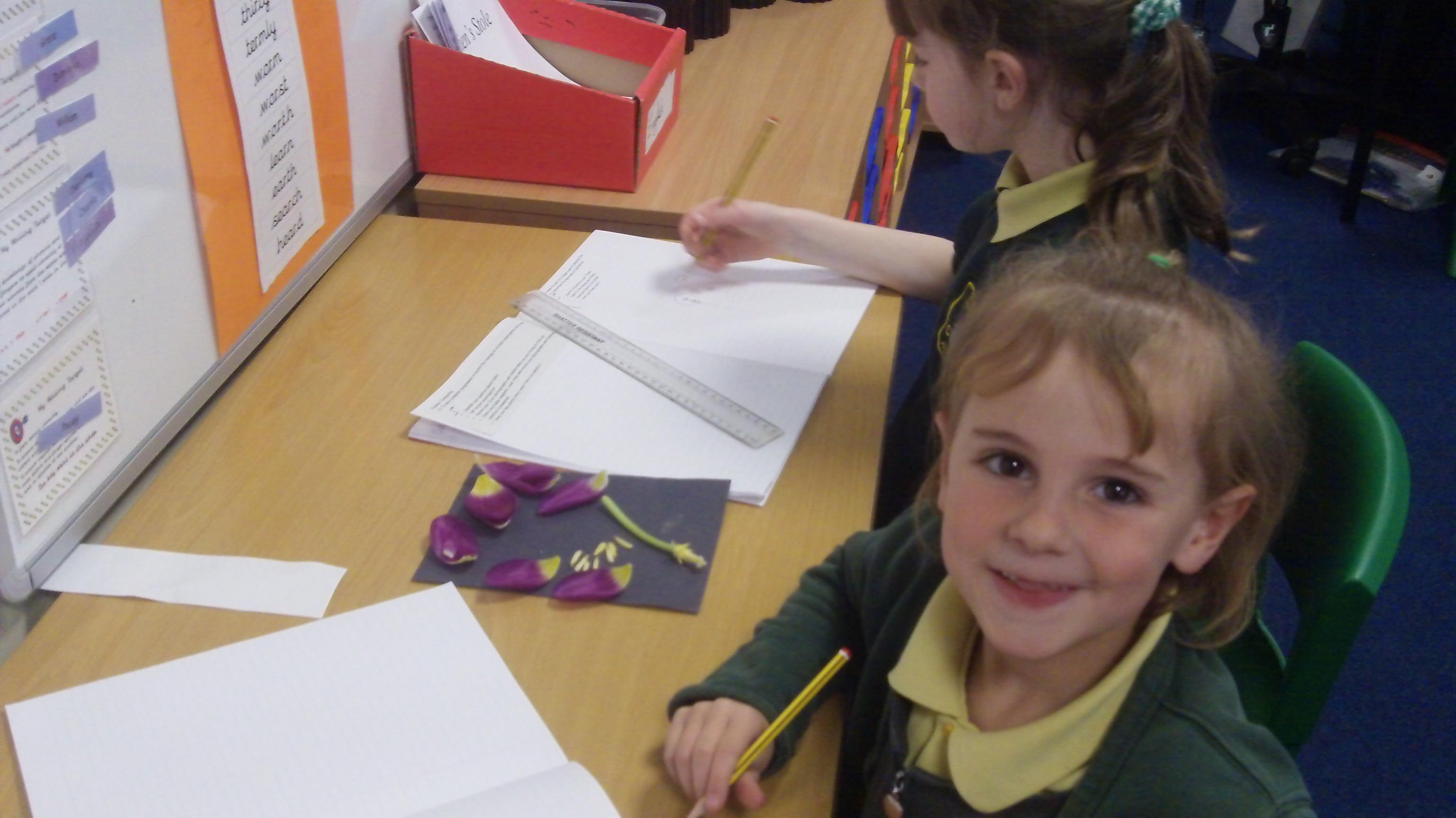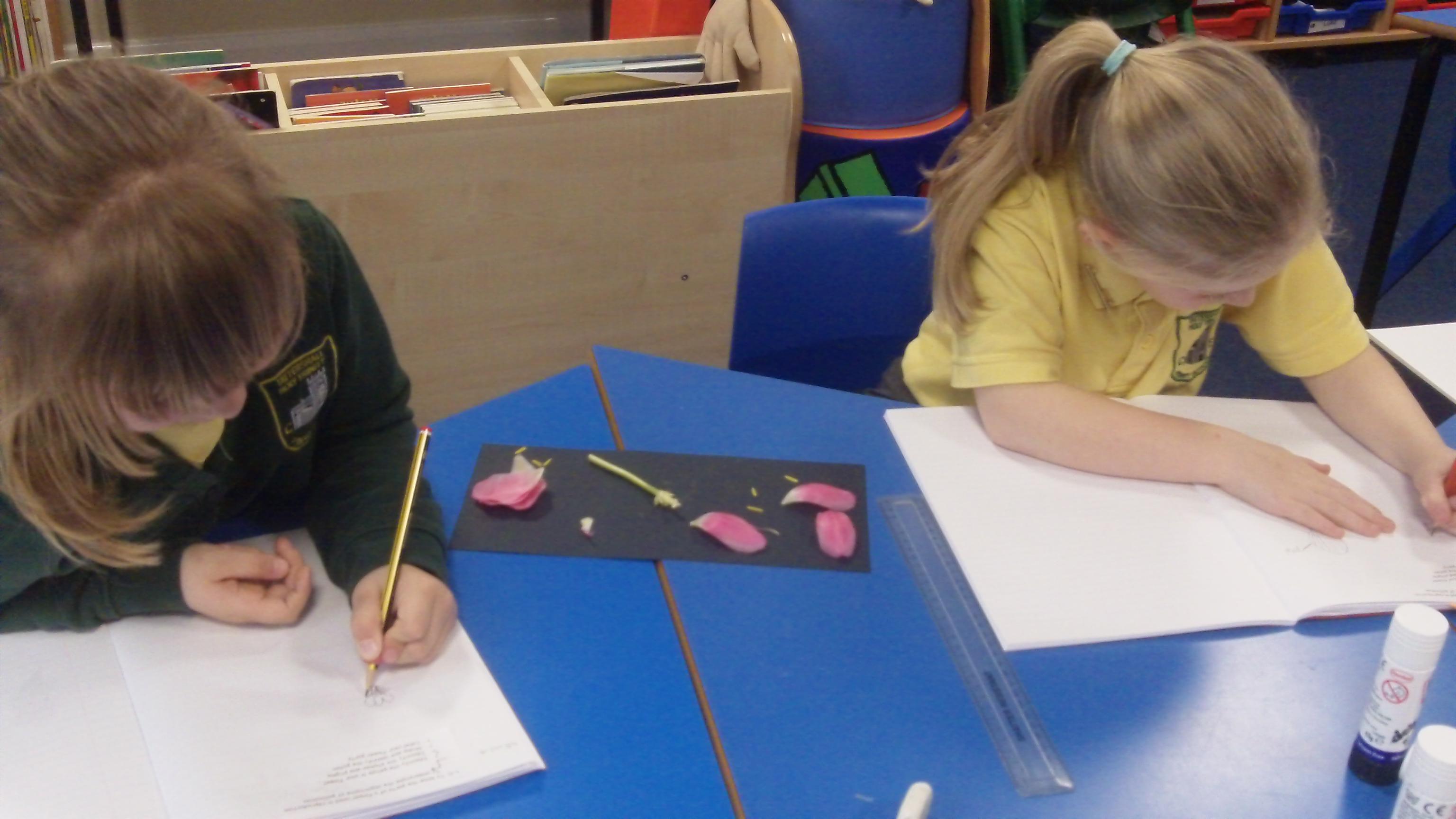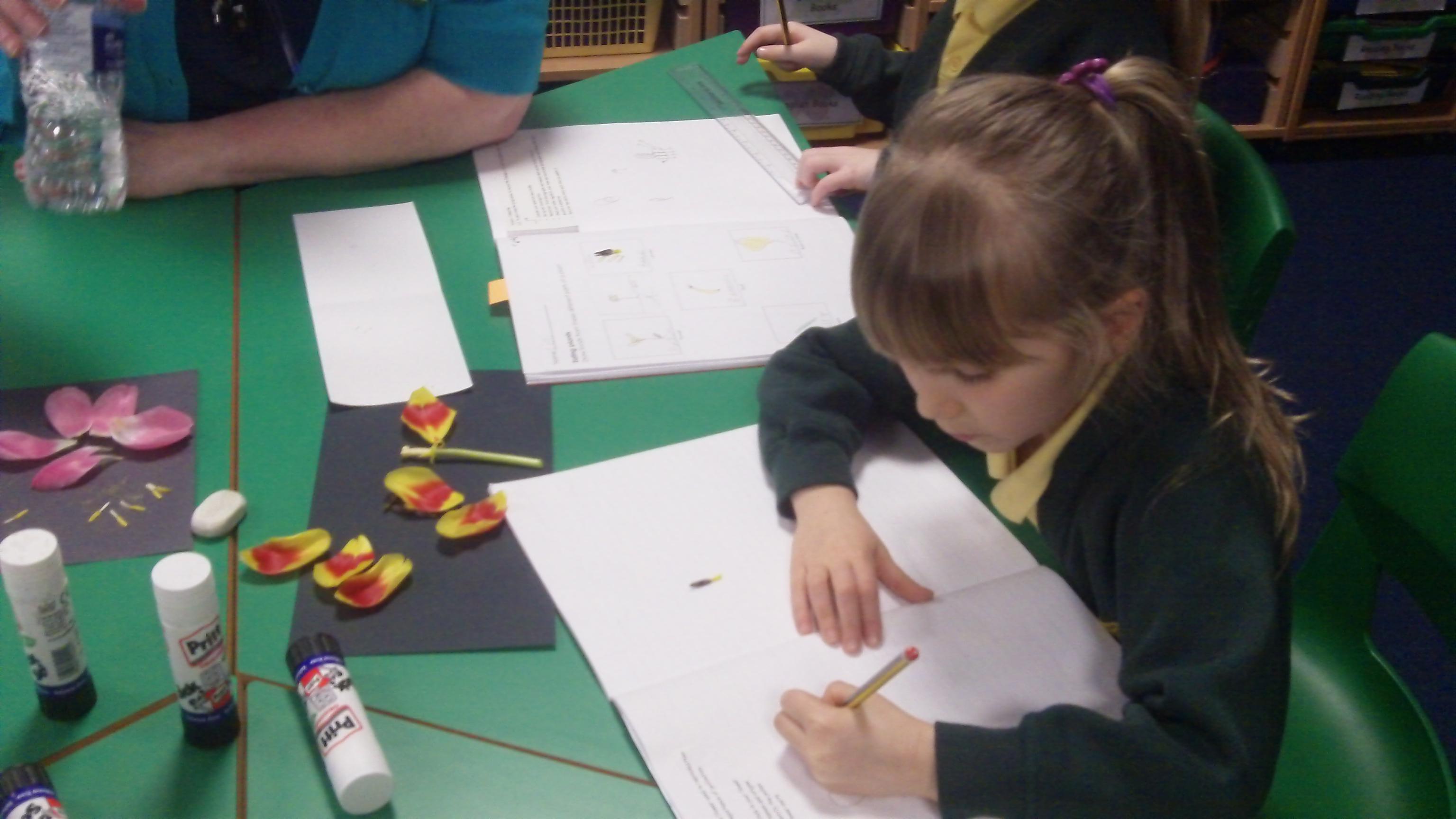Oak have been learning the different parts of a flower and how they help in reproducing more flowers.  We dissected some tulip flowers to identify the stigma, stamen and pollen.  We found that different coloured tulips had different coloured stigma and stamen and even the pollen was different too.