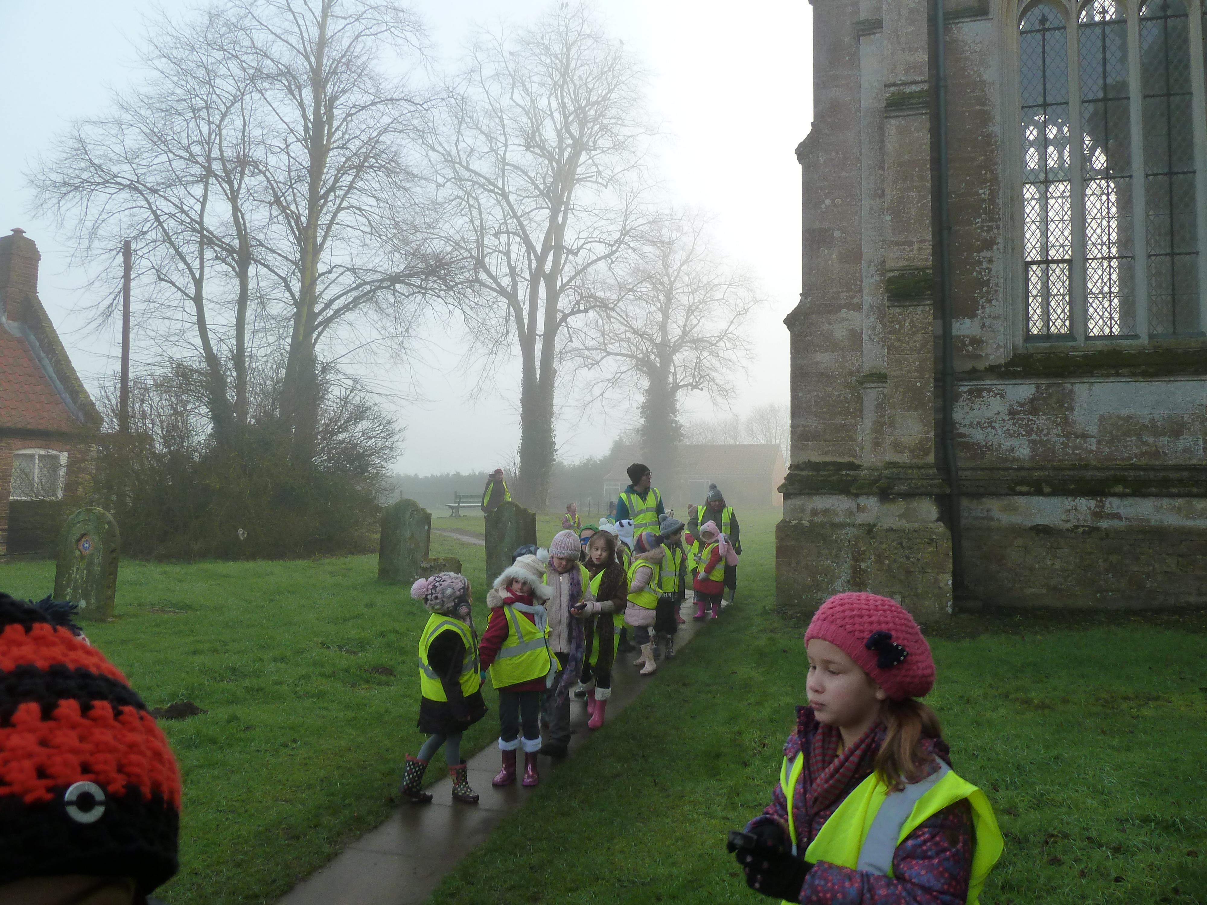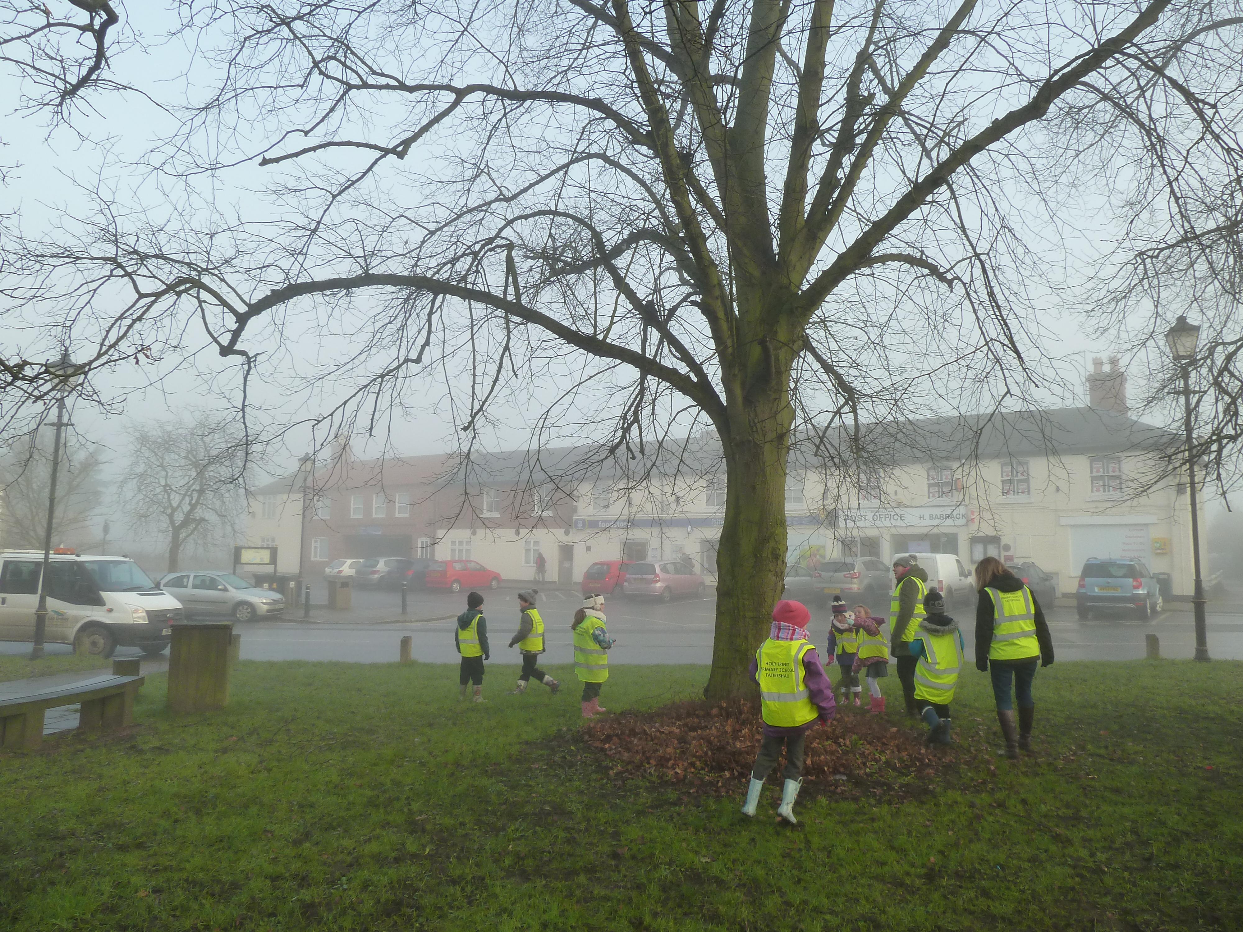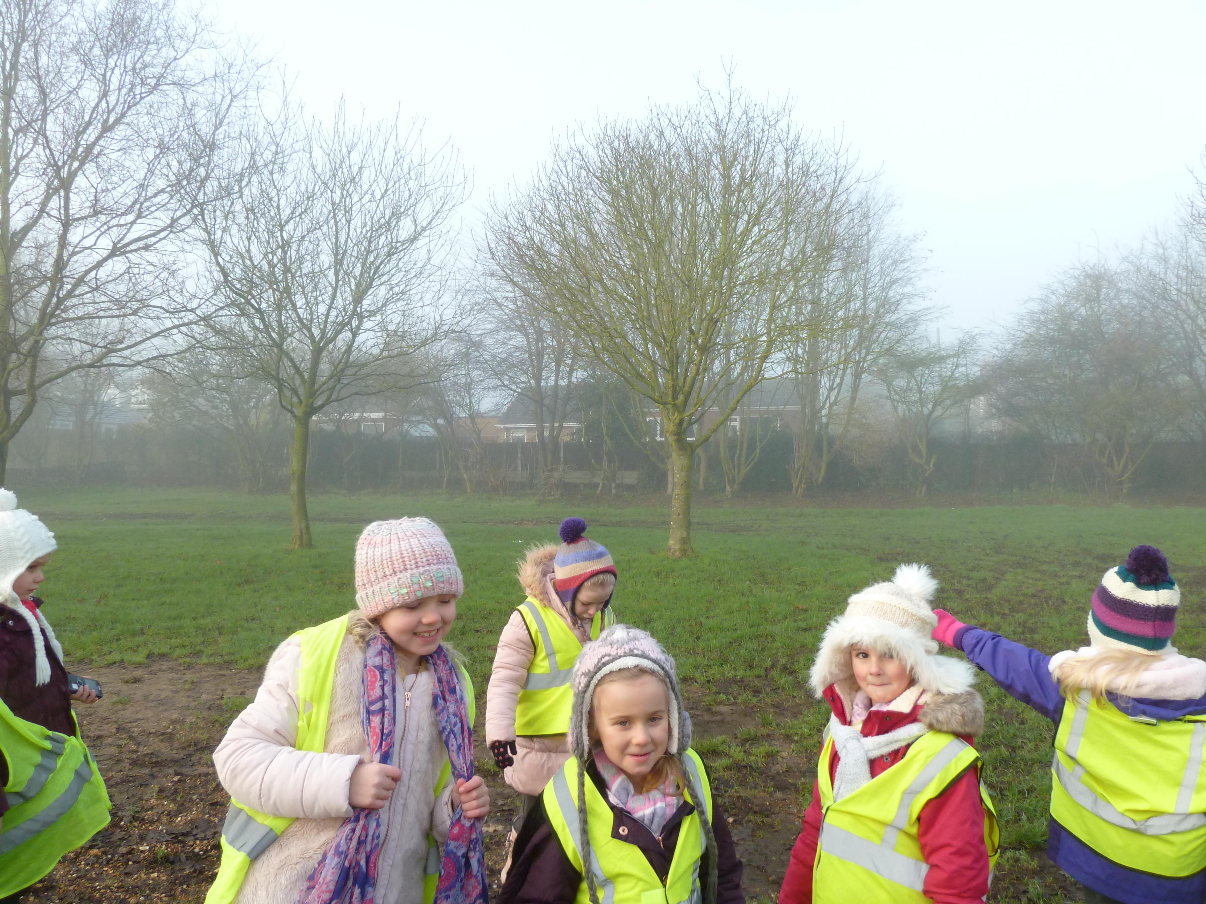 On a very foggy, cold winter's morning Oak went in search of plants in the local environment as part of their plant topic in Science.  It was freezing!  We looked out for evergreen trees, deciduous trees, signs of spring and both wild or garden plants.  We found out that plants grow in very unusual places!