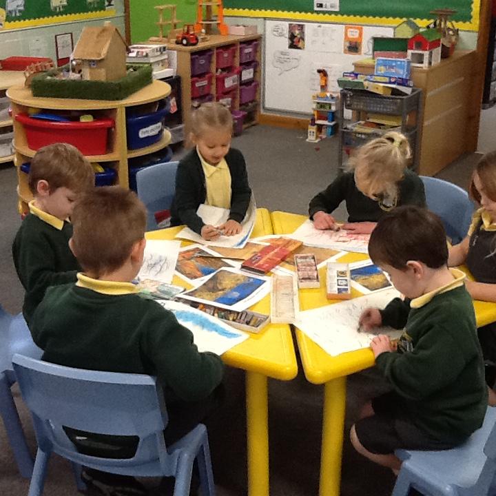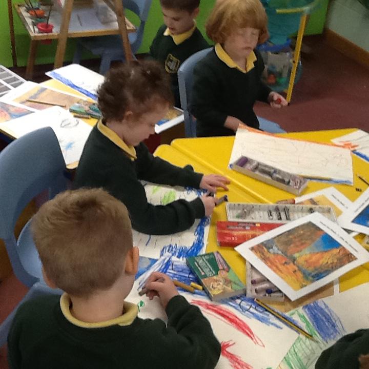 The children have looked at the artist Vincent Van Gogh and studied some of his autumnal paintings. They then looked at the style he used to create his paintings and had a go at the technique themselves, ensuring they used autumnal colours.