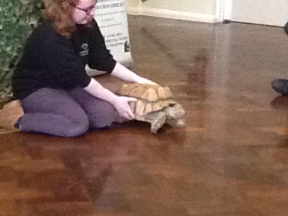 Daisy was a 12 year old tortoise from Africa. Her shell grows with her and is made from keratin. She is a reptile.
