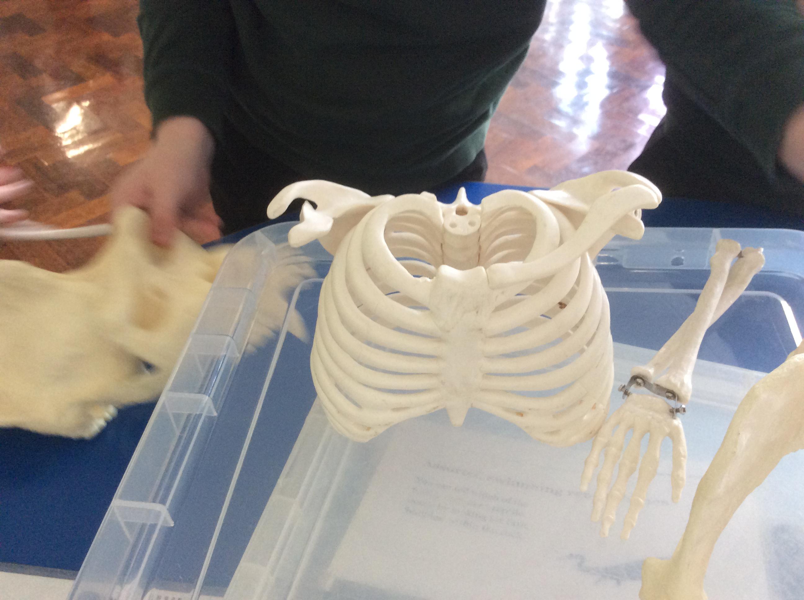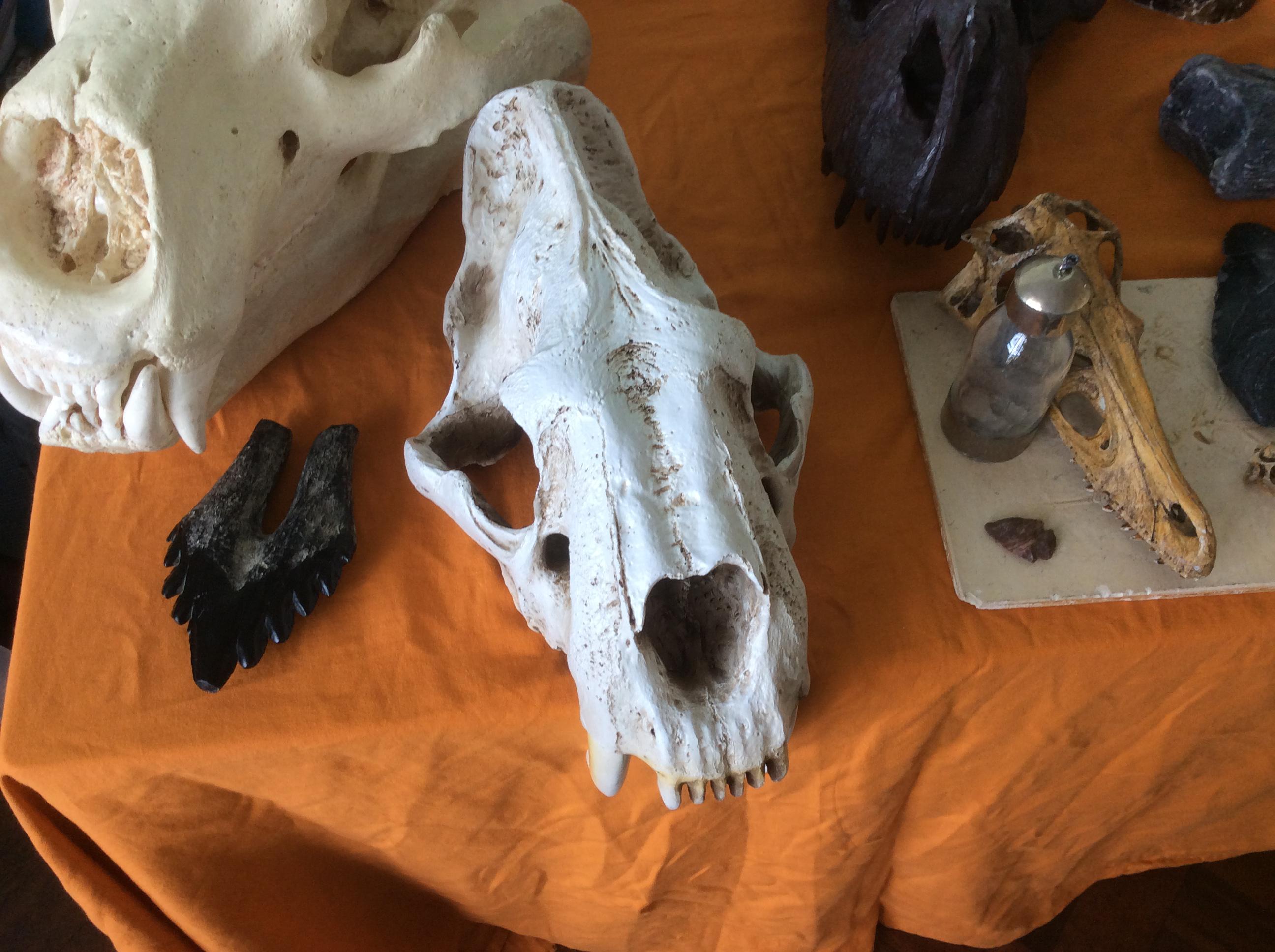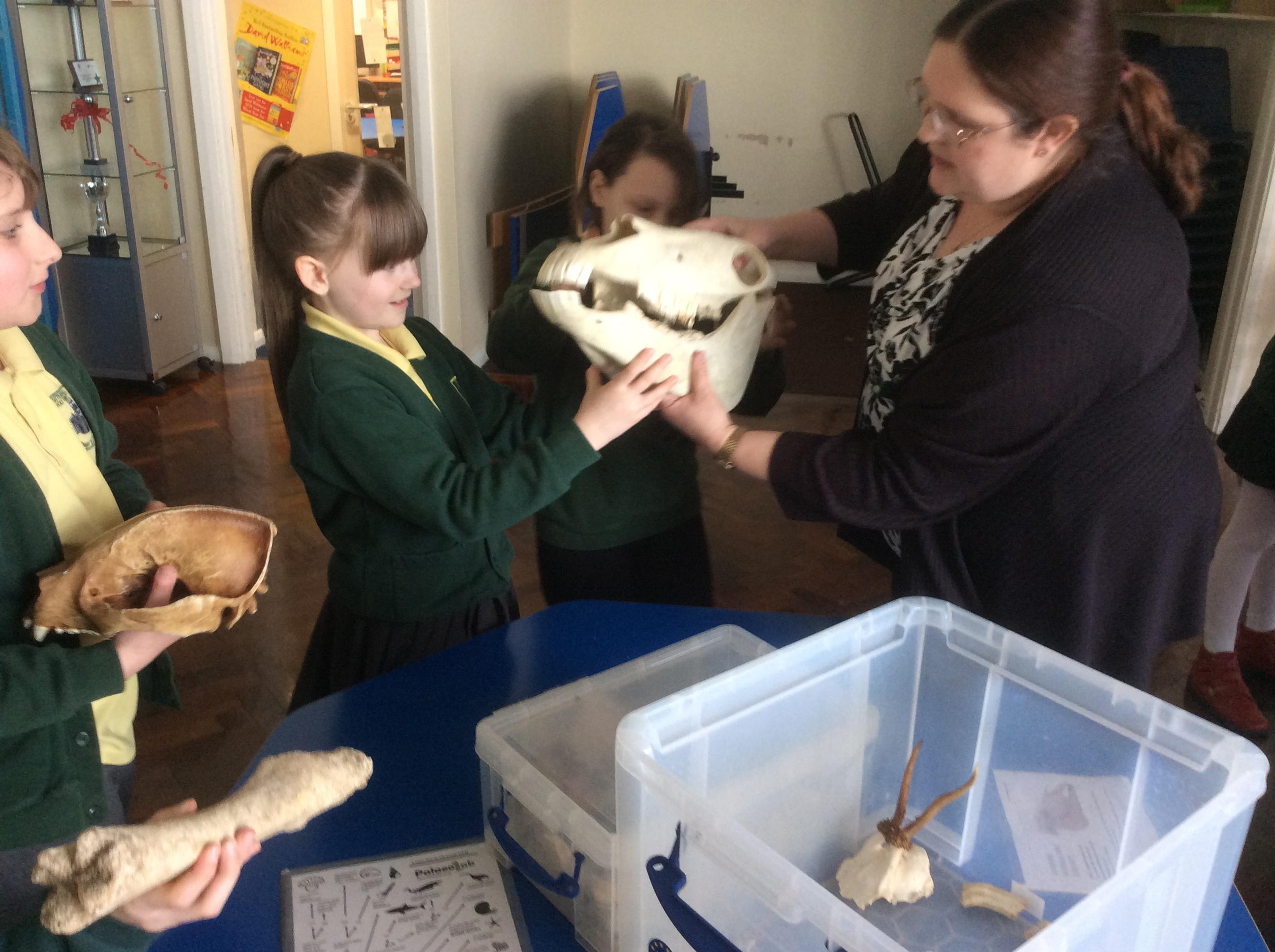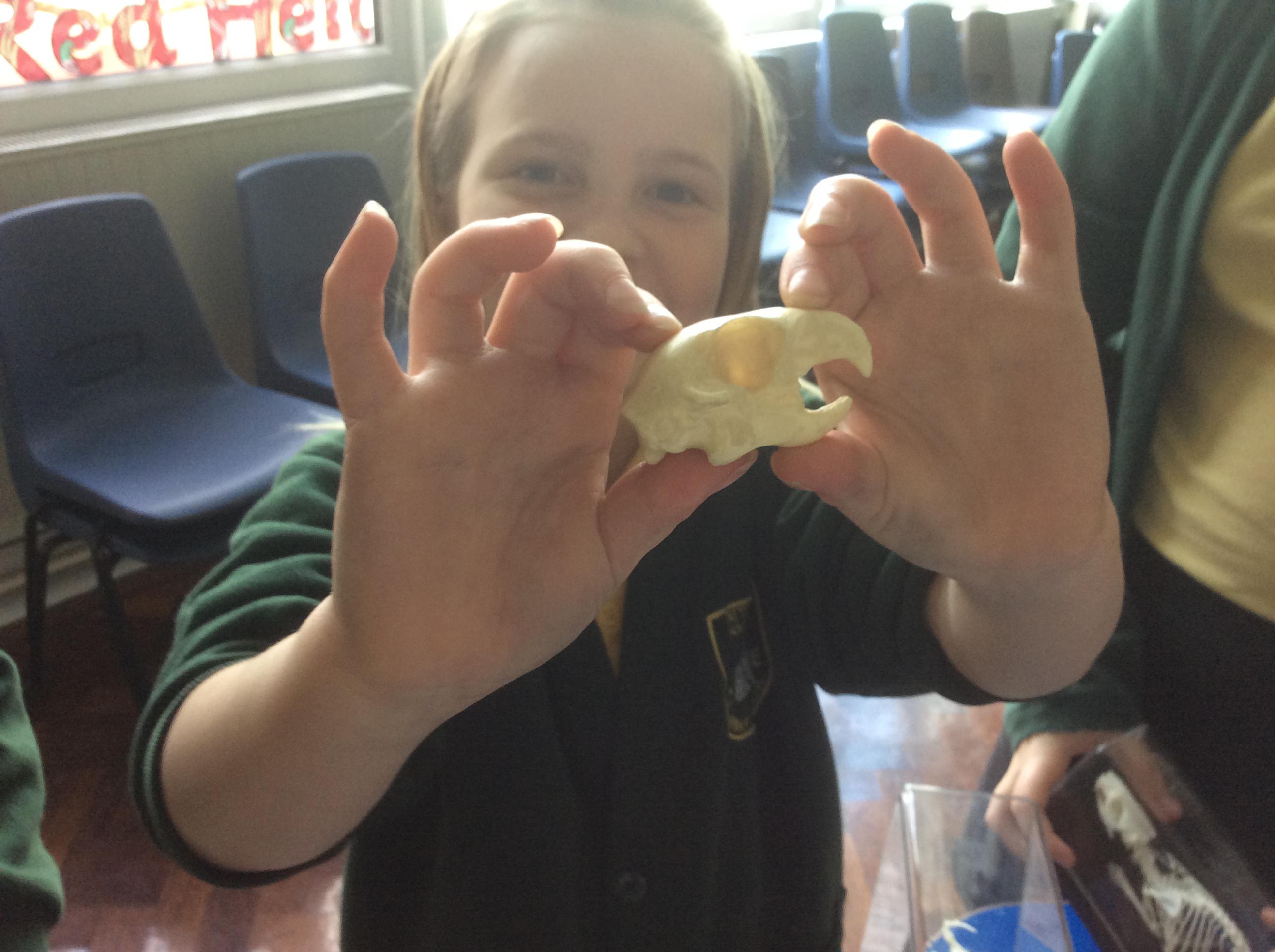 Today we had a science workshop on fossils and bones. We looked at bones from: crocodiles, an Ichthyosaur, Mosasaur and bears, otters and other fascinating creatures. We learned how animals have adapted to into many weird and wonderful creatures over millions of years!