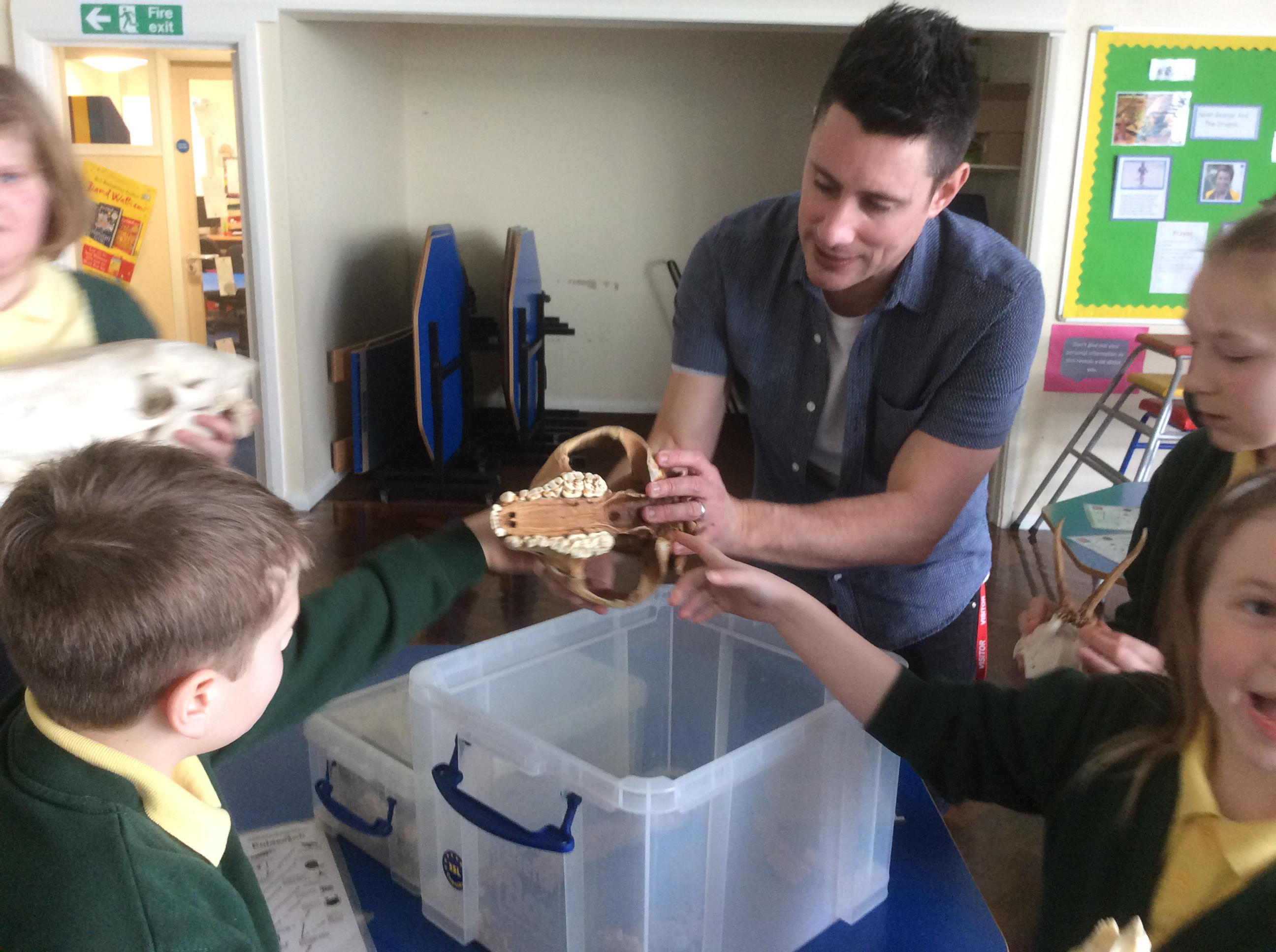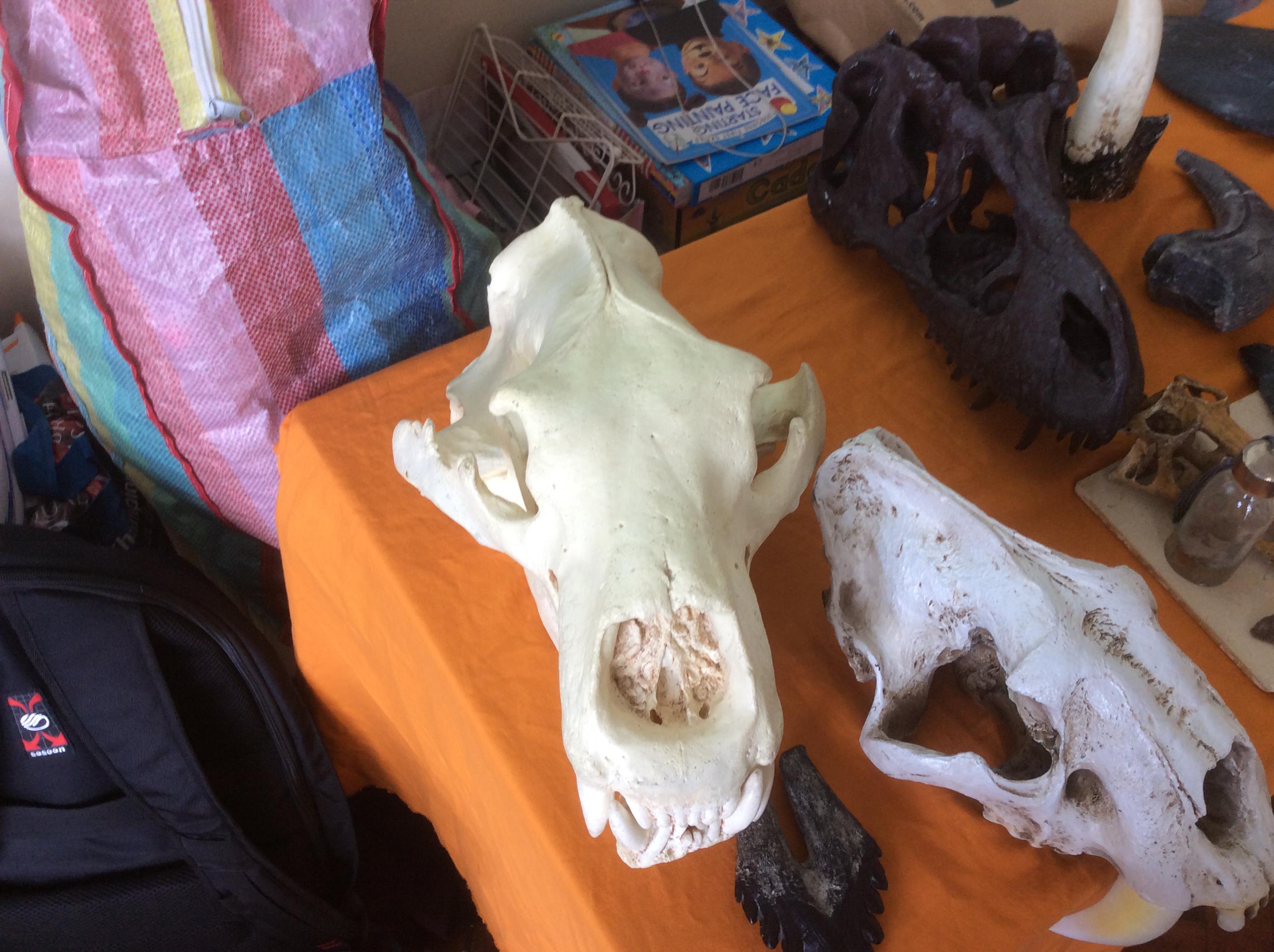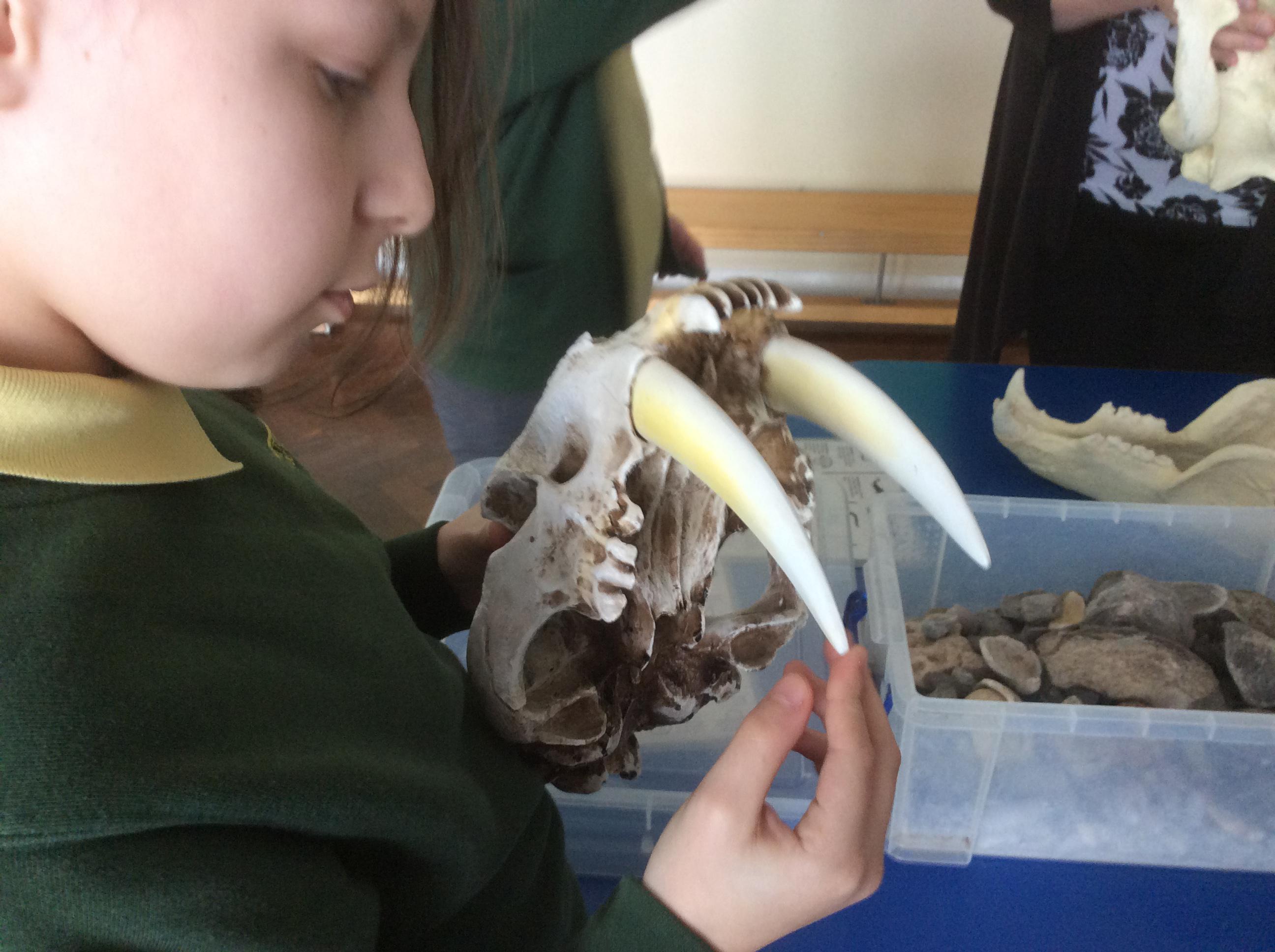 Today we had a science workshop on fossils and bones. We looked at bones from: crocodiles, an Ichthyosaur, Mosasaur and bears, otters and other fascinating creatures. We learned how animals have adapted to into many weird and wonderful creatures over millions of years!