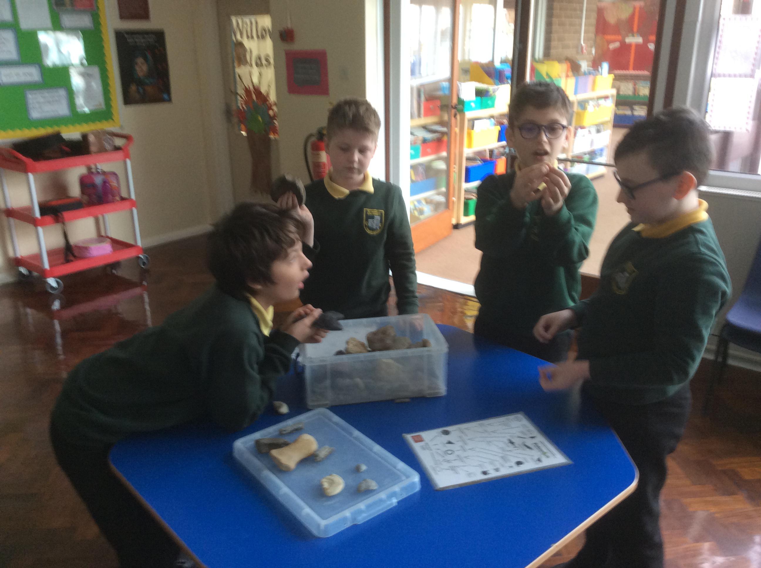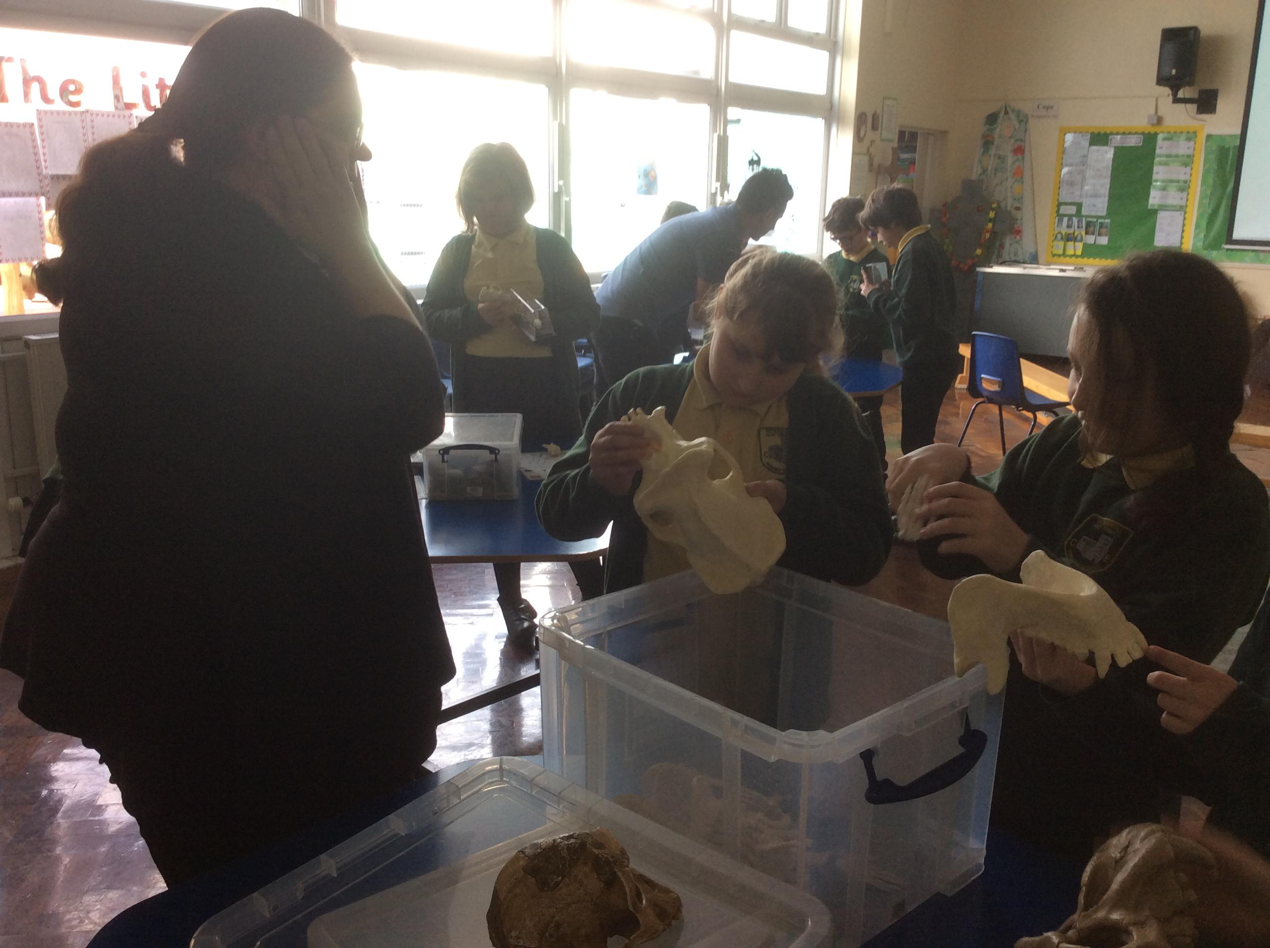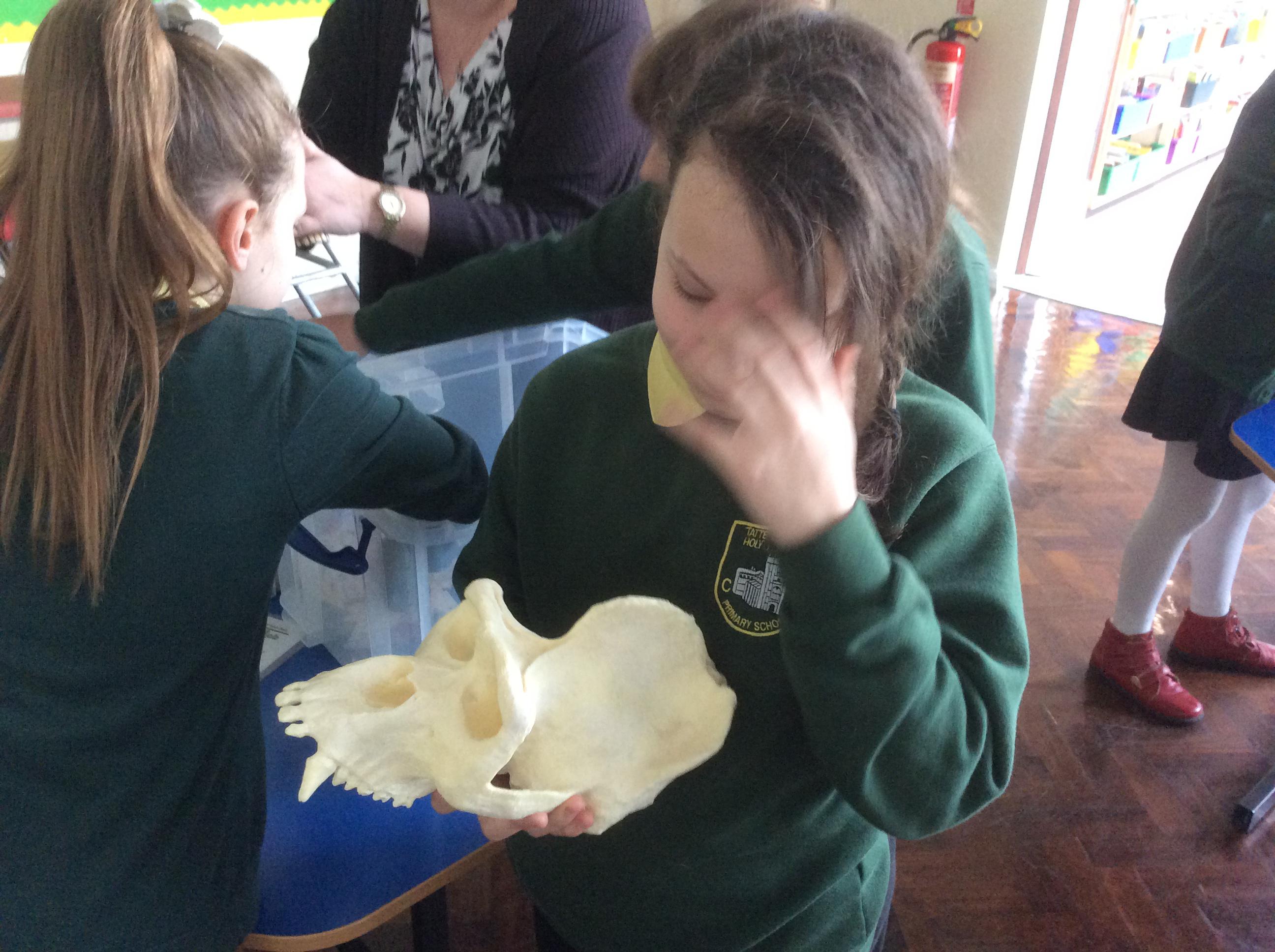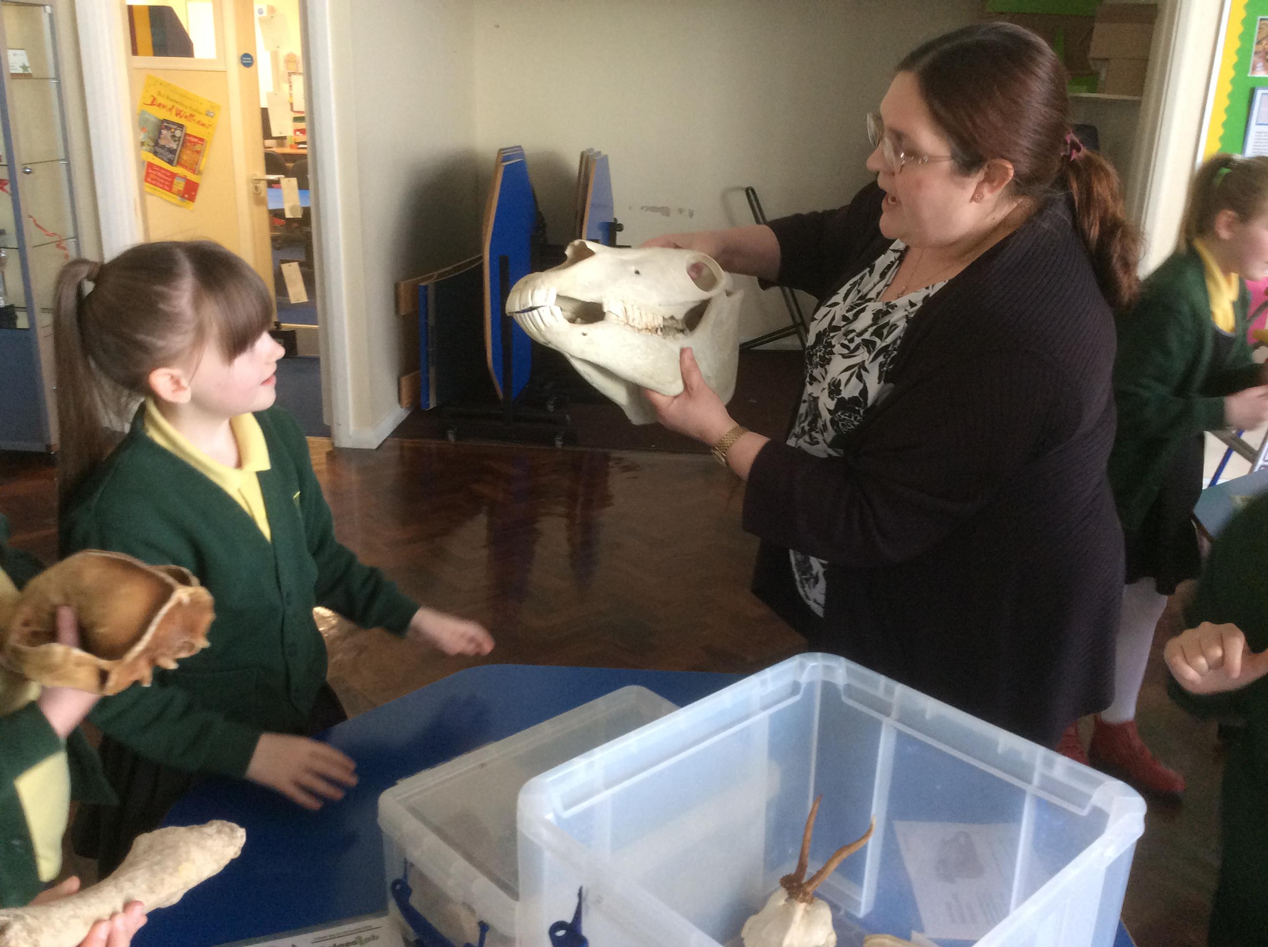 Today we had a science workshop on fossils and bones. We looked at bones from: crocodiles, an Ichthyosaur, Mosasaur and bears, otters and other fascinating creatures. We learned how animals have adapted to into many weird and wonderful creatures over millions of years!