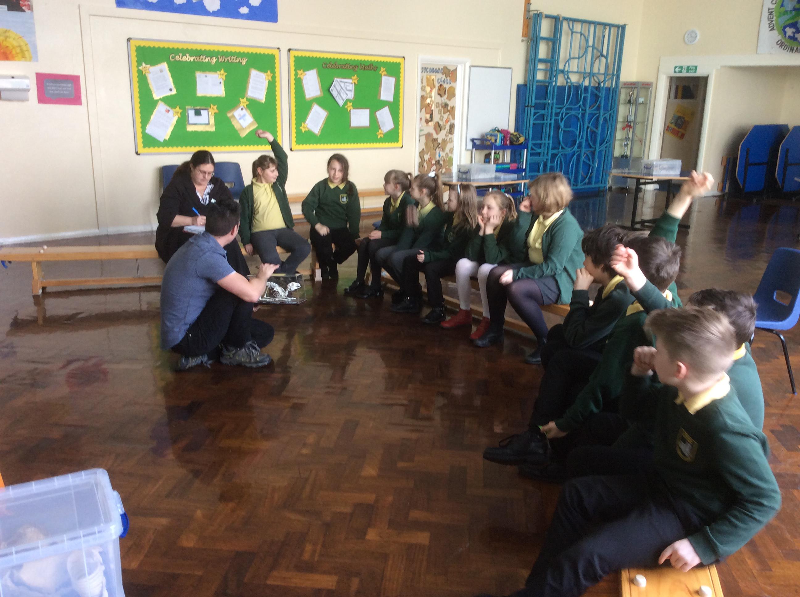 Today we were extremely lucky to have Ian Bland a fantastic poet visit our school. We had an amazing assembly where we heard and joined in lots of Ian's poems, then each class had a workshop with Ian during the day. To complete the day we then performed some of our poems to the whole school and our parents.