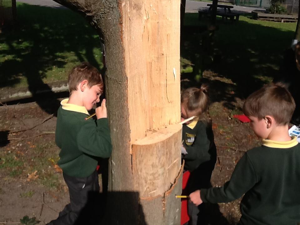 To kick off our Splendid Skies topic we went on a Nature Treasure walk. We ticked off a checklist of seasonal finds and discussed why we couldn't find some of the things because they are not in season. We then made friends with a tree and took bark rubbings. We are now writing a recount about our experience.