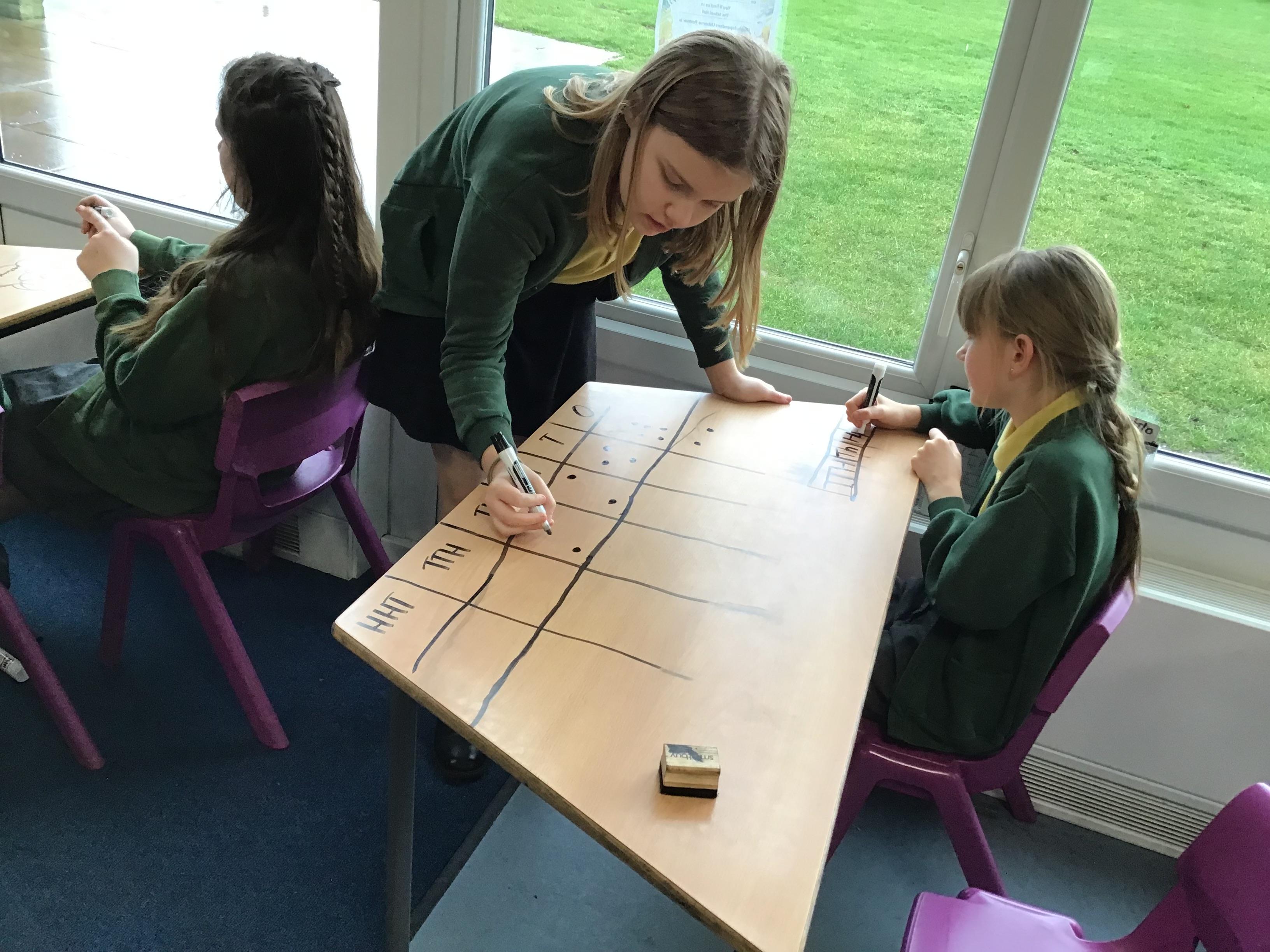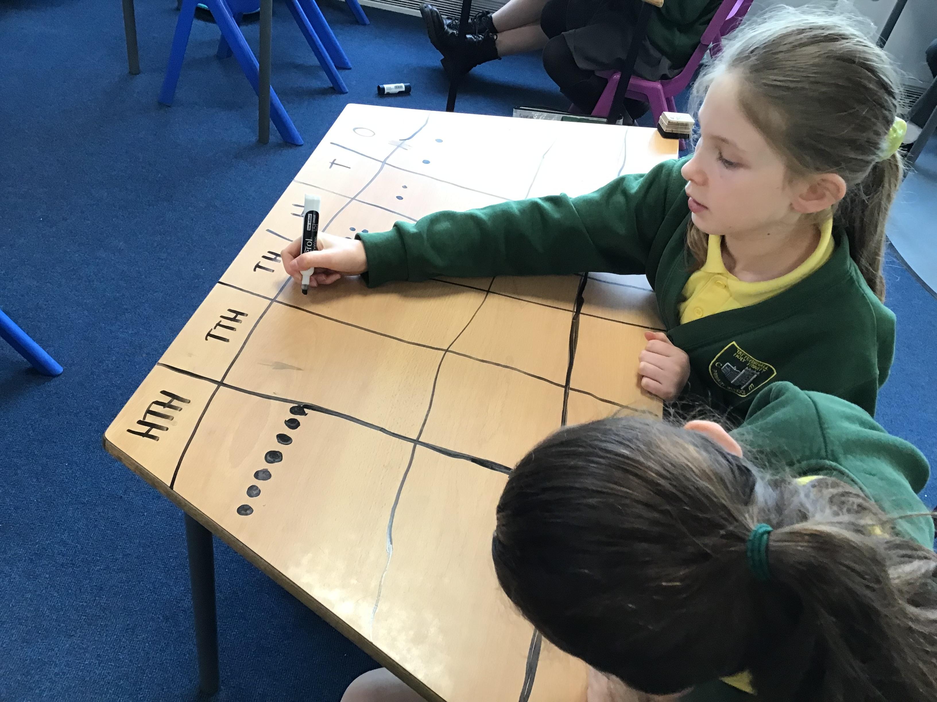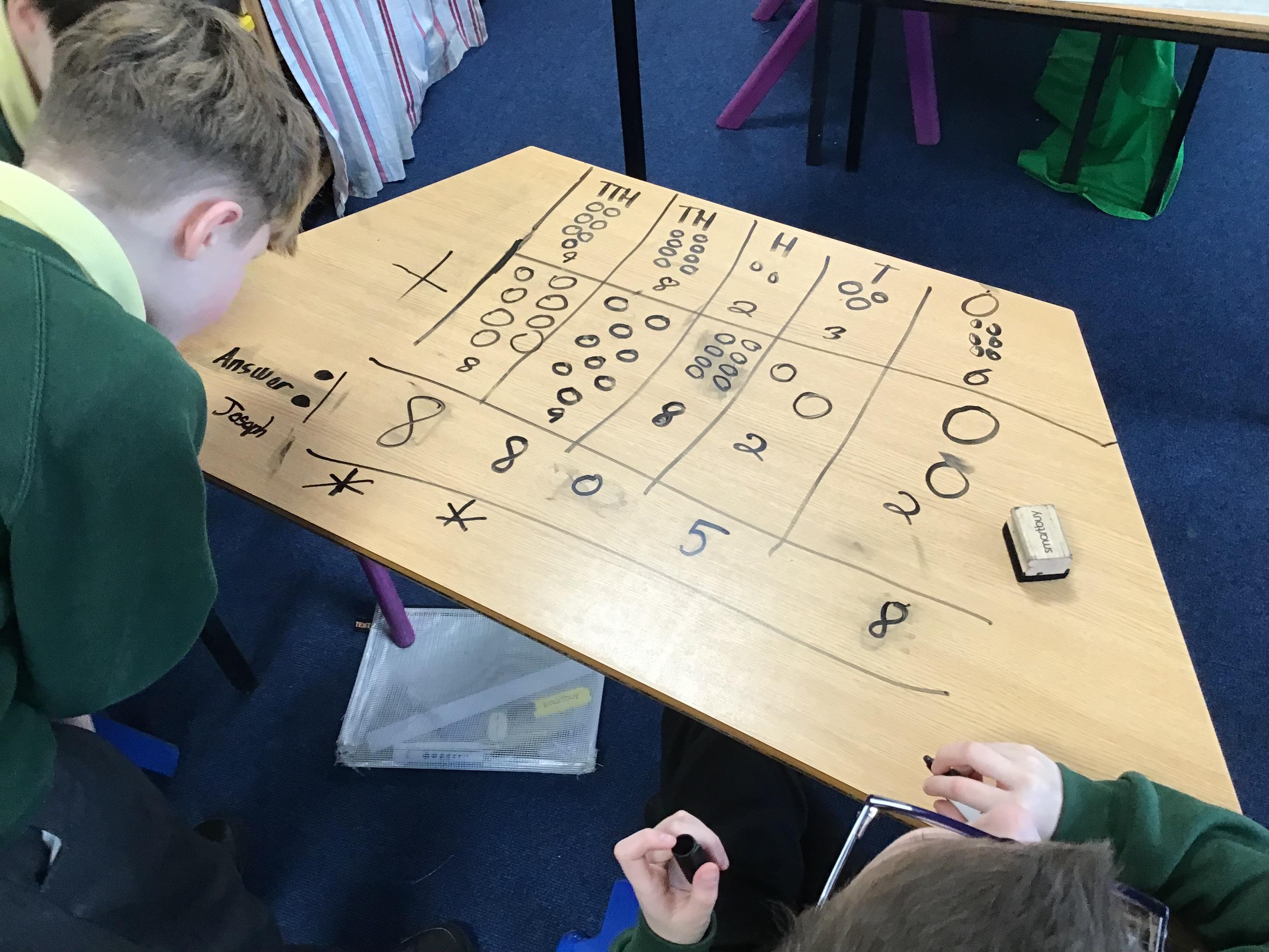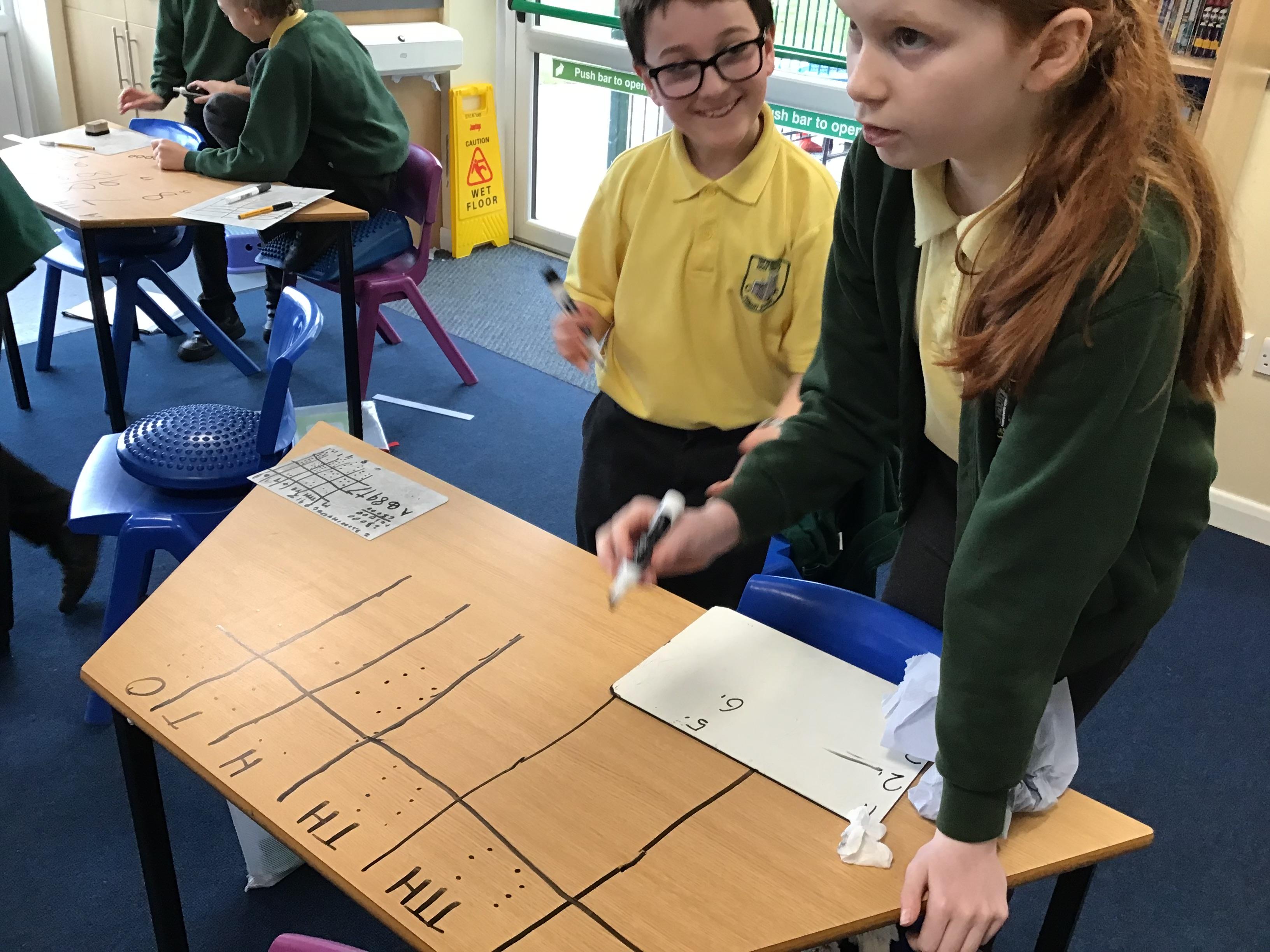 We used place value charts on our tables to add numbers with more than 4 digits!