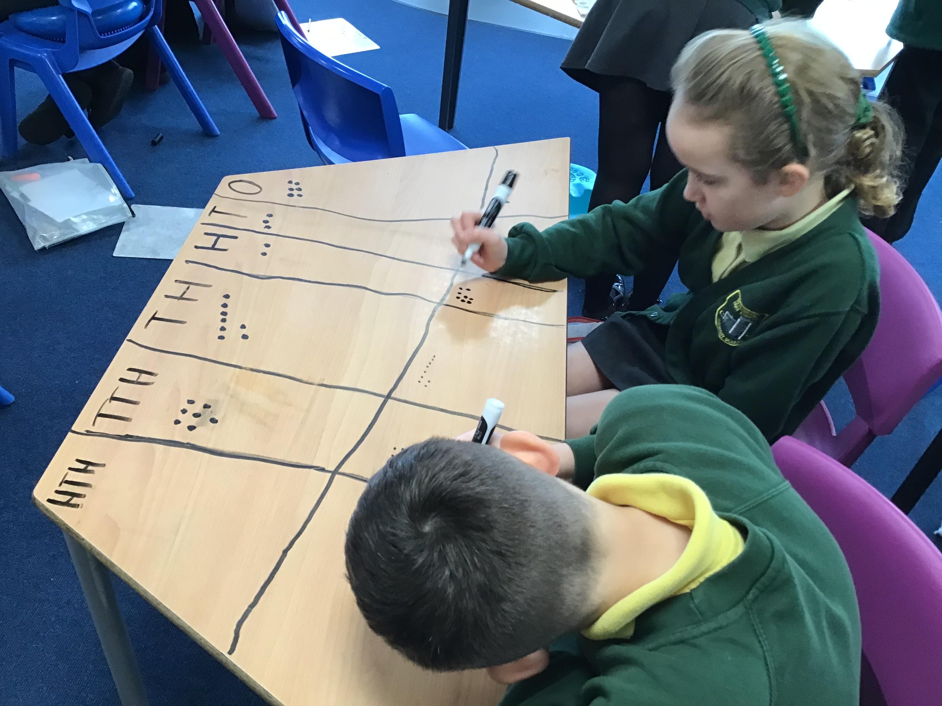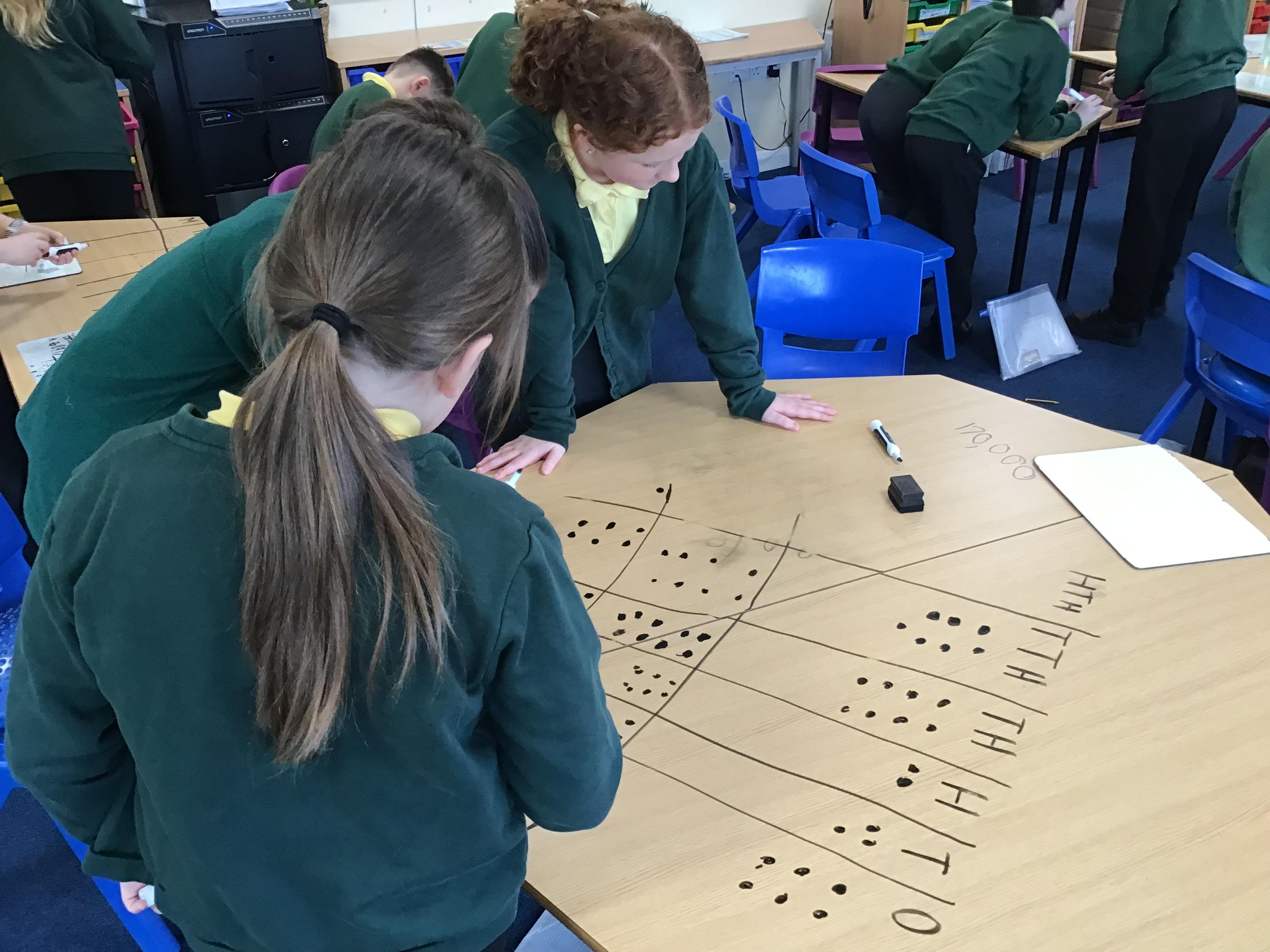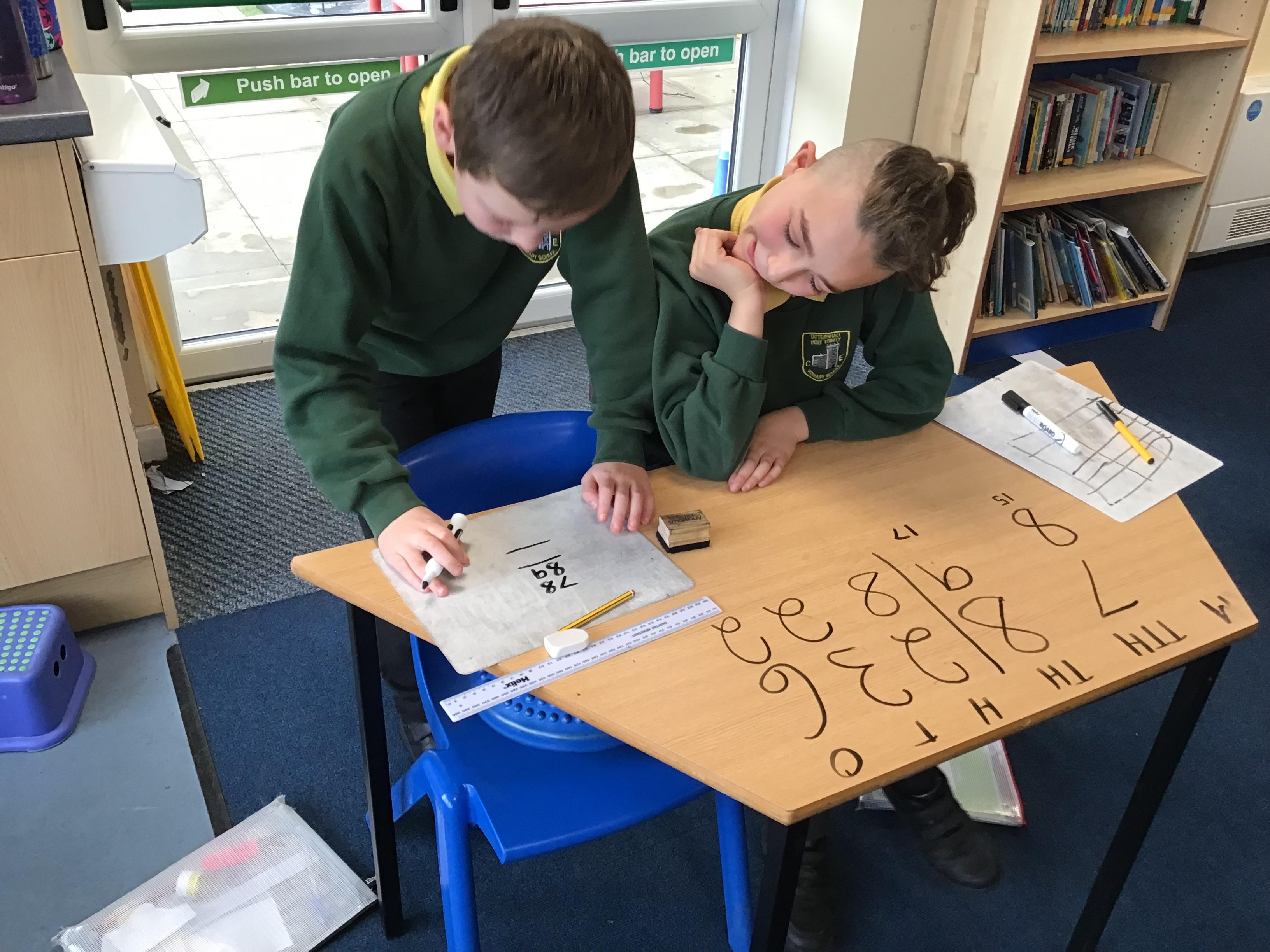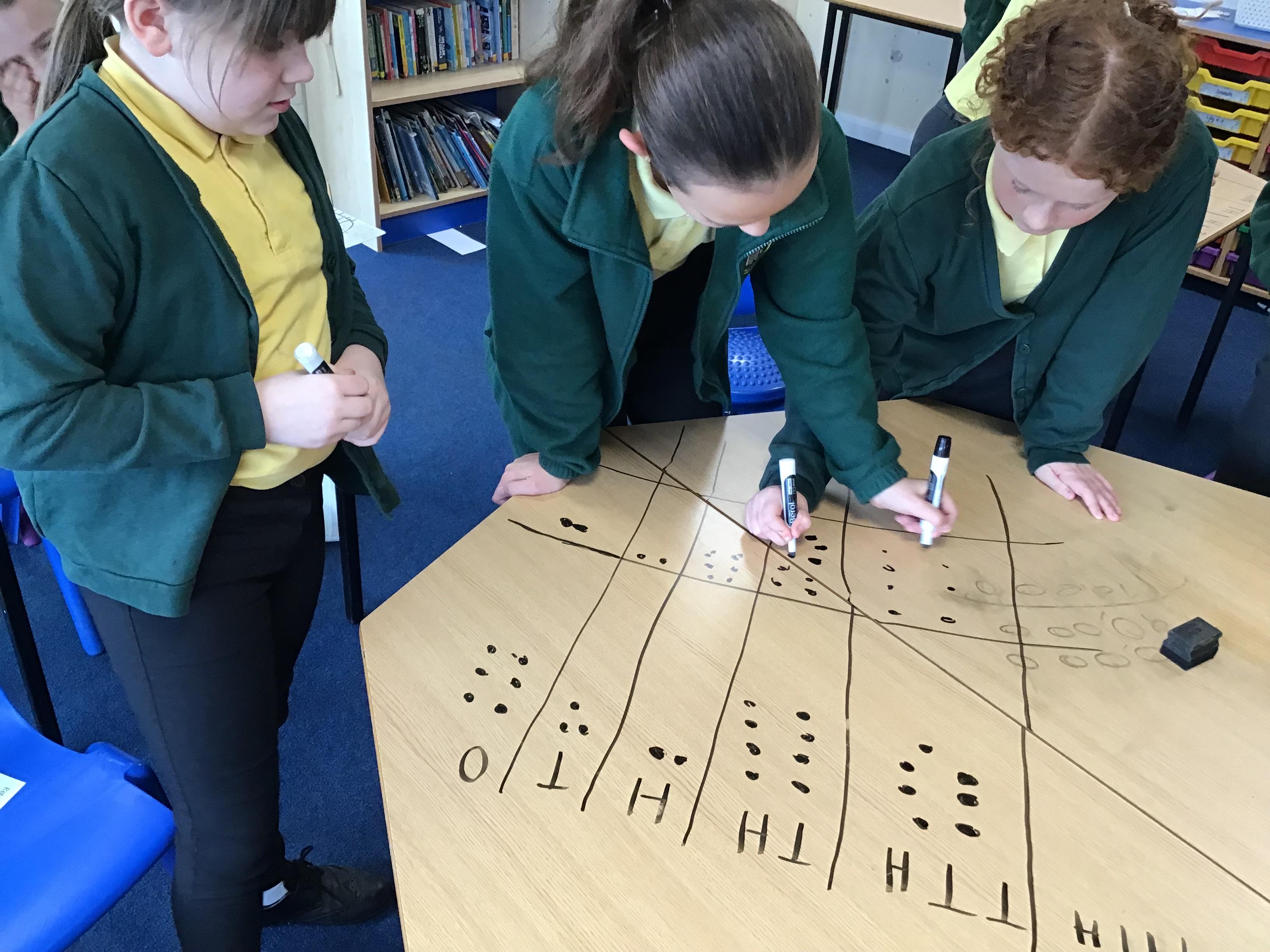 We used place value charts on our tables to add numbers with more than 4 digits!