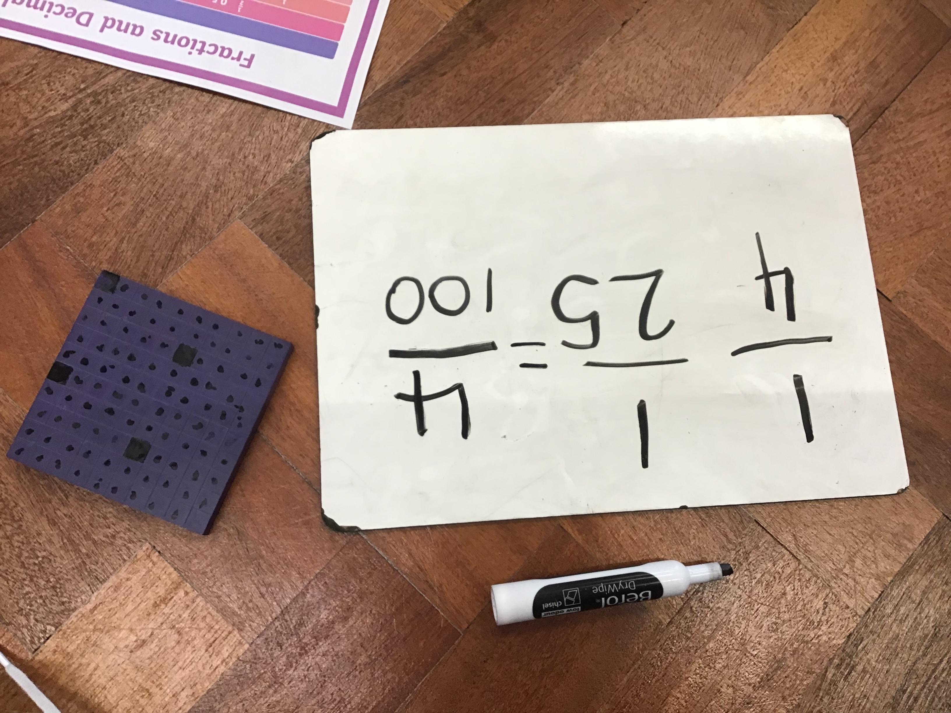 Fraction, decimal and percentage equivalents using base 10