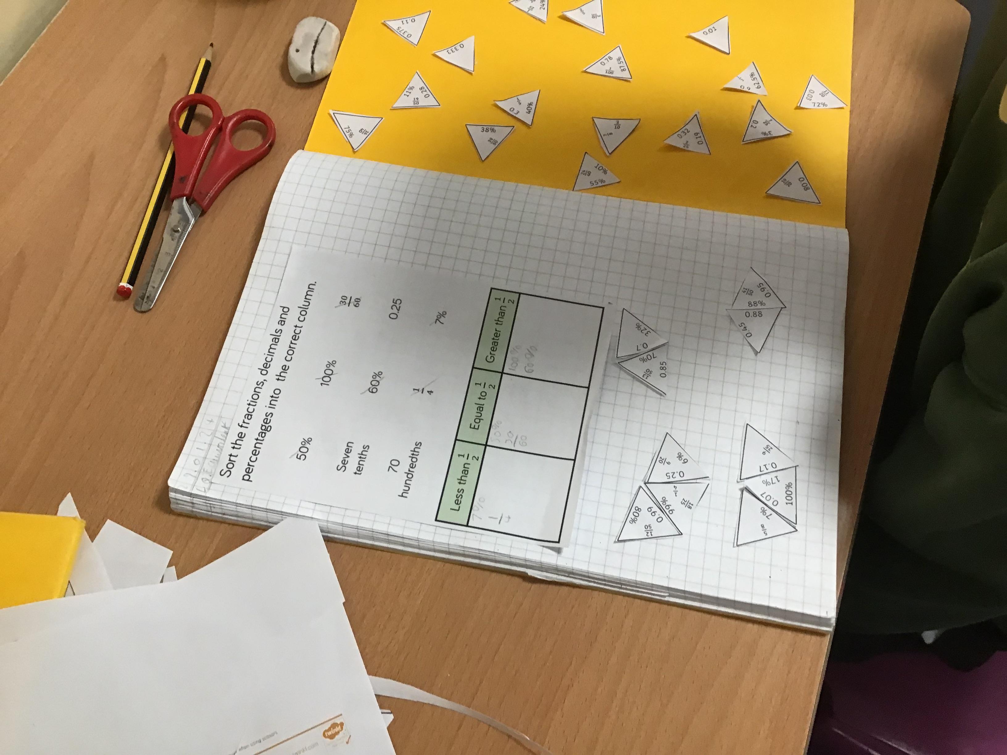 Tasia puzzle: finding fraction, percentage and decimal equivalents