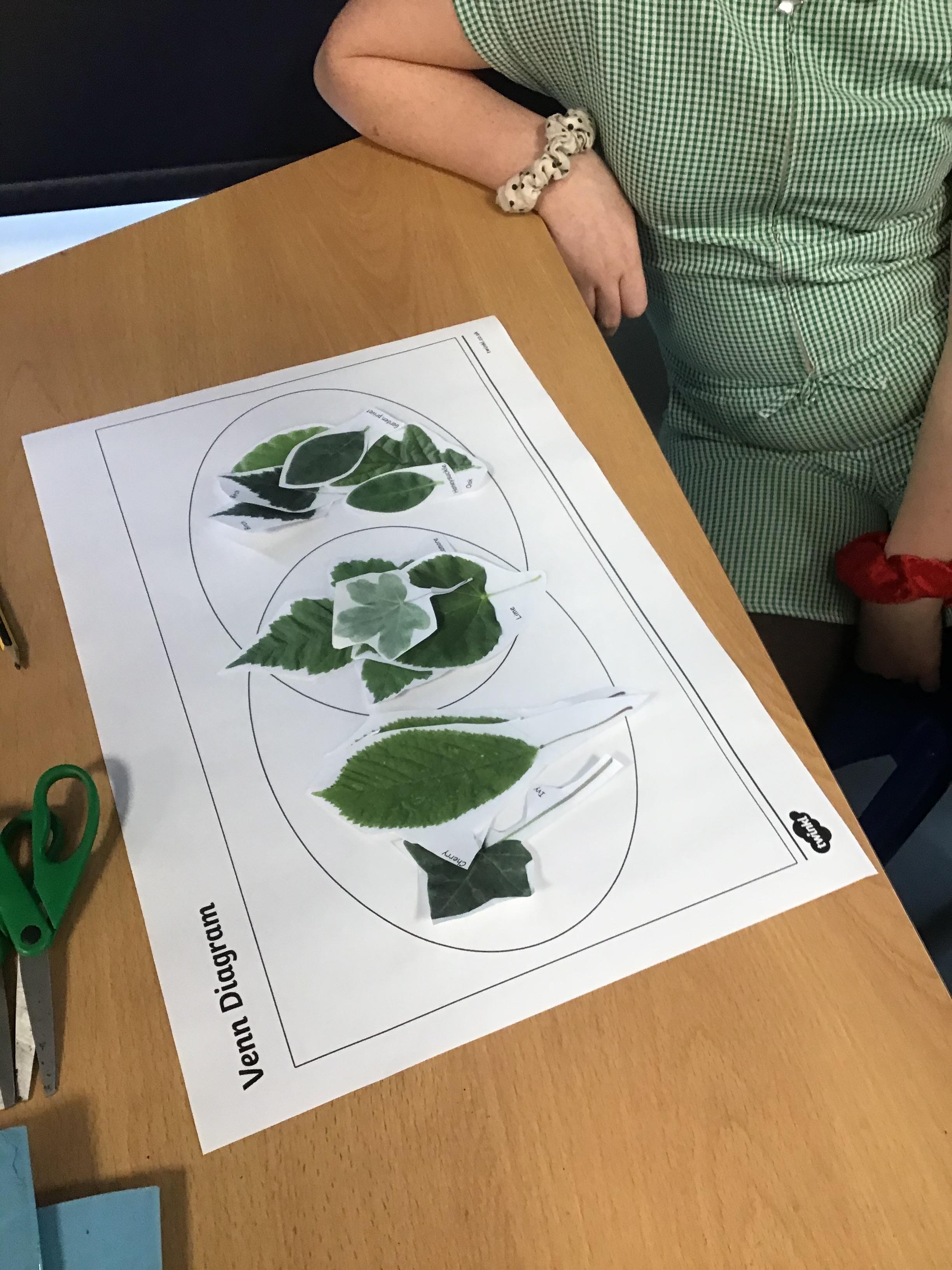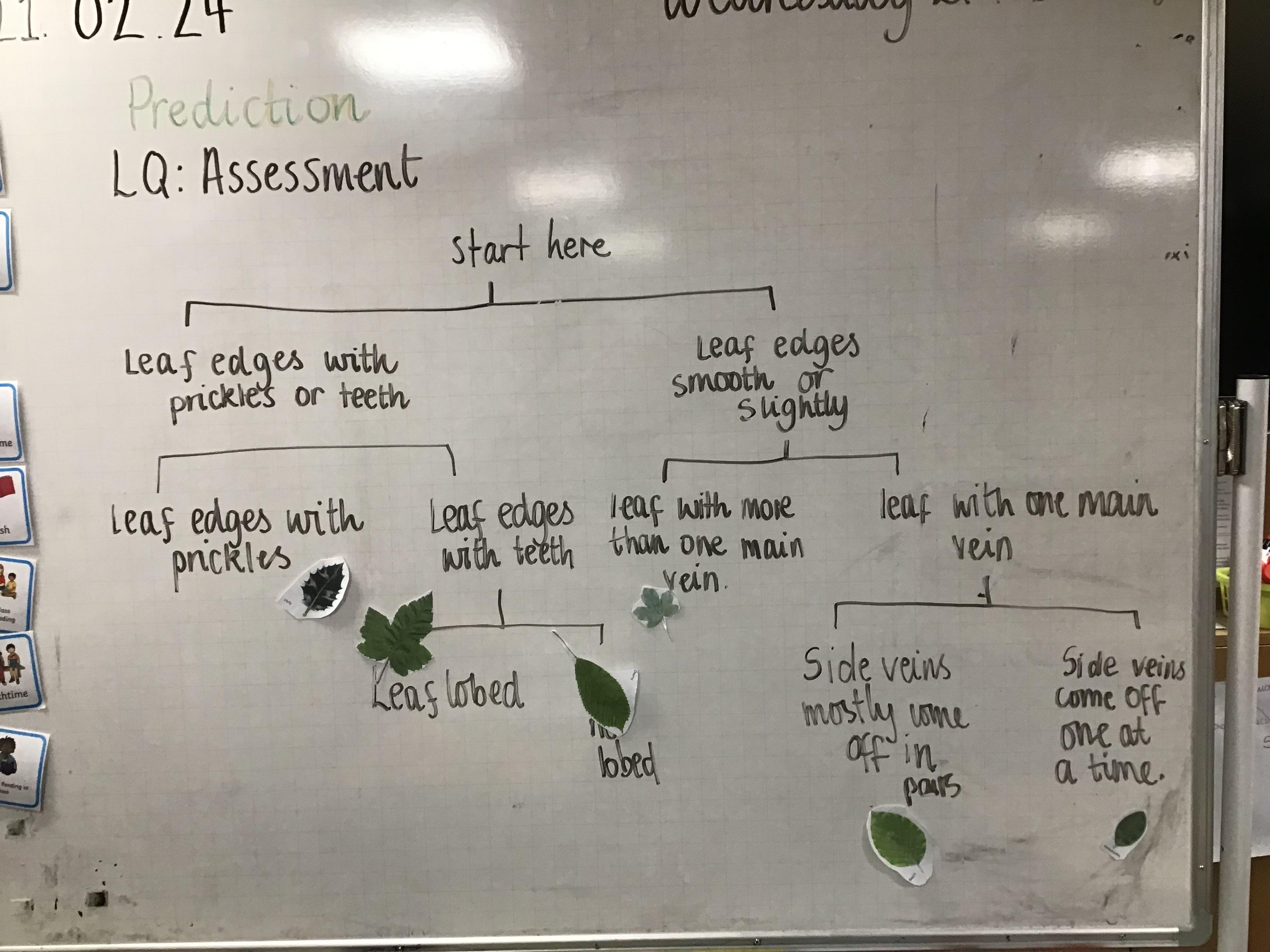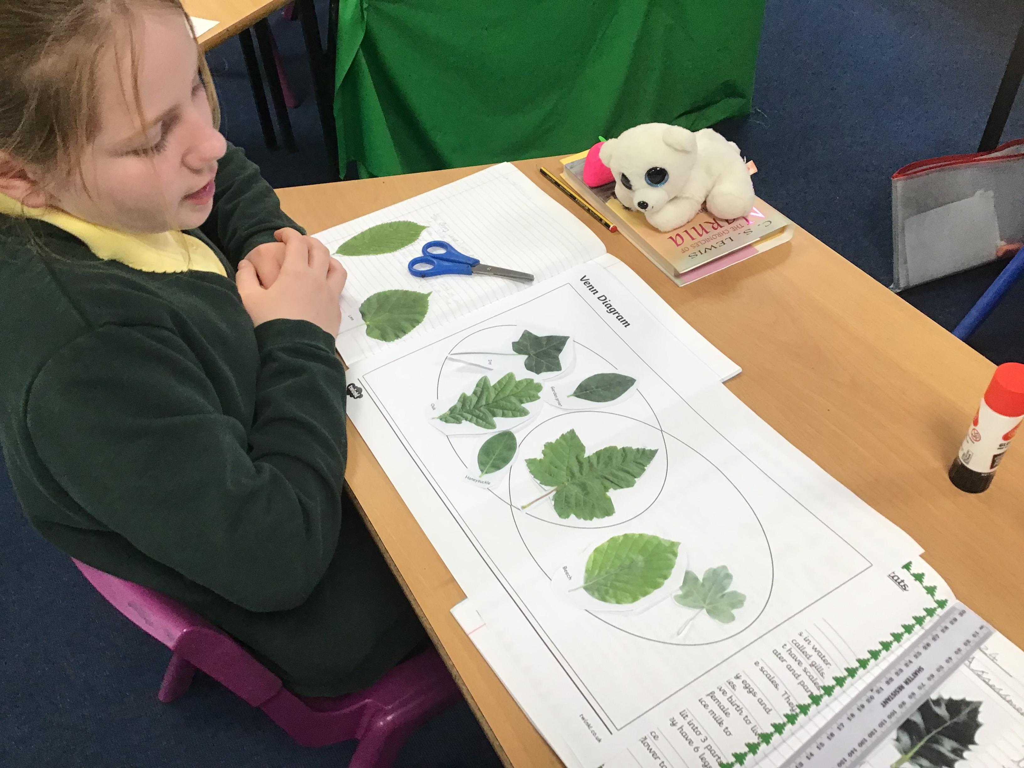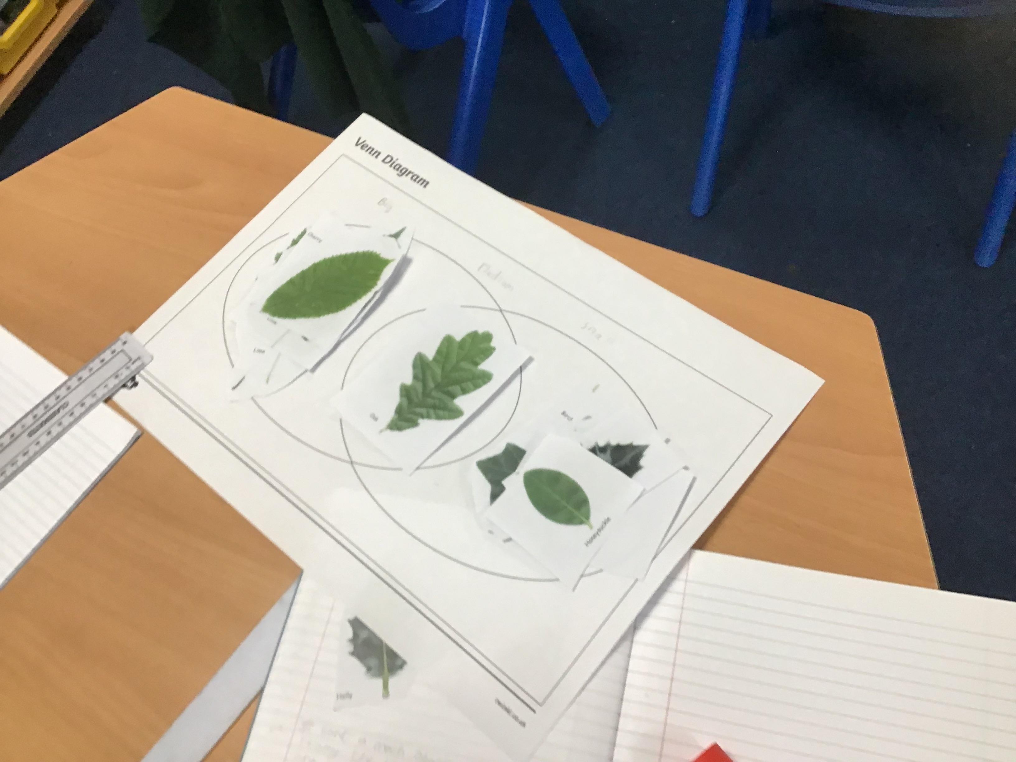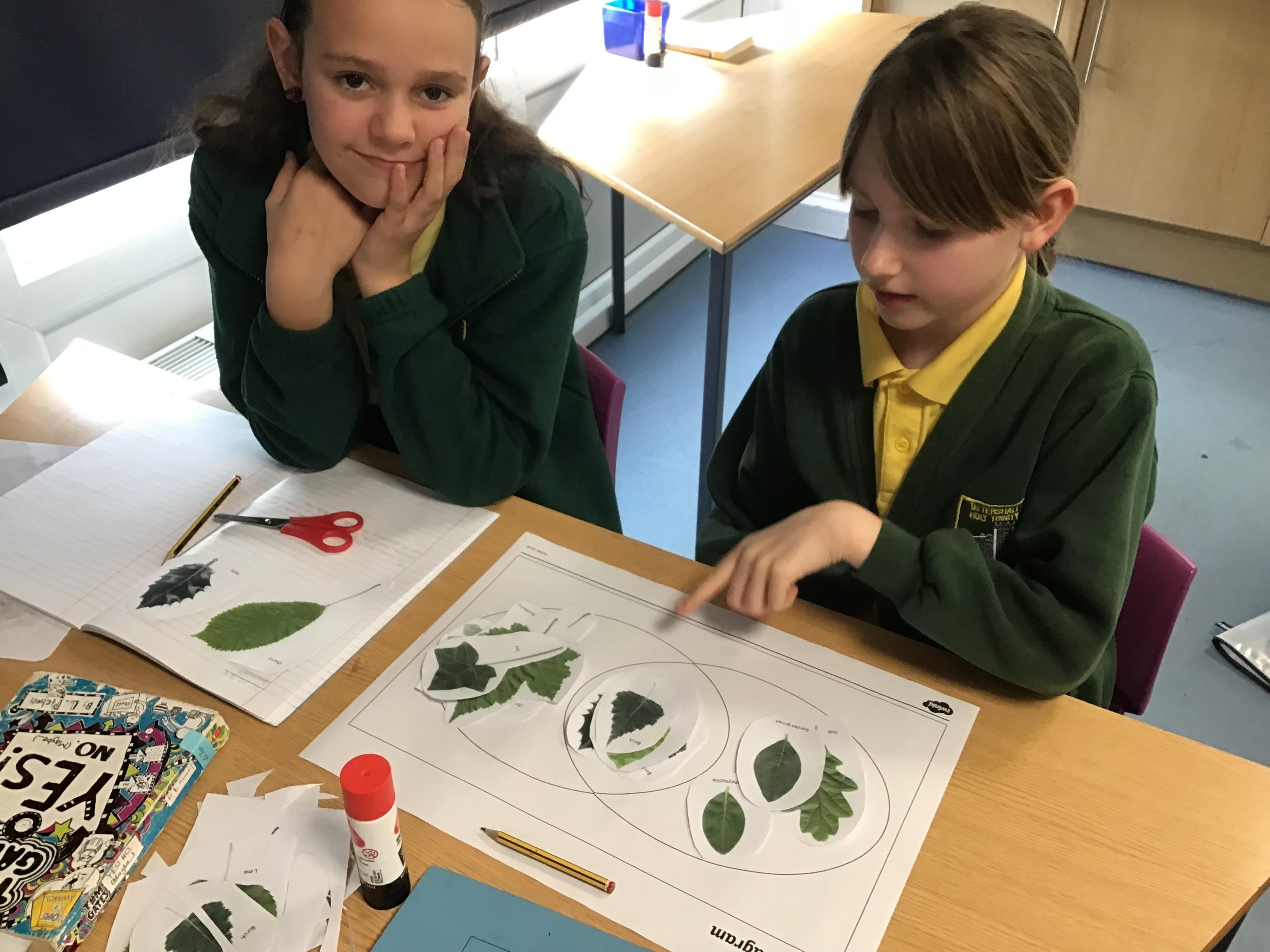 Classifying and grouping leaves. We looked at the characteristics of the leaves and used a branching sorting table.