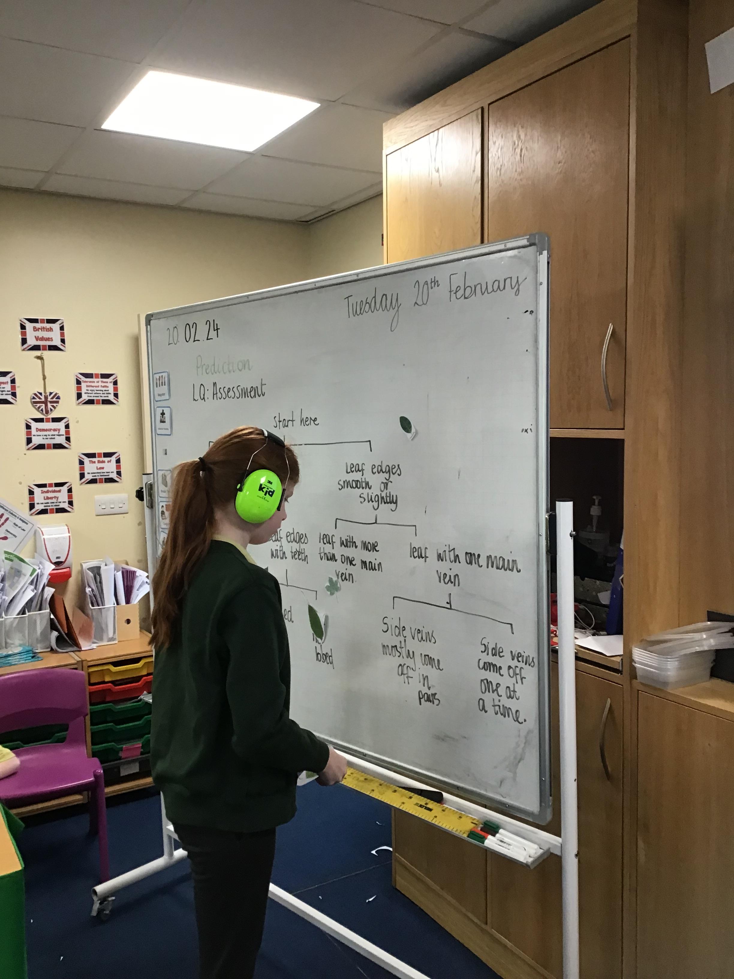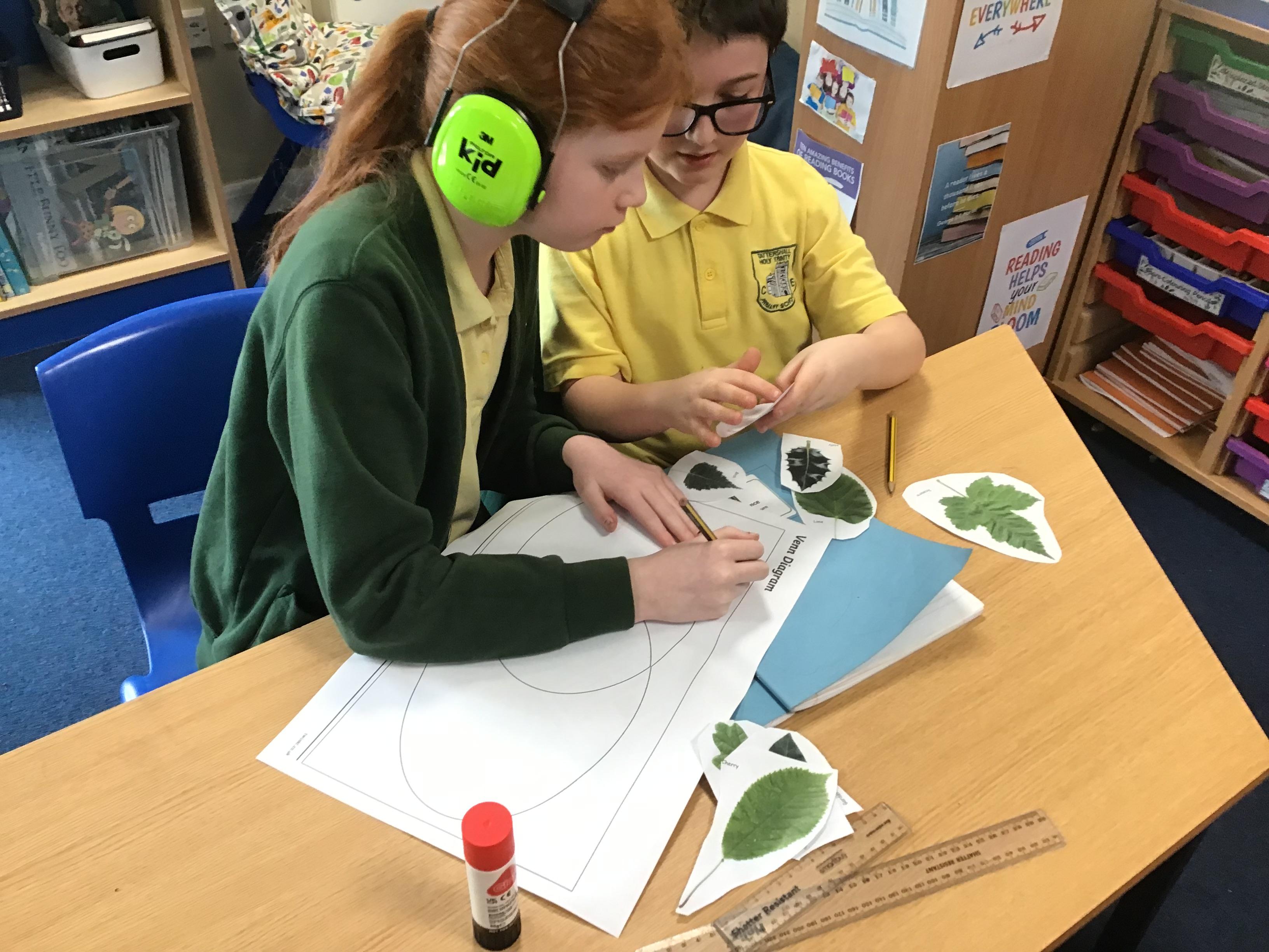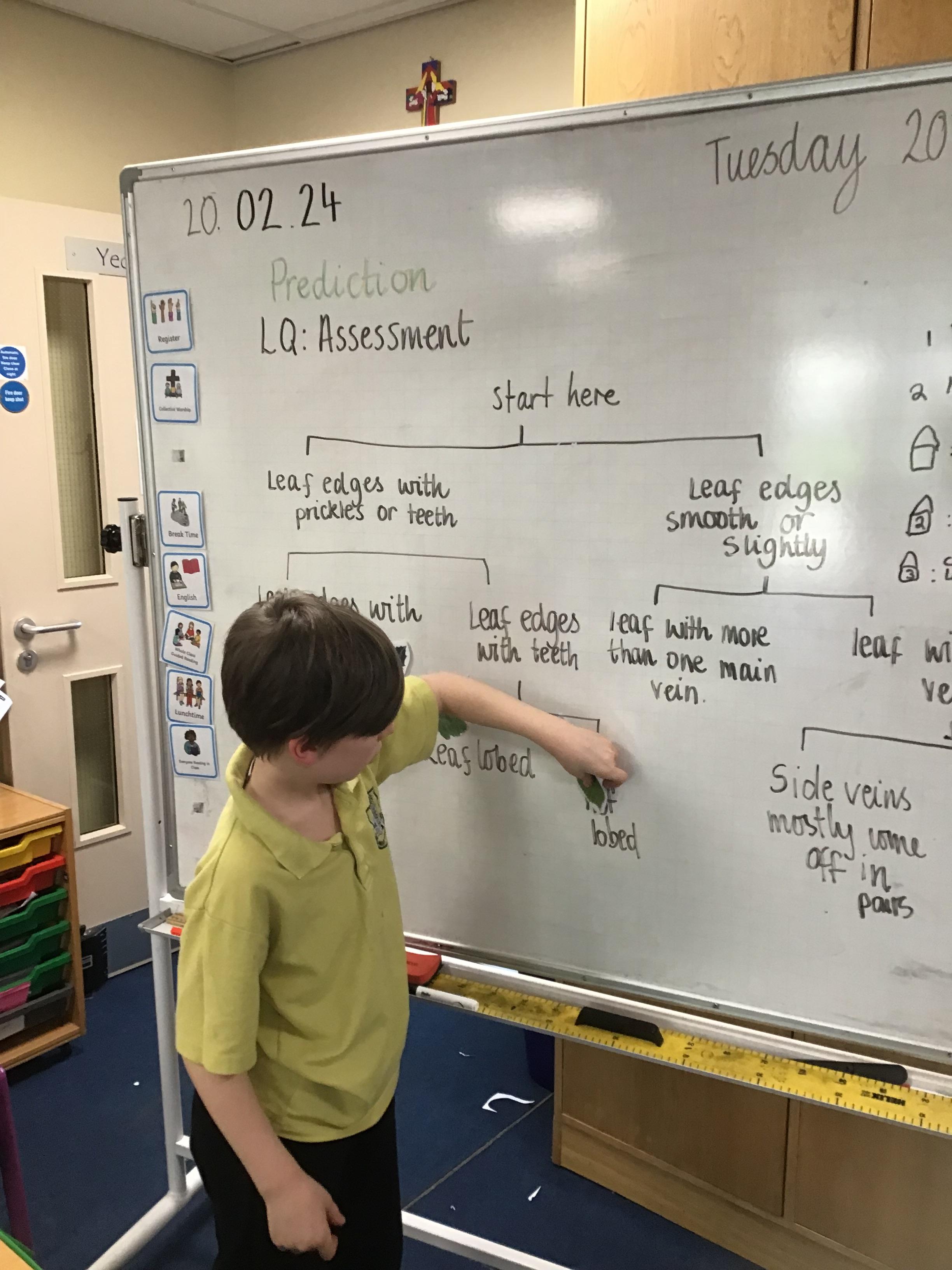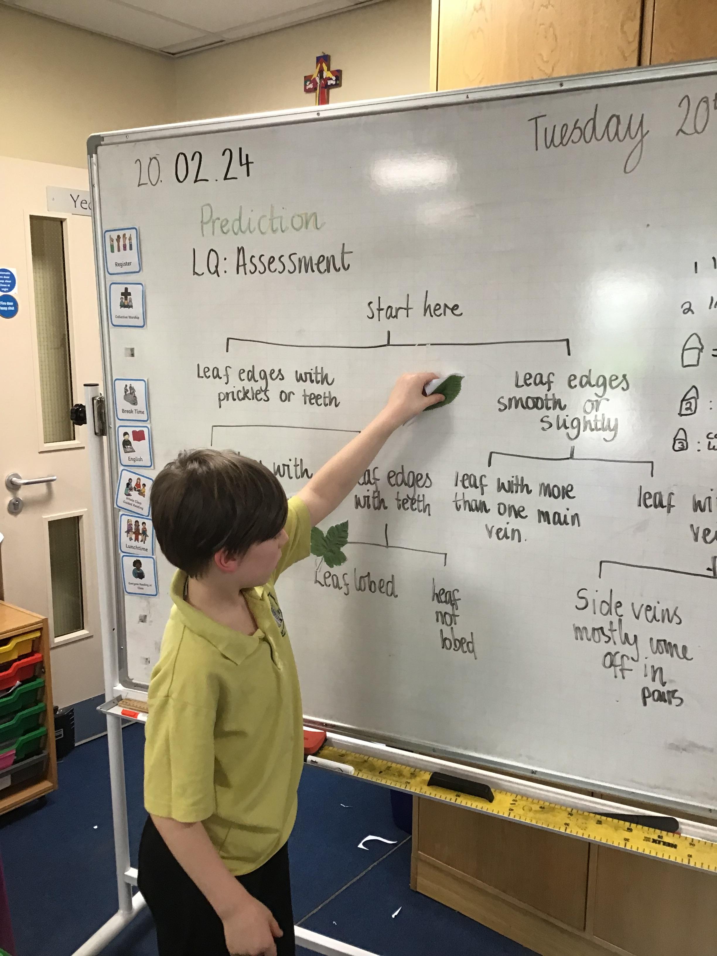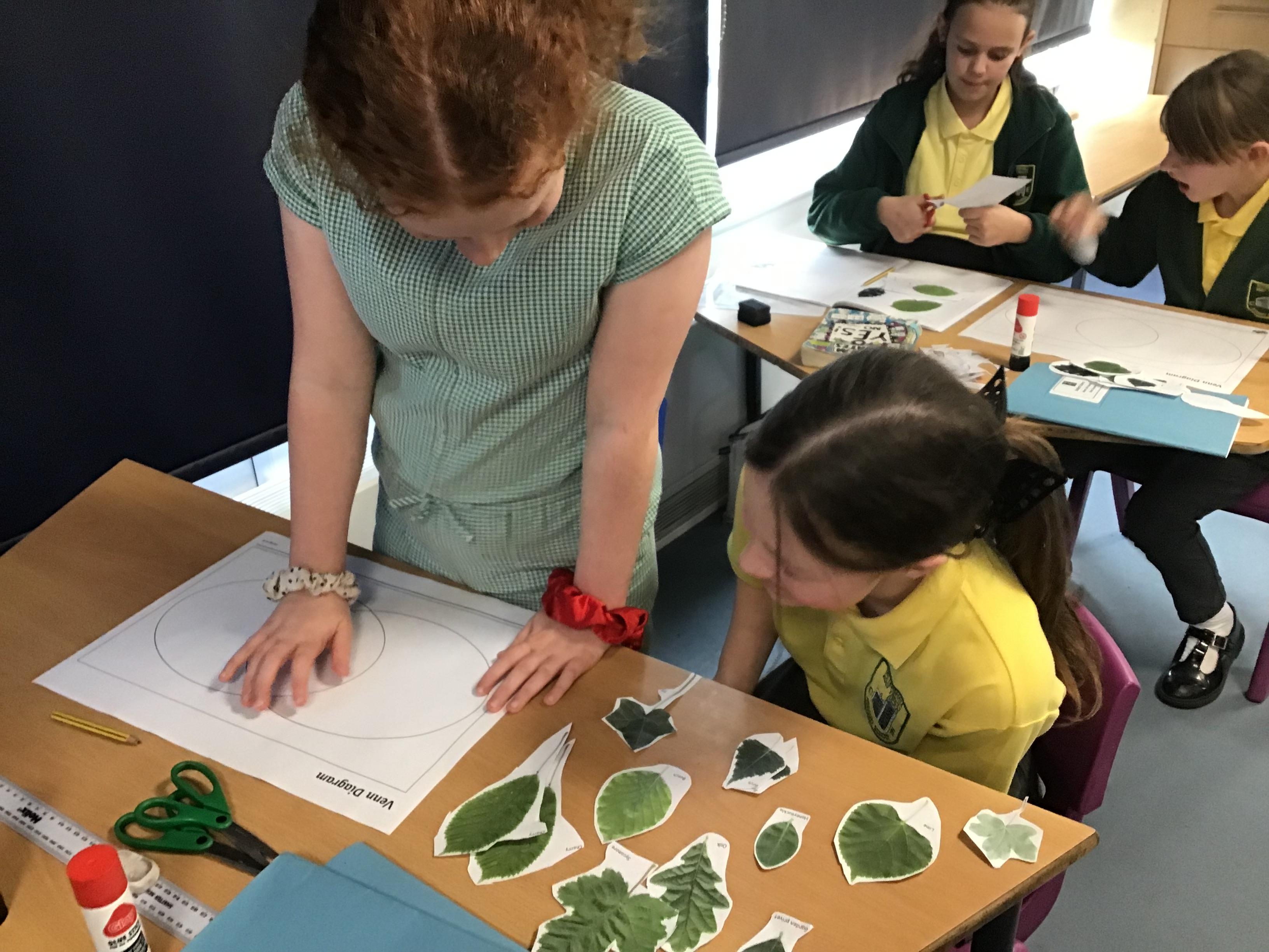 Classifying and grouping leaves. We looked at the characteristics of the leaves and used a branching sorting table.