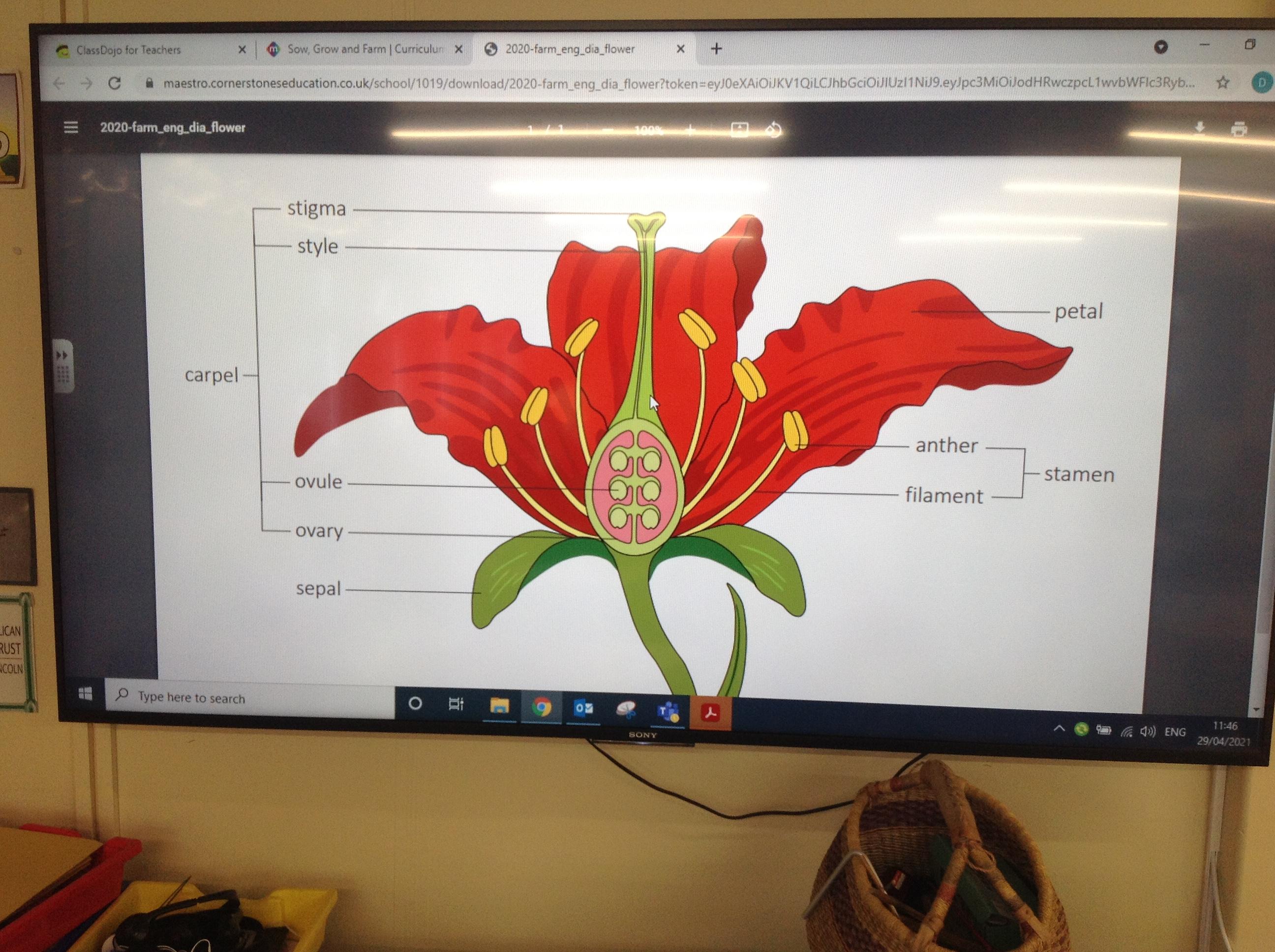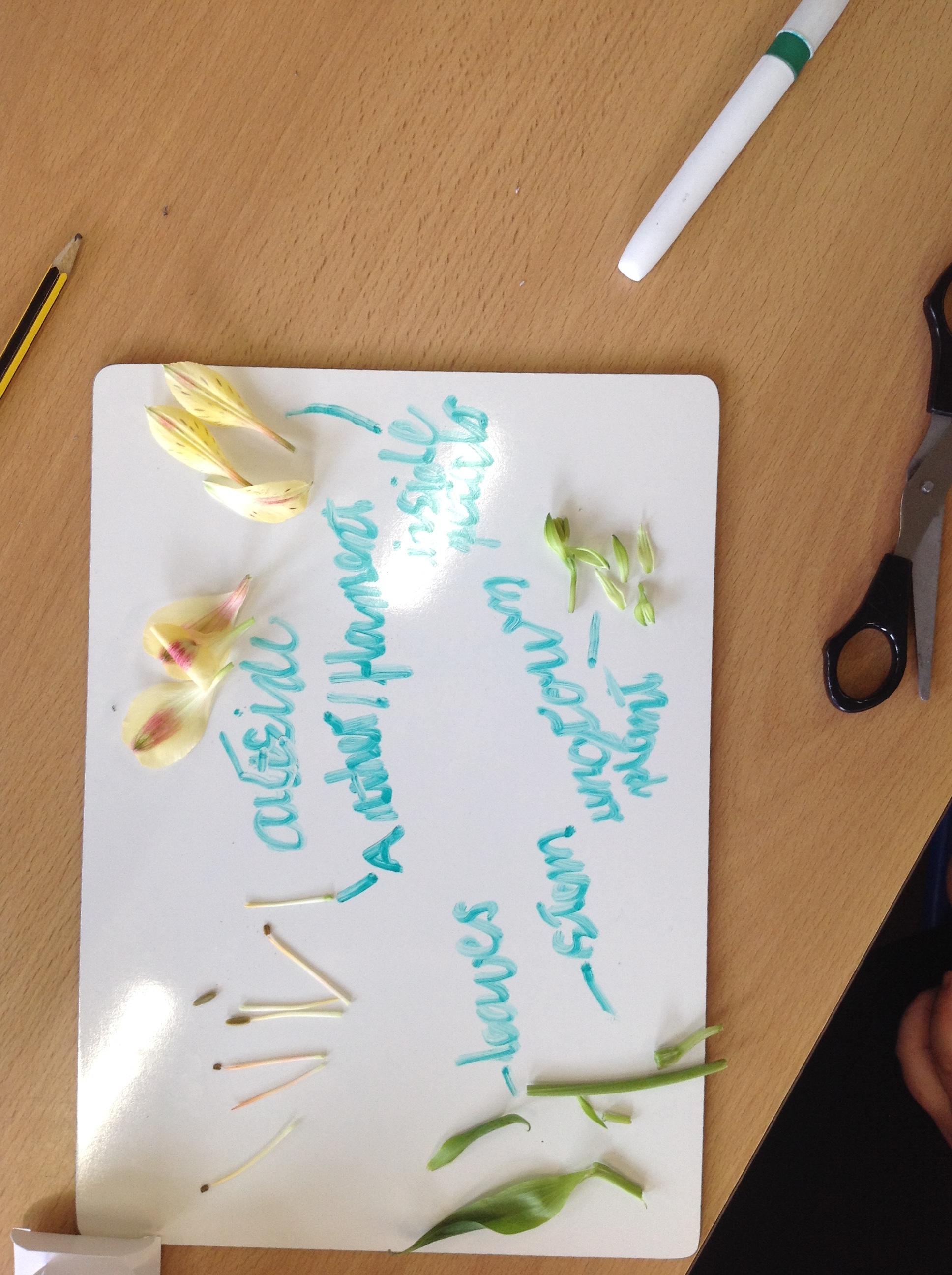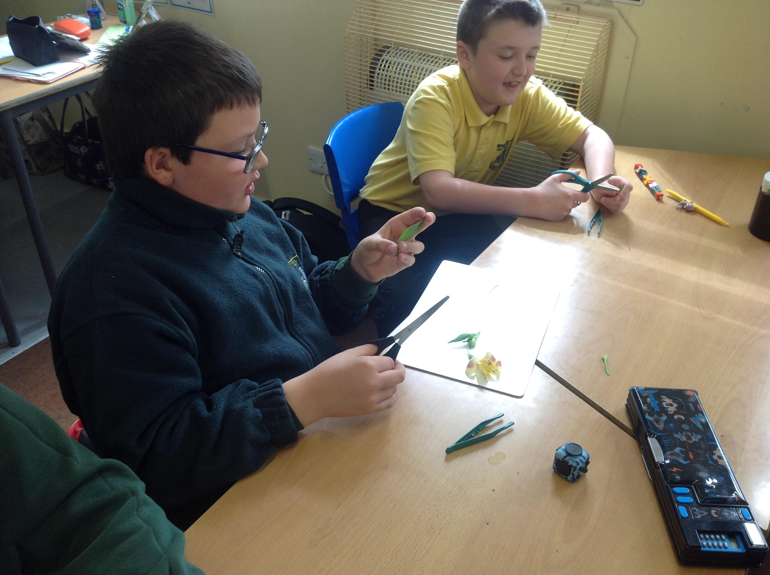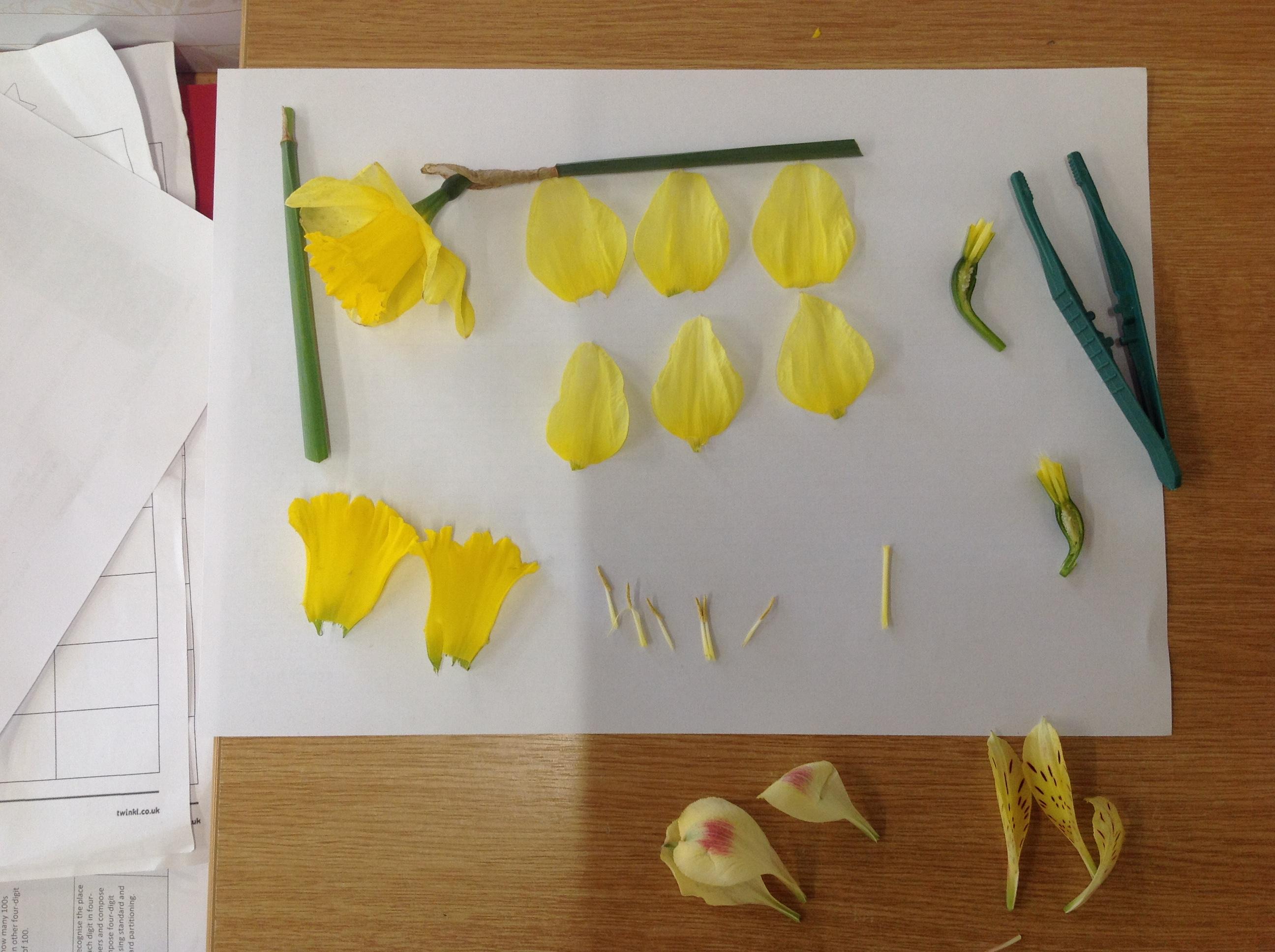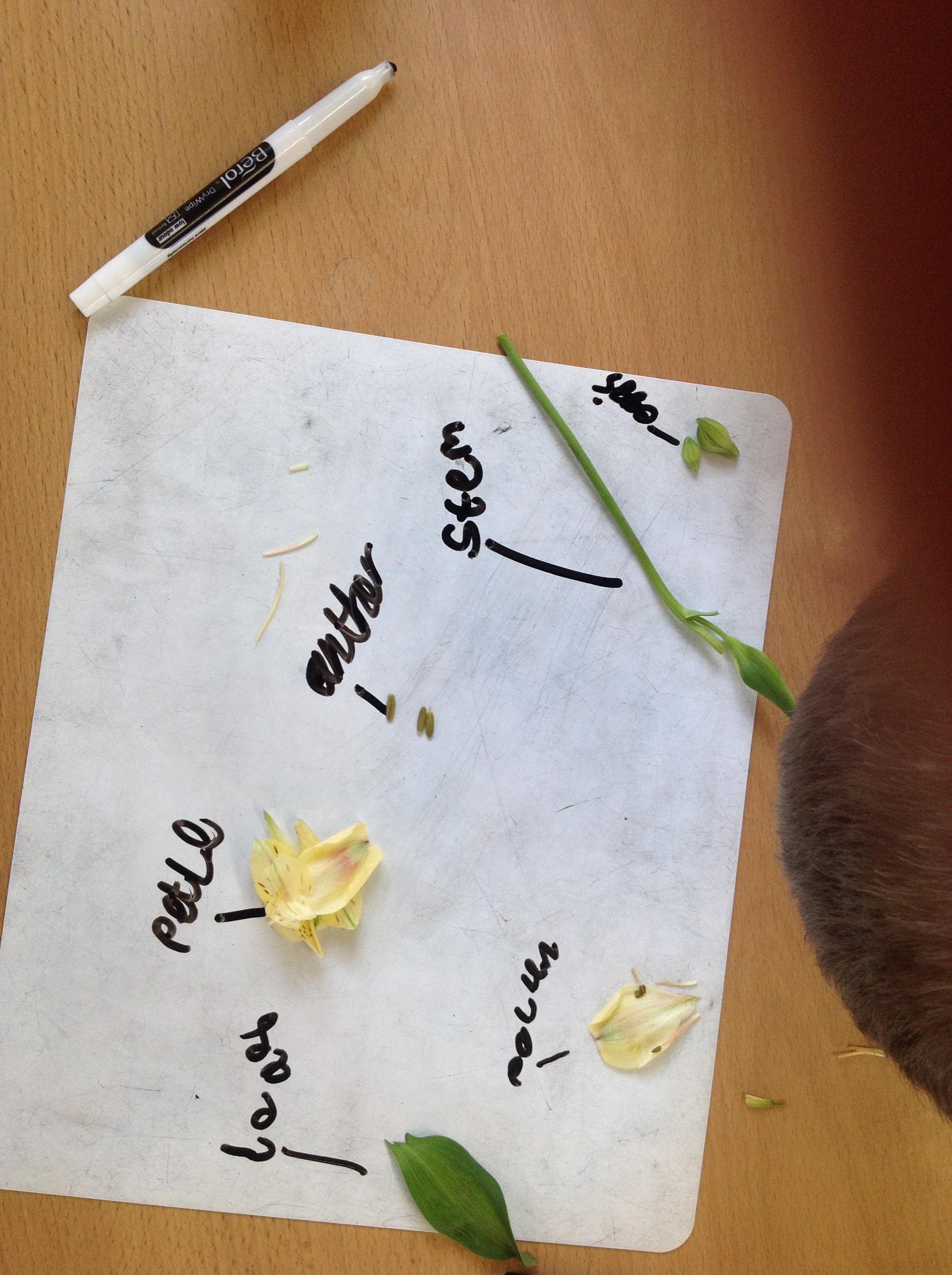 In science, we have been looking at ways in which plants reproduce, by dissecting flowers to learn about the male and female reproductive systems. We learned how pollen (the male part of a flower) gets transferred to the ovules (the female parts) in order to fertilize it and create new seeds.