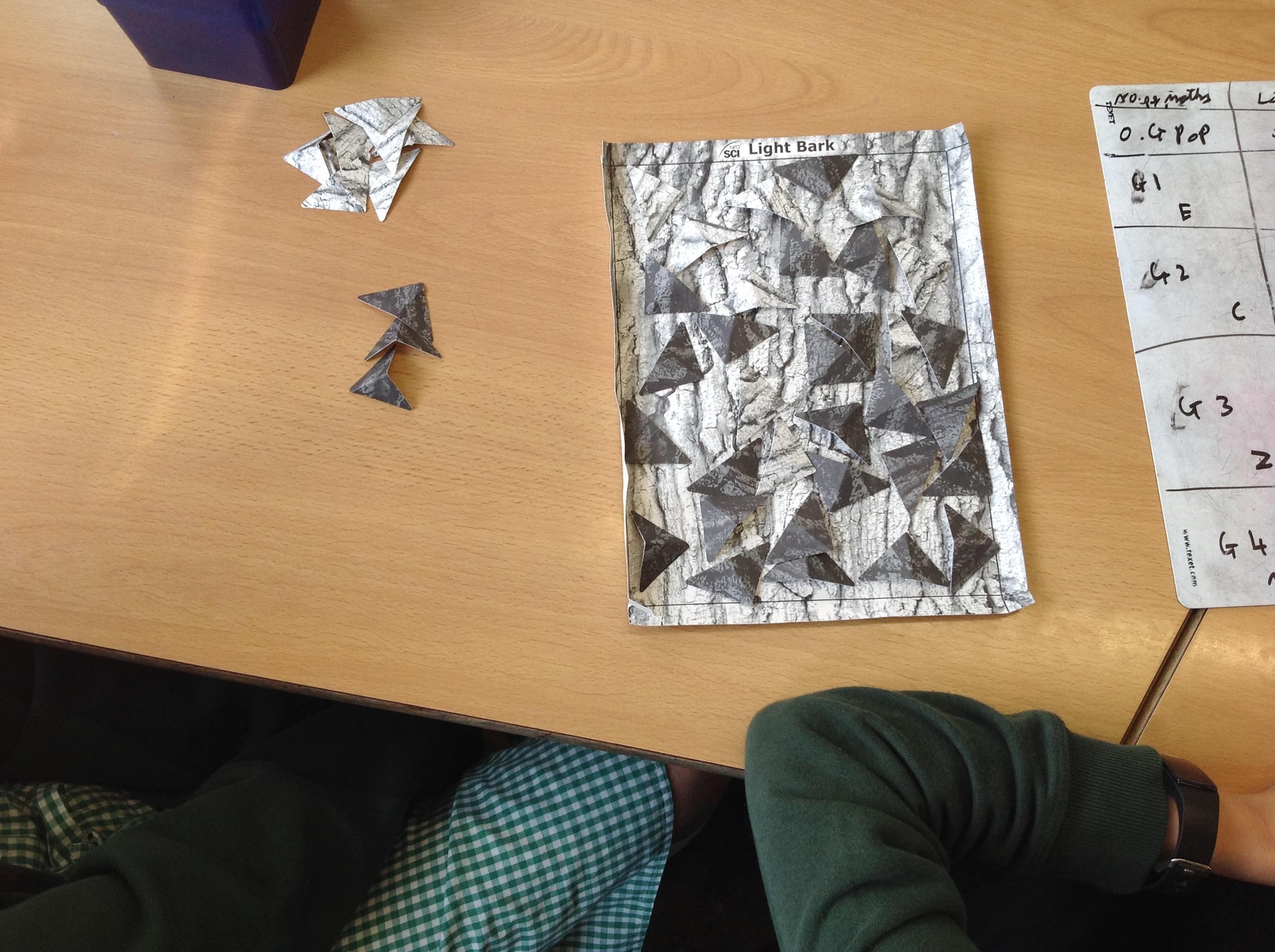 Next in Guided reading, we looked at a report all about the evolution of a species of moth, known as the Peppered Moth. Once we had read the text, as we were so keen to prove Darwin and Wallace's theory of natural selection that we tested this using an experiment where we pretended to be the predator of the moth and looked carefully at our results in different environments.