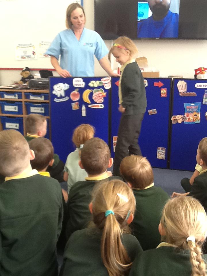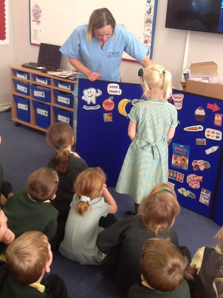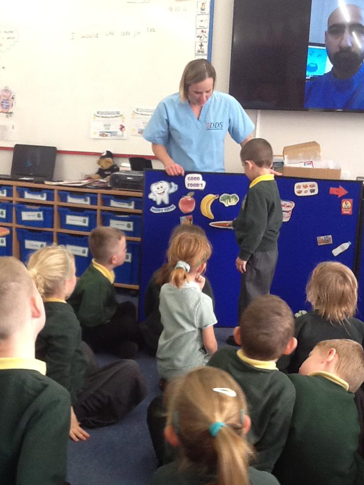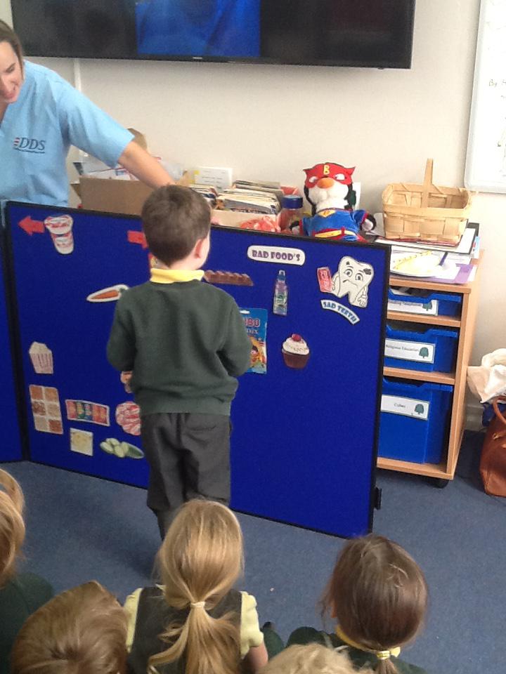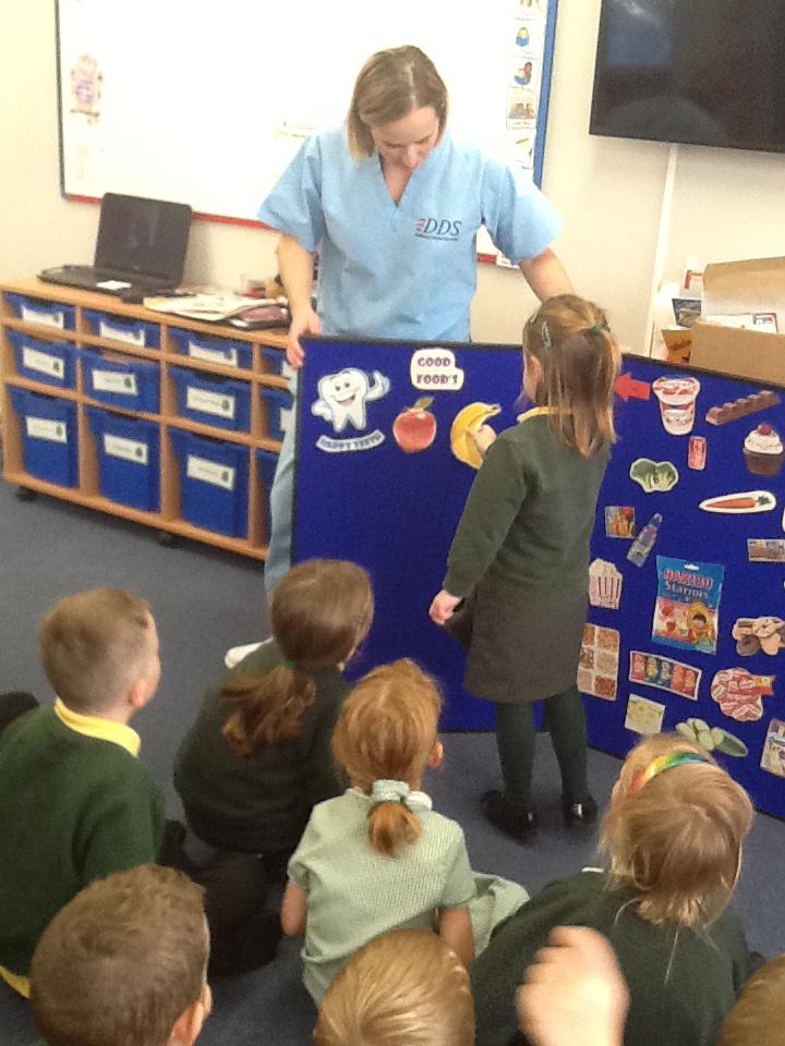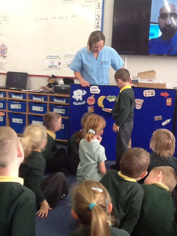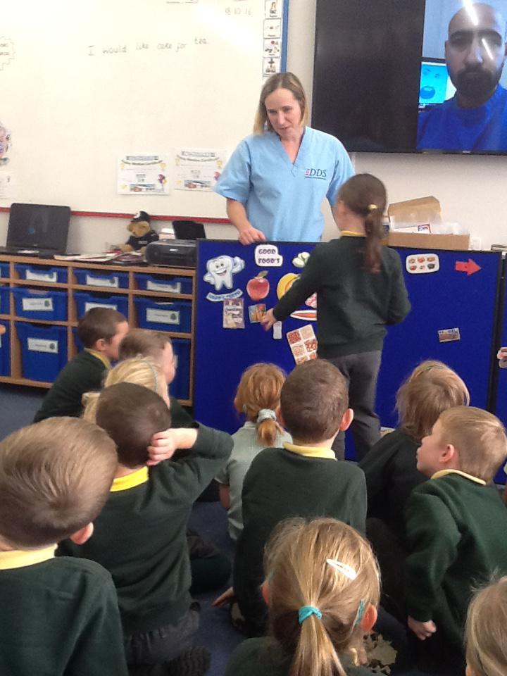We have also had a visit from the dentist helping us to make the right choice to keep our teeth and mouths healthy. We learnt more about brushing our teeth, which foods are good for our teeth and what happens when we go to the dentist. We even had a very special message from the singing dentist!
