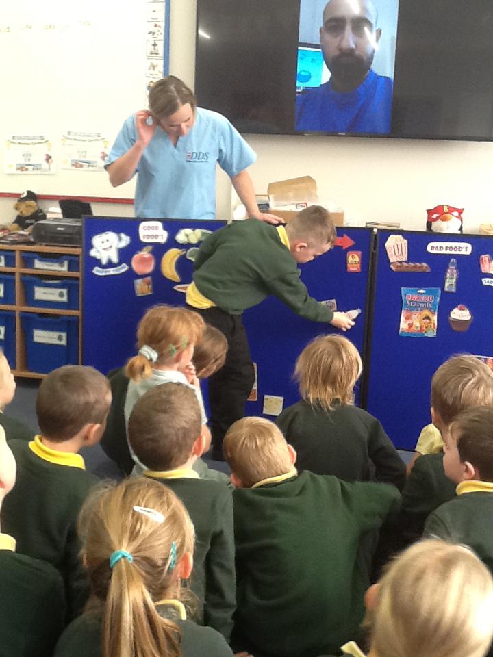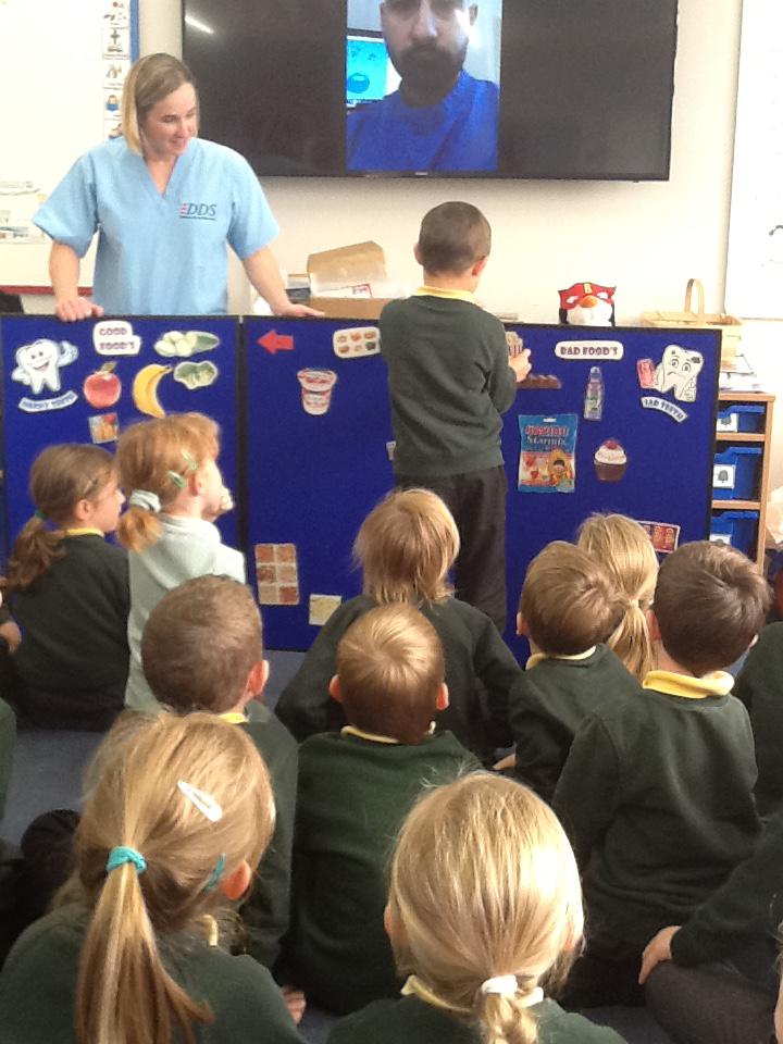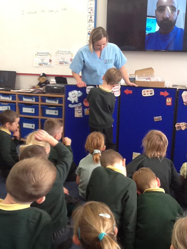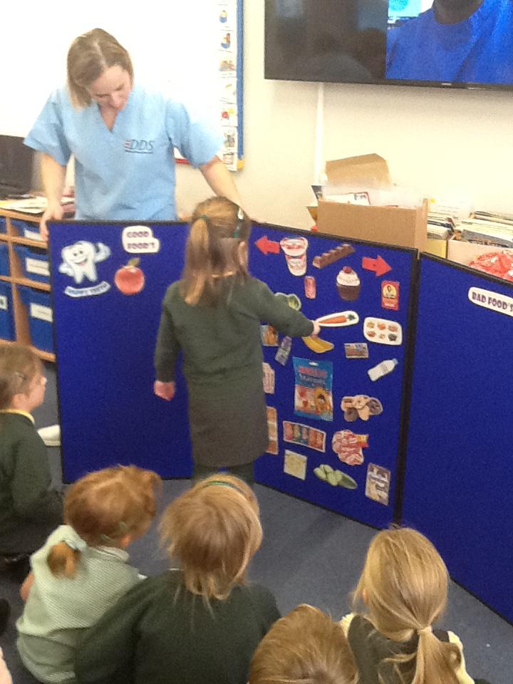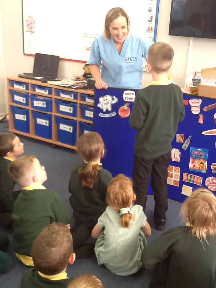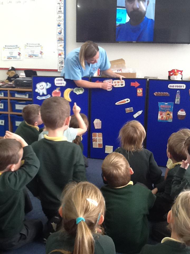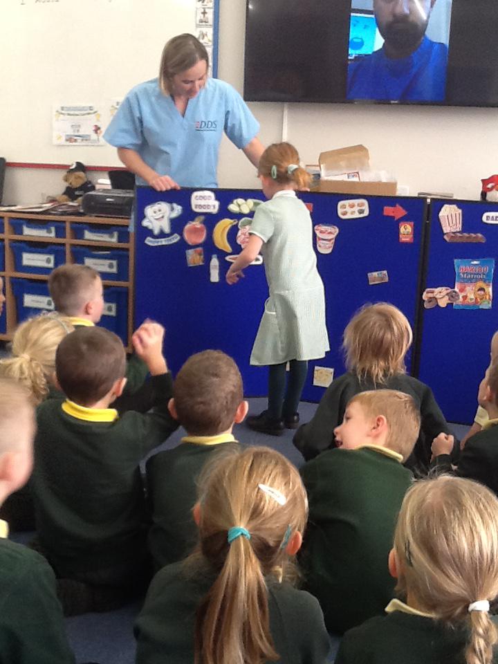 We have also had a visit from the dentist helping us to make the right choice to keep our teeth and mouths healthy. We learnt more about brushing our teeth, which foods are good for our teeth and what happens when we go to the dentist. We even had a very special message from the singing dentist!