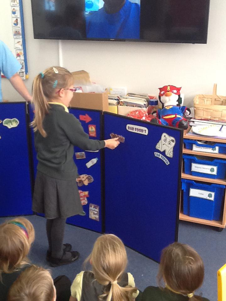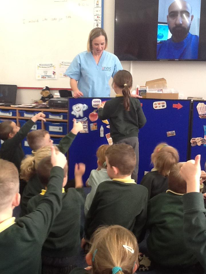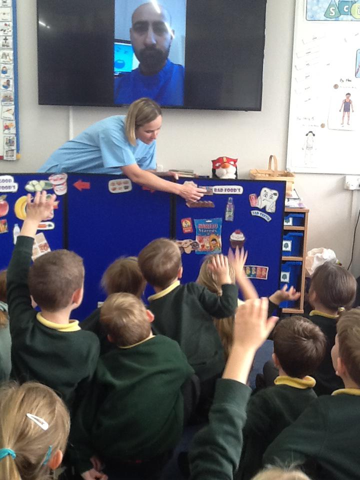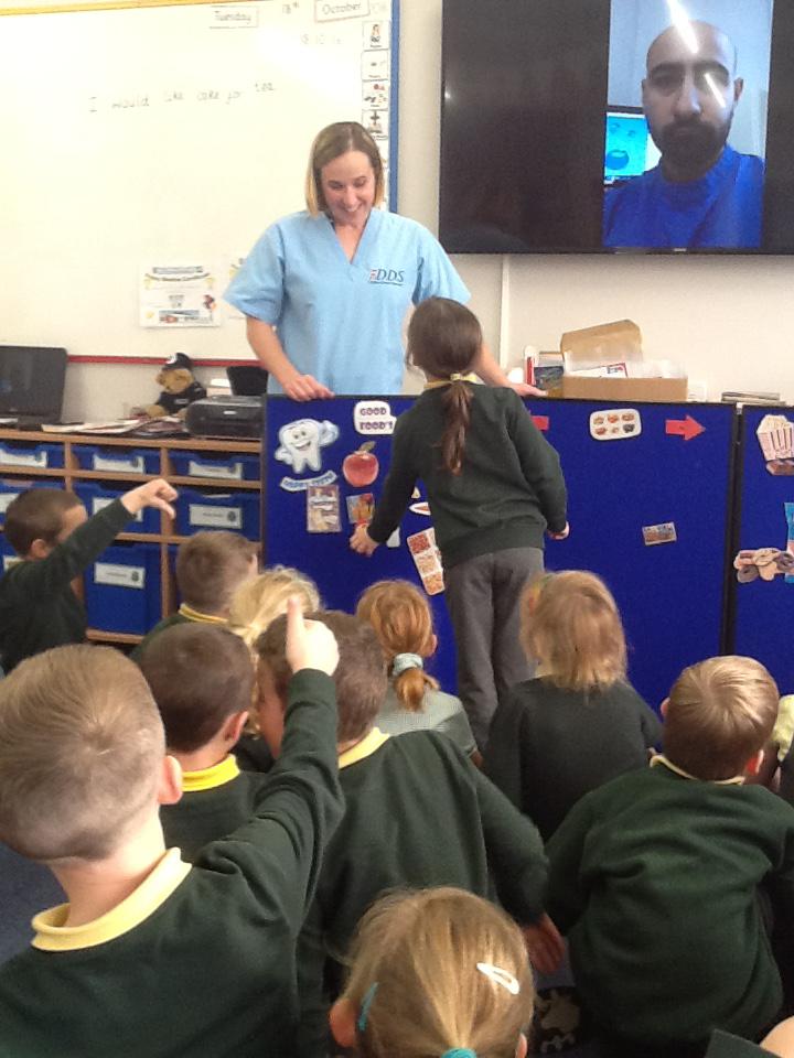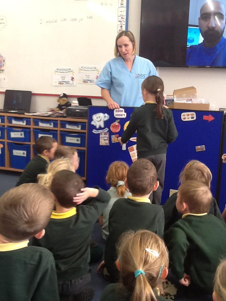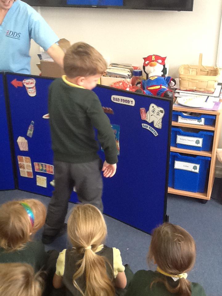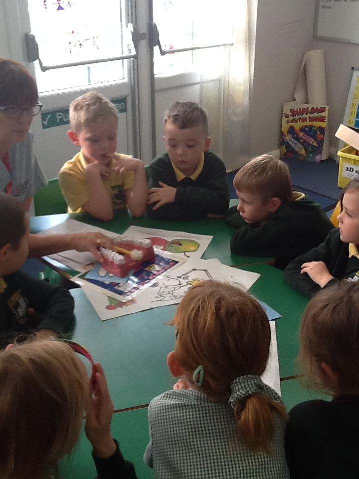 We have also had a visit from the dentist helping us to make the right choice to keep our teeth and mouths healthy. We learnt more about brushing our teeth, which foods are good for our teeth and what happens when we go to the dentist. We even had a very special message from the singing dentist!
