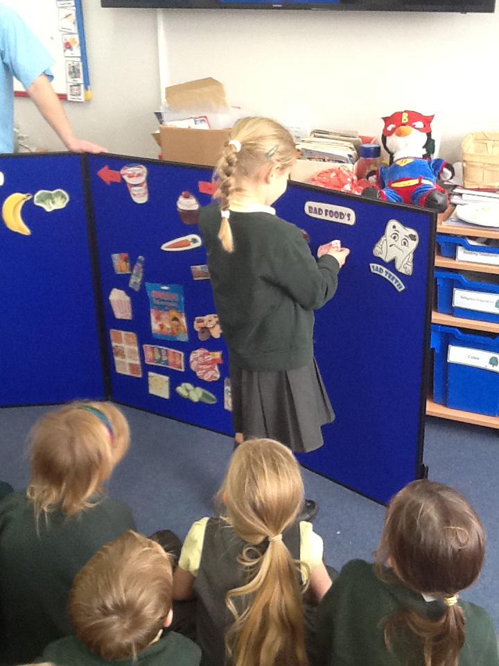 Continuing our work on the human body this week we looked at how healthy foods can help us to keep healthy and strong. We talked about lots of different foods and which food group we thought they might belong too. We have learnt that its ok to have a little bit of everything and how our bodies need lots of different kinds of foods to keep healthy.