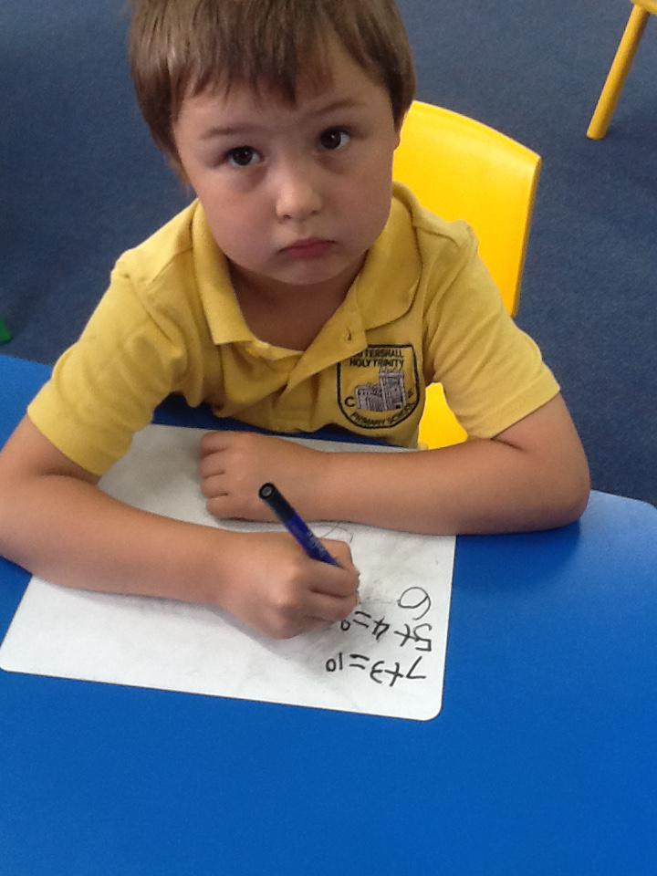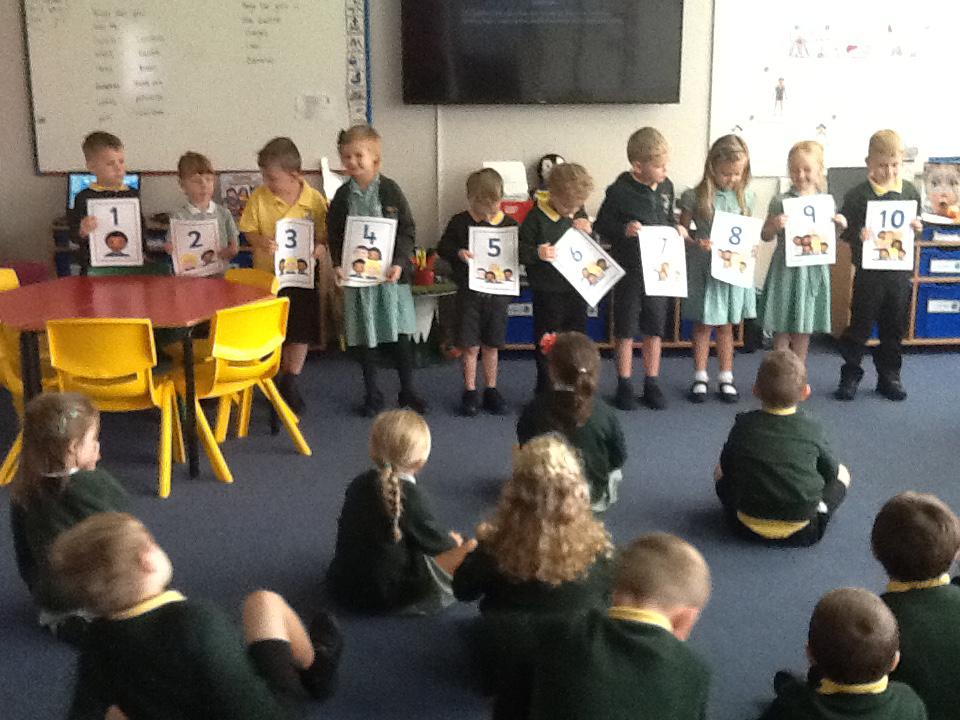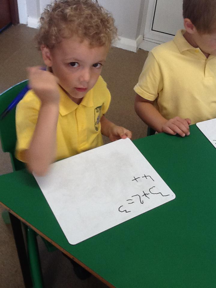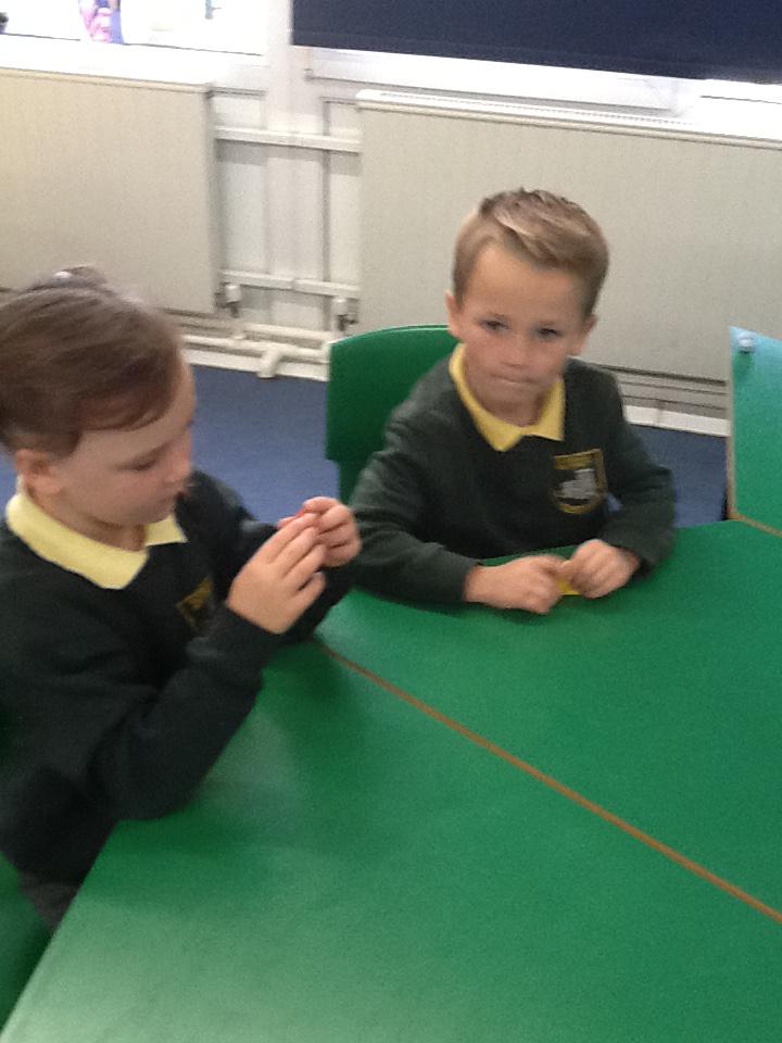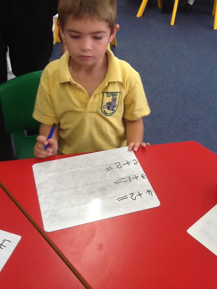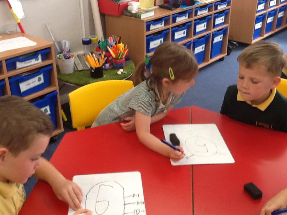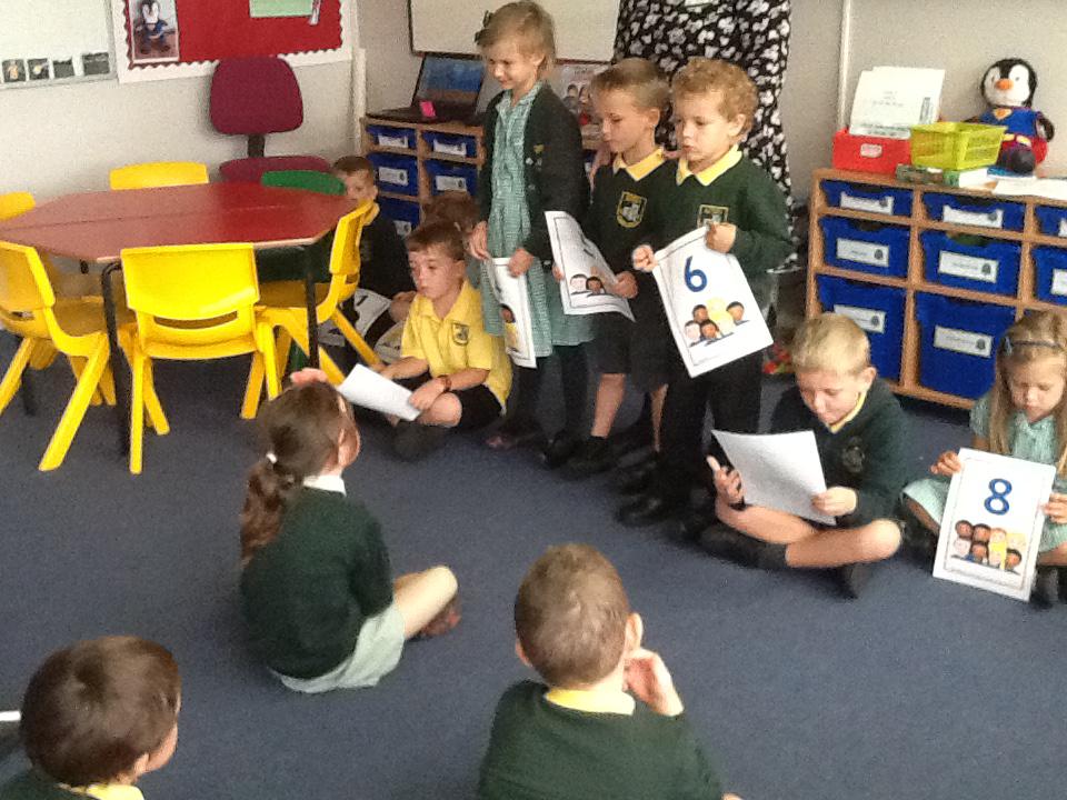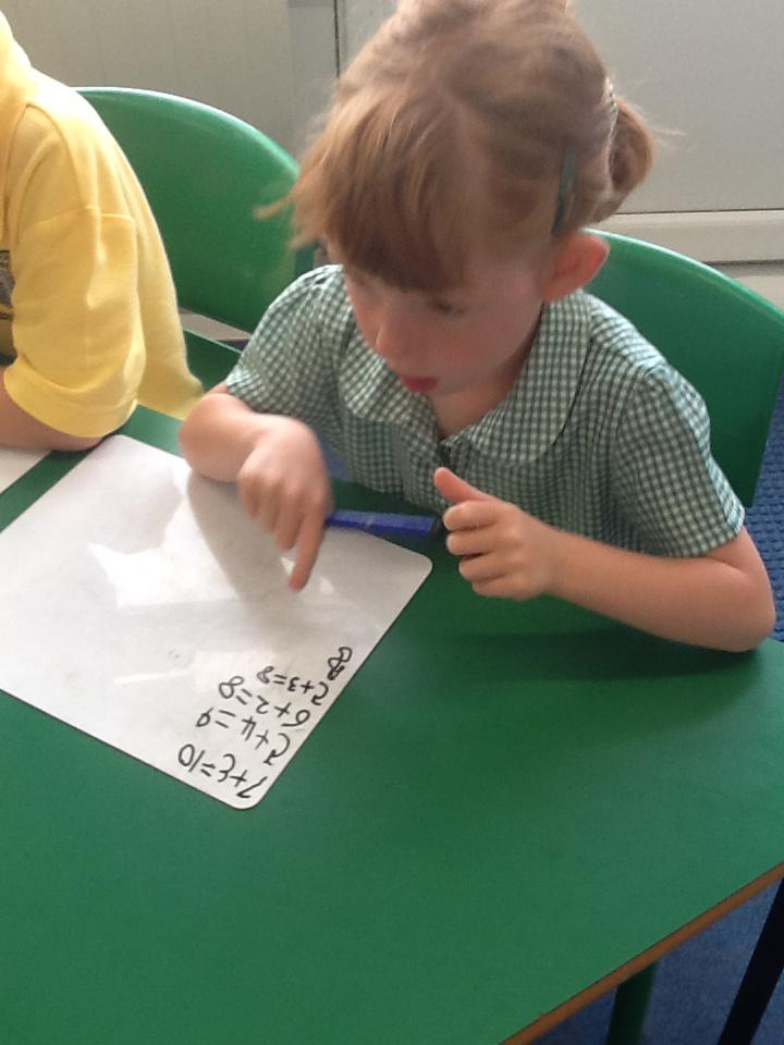 This week we have been learning our number bonds and looking for different patterns in our number sentences. We have continued to practise our number formation this time having magic fingers writing numbers on each others backs.