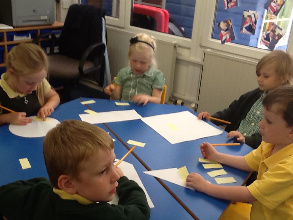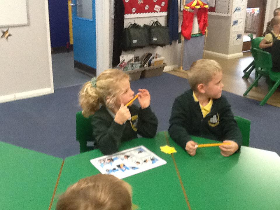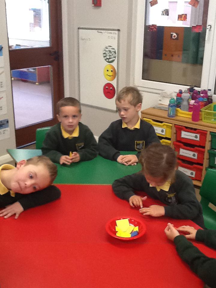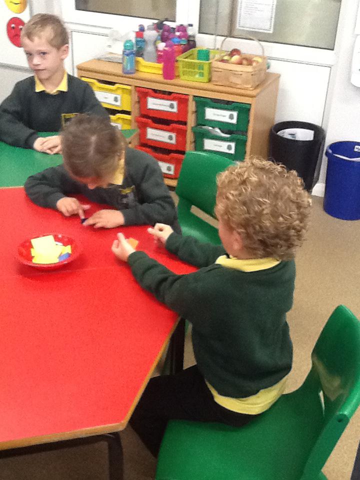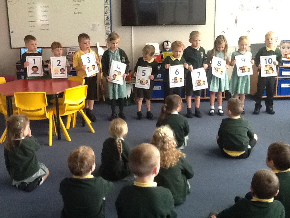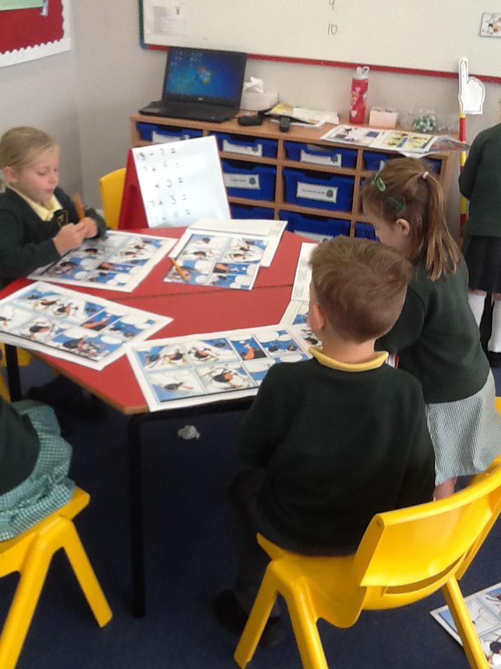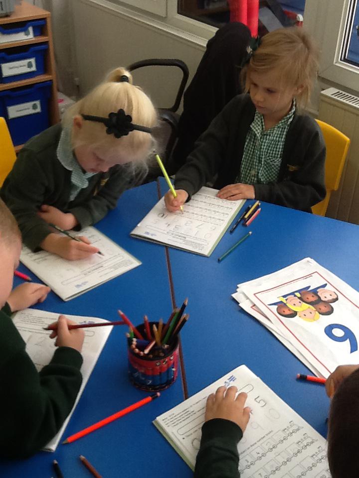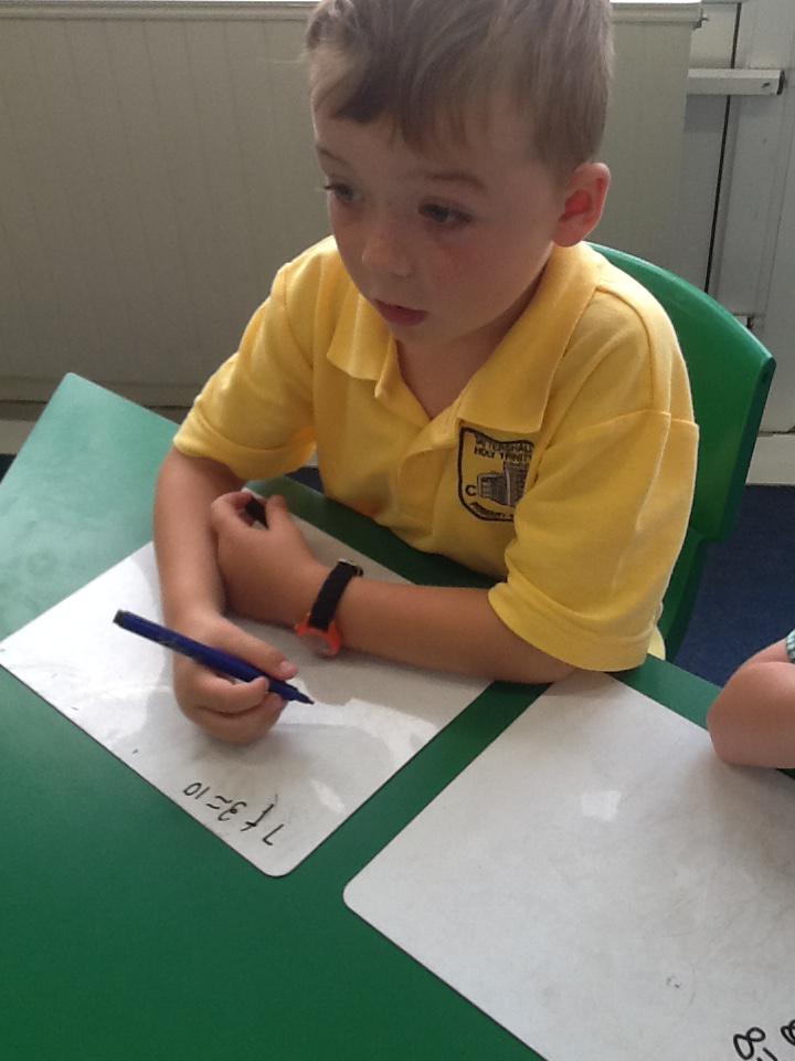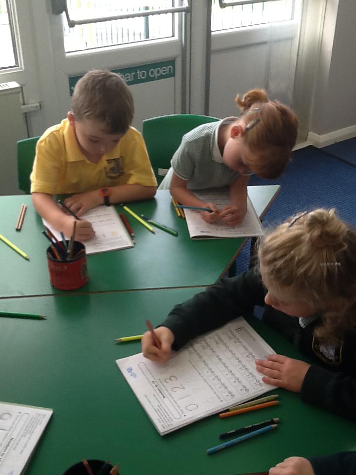 This week we have been learning our number bonds and looking for different patterns in our number sentences. We have continued to practise our number formation this time having magic fingers writing numbers on each others backs.