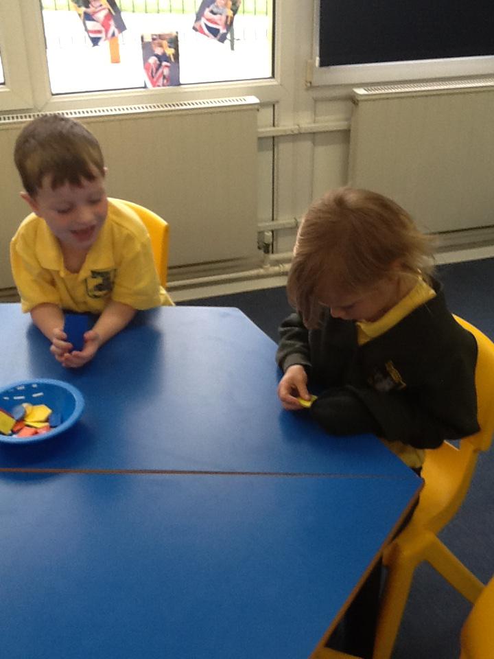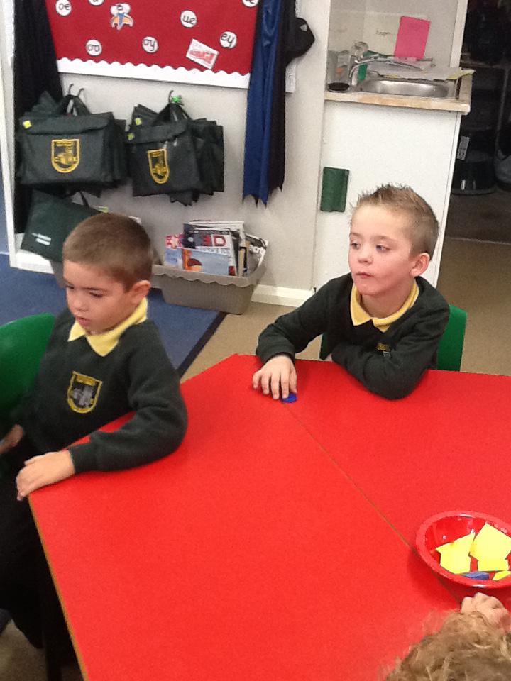 We have continued our work on shapes this week. We have been describing different shapes to our friends, we have been using shape books to identify different shapes and we have made tricky shape patterns. To end the week we made our own shape display which is next to our classroom door. Please come and see our great work!