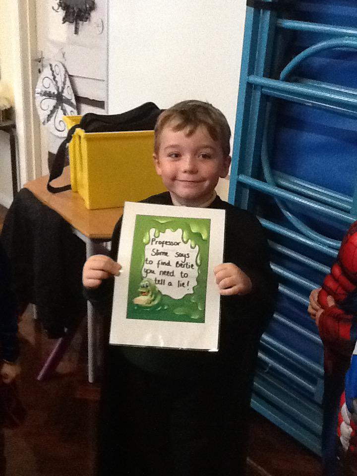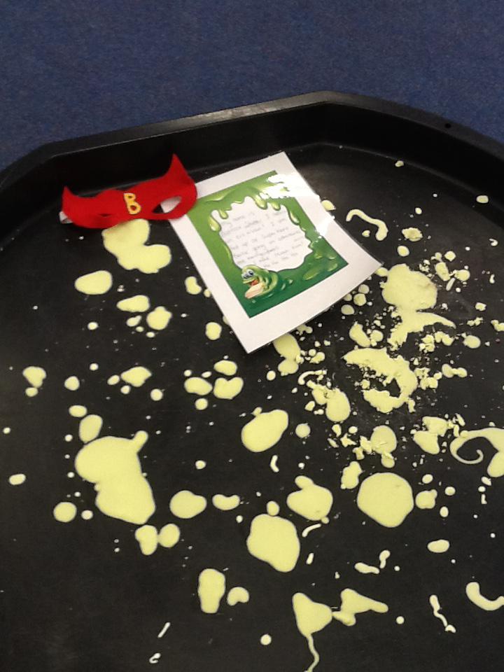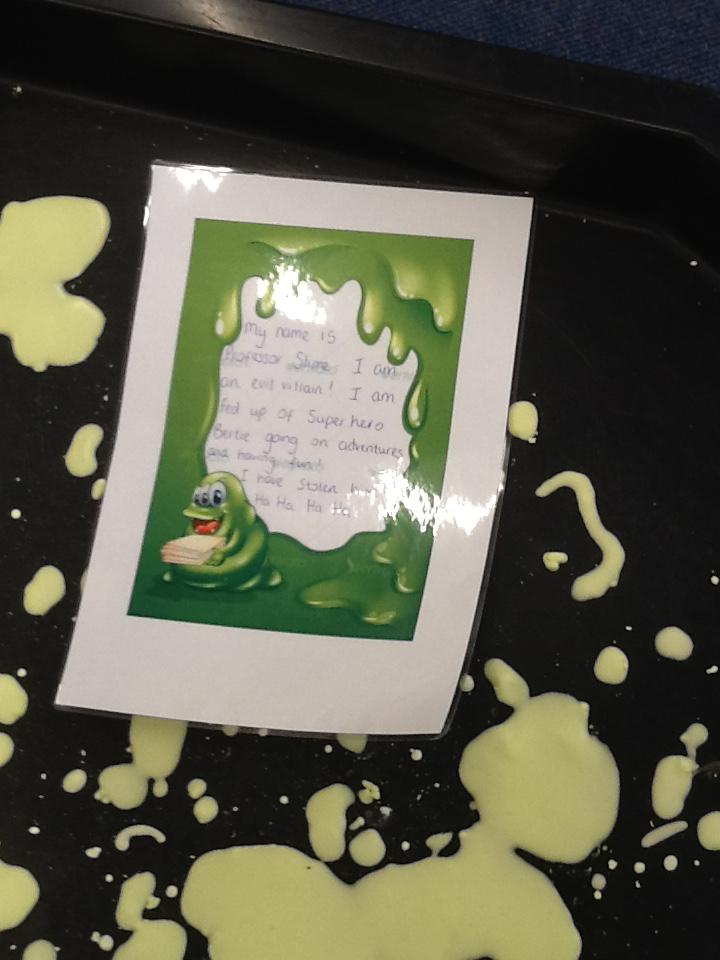 This week we took part in a BBC live lesson. It was very exciting to be including in a lesson which schools across the UK were doing at the same time! On Wednesday we came in from playtime and found some slime in our classroom. We discovered that Professor Slime had stolen Bertie and had left us some wrong choices to try to find Bertie. We were very worried about Bertie but we transformed into superheroes so we could rescue him! When we found Bertie we realised Professor Slime wanted to be a superhero too so we helped him to make the right choices also. A great job Willow Class!