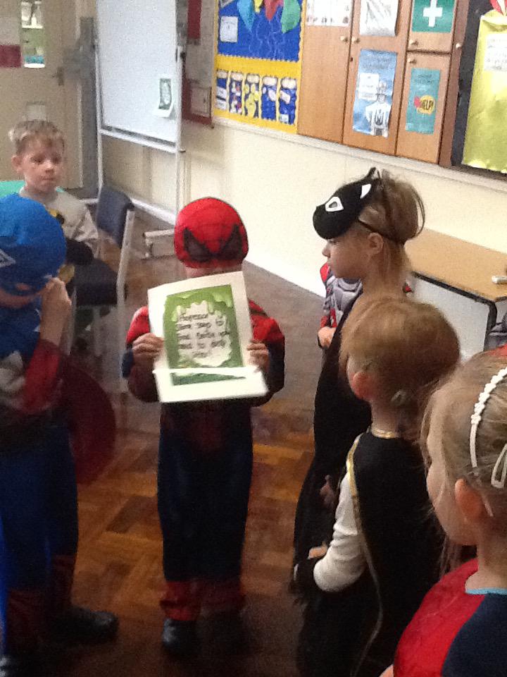 As part of our work on superheroes we have been using our speaking and listening skills to discuss our favourite superheroes. We listened very carefully to our friends and were able to retell the things they said.