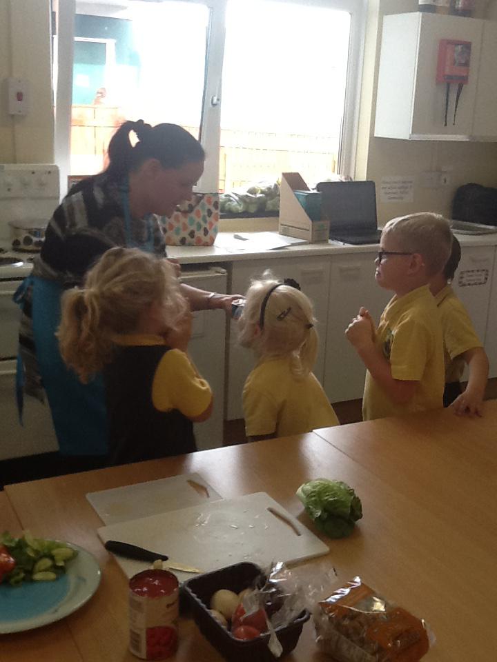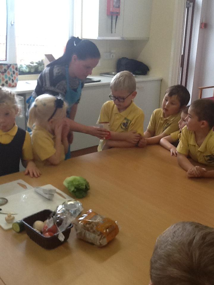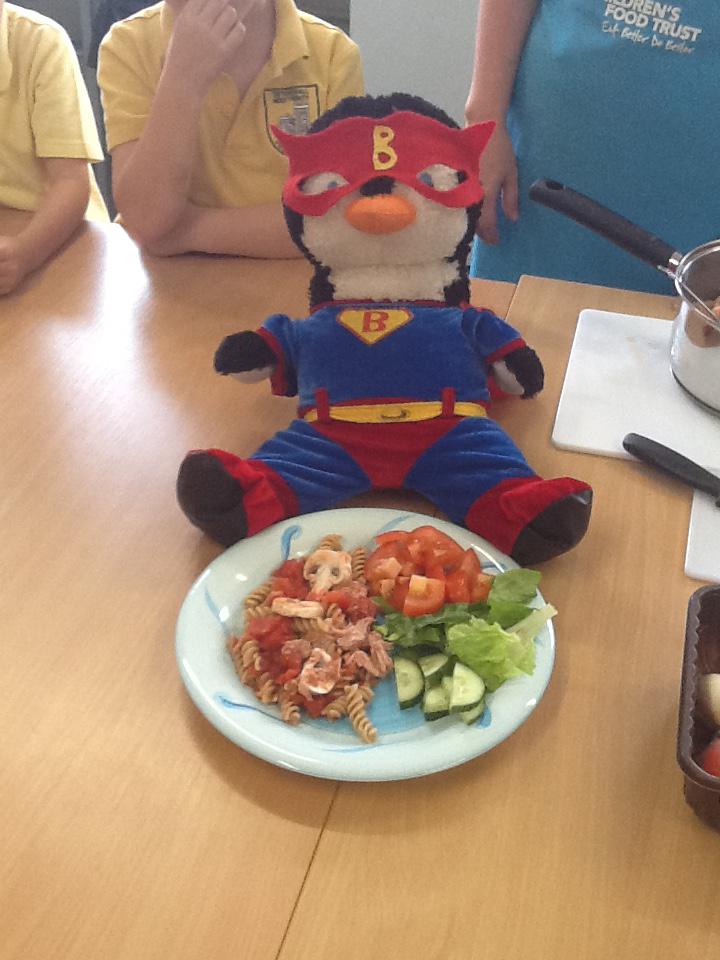 As part of our work on the human body we have been looking at ways to stay healthy. We decided we would design and make Bertie a healthy lunch after all his work with Professor Slime. We designed a meal using the healthy plate. We then created our healthy meal for Bertie to enjoy!