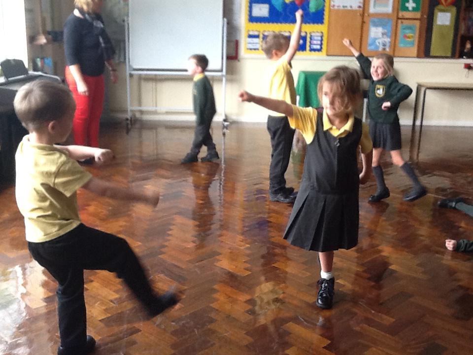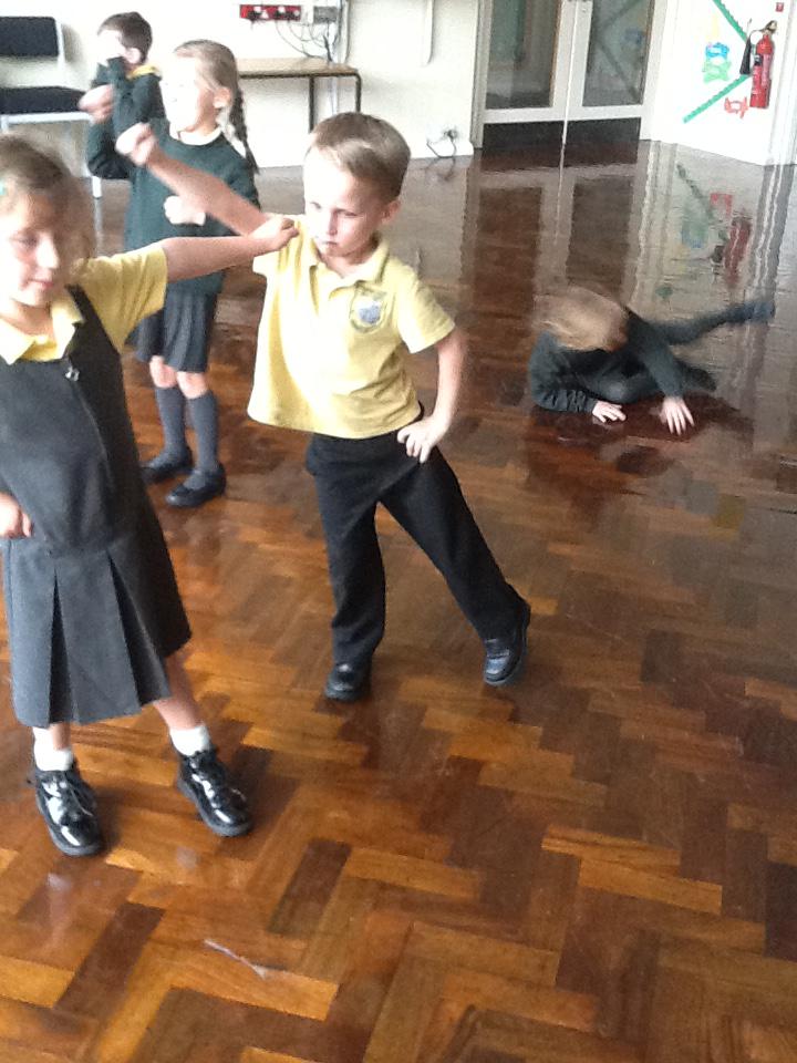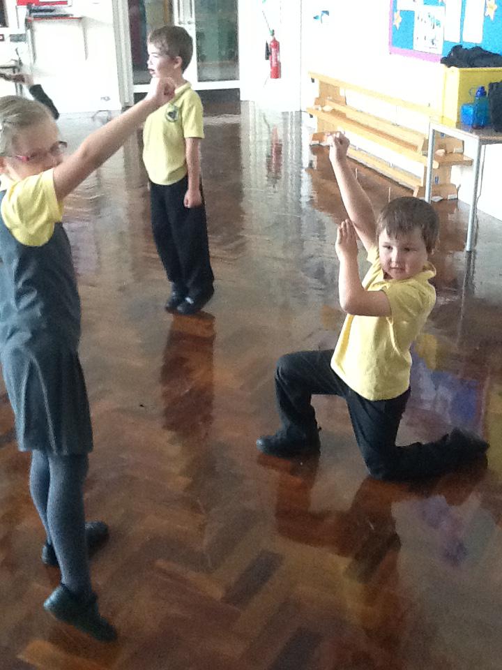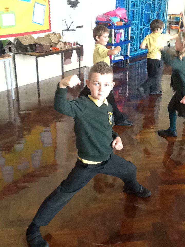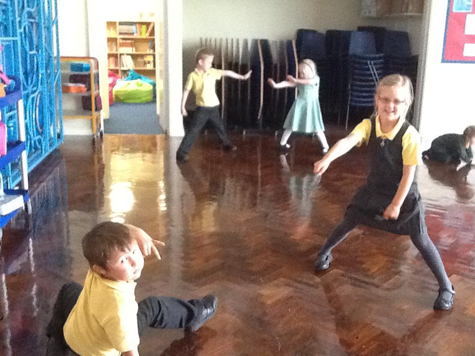 We decided we wanted to create some patterns of different movements that we might see different superheroes and villains use in comic strips. We used freeze frames to help us capture the different movements. Our class favourite move was flying!