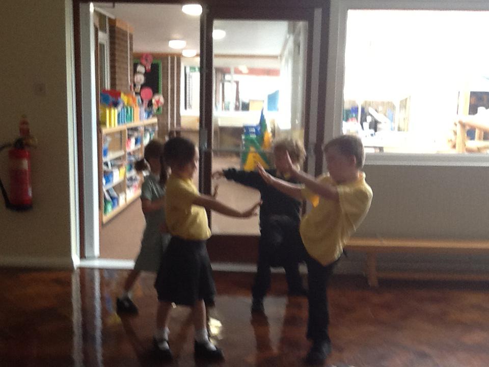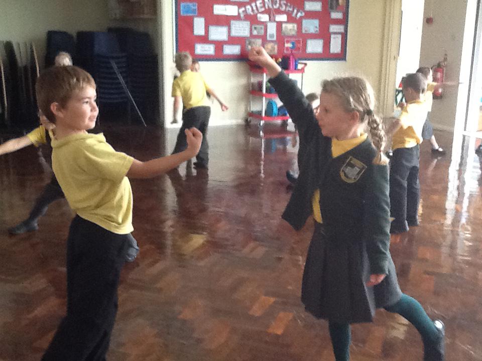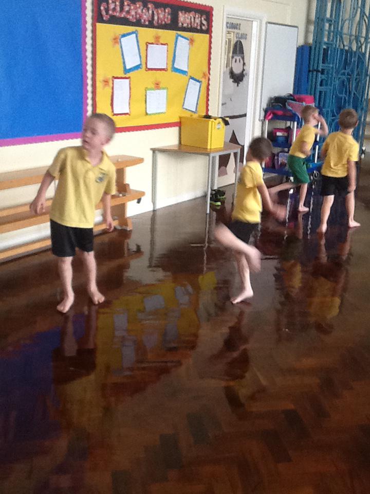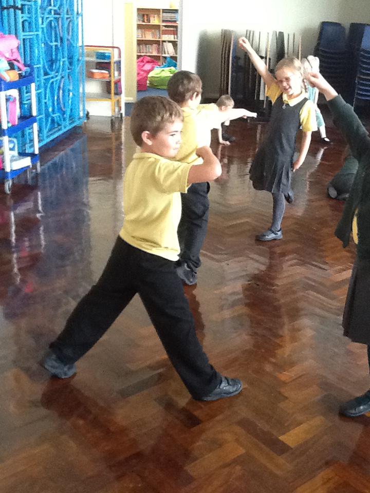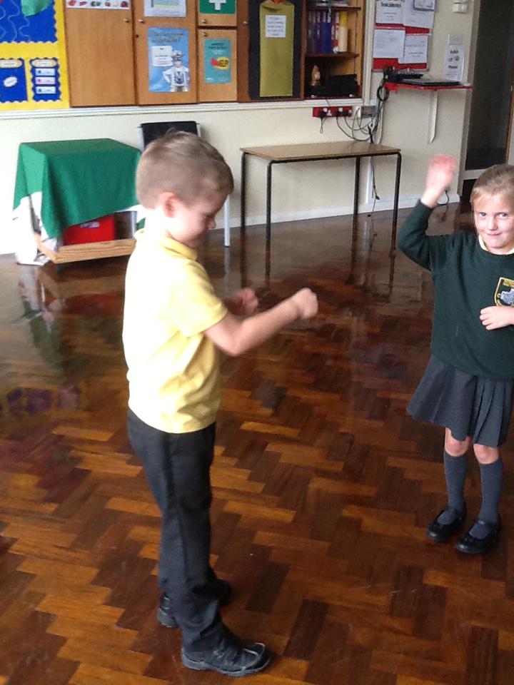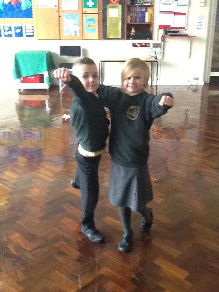 We decided we wanted to create some patterns of different movements that we might see different superheroes and villains use in comic strips. We used freeze frames to help us capture the different movements. Our class favourite move was flying!