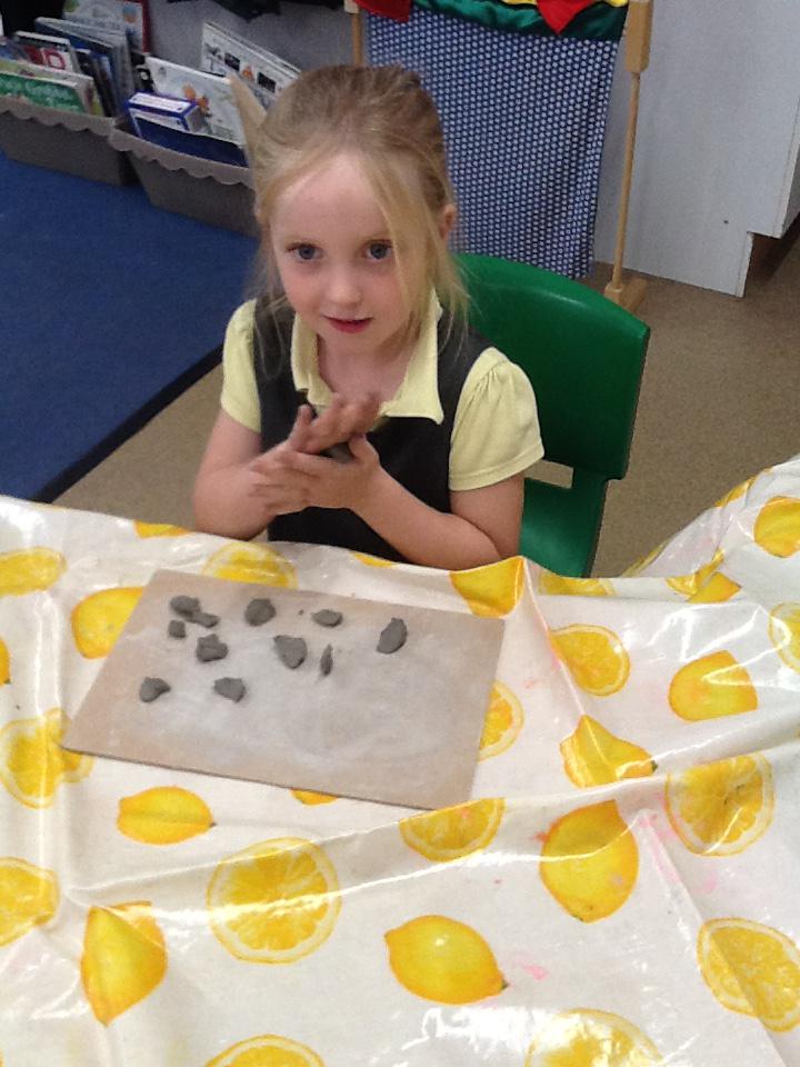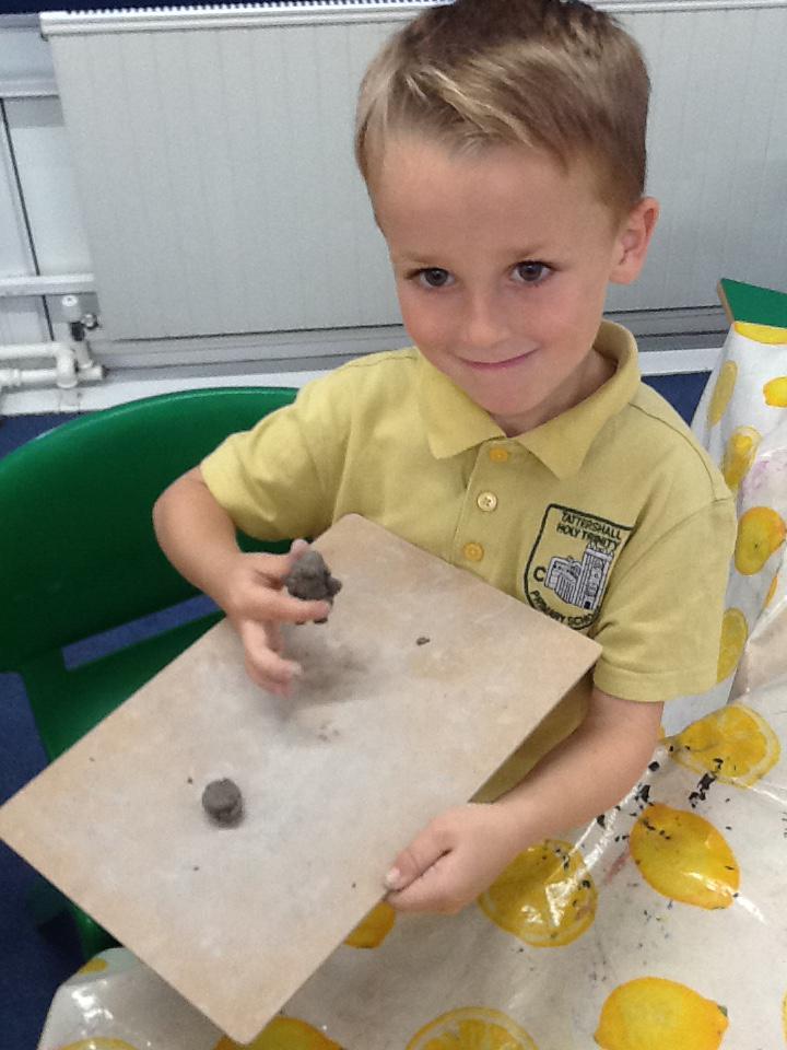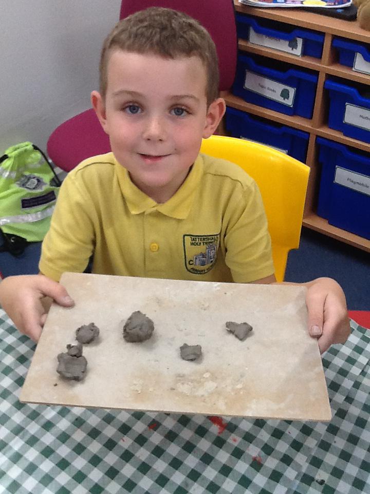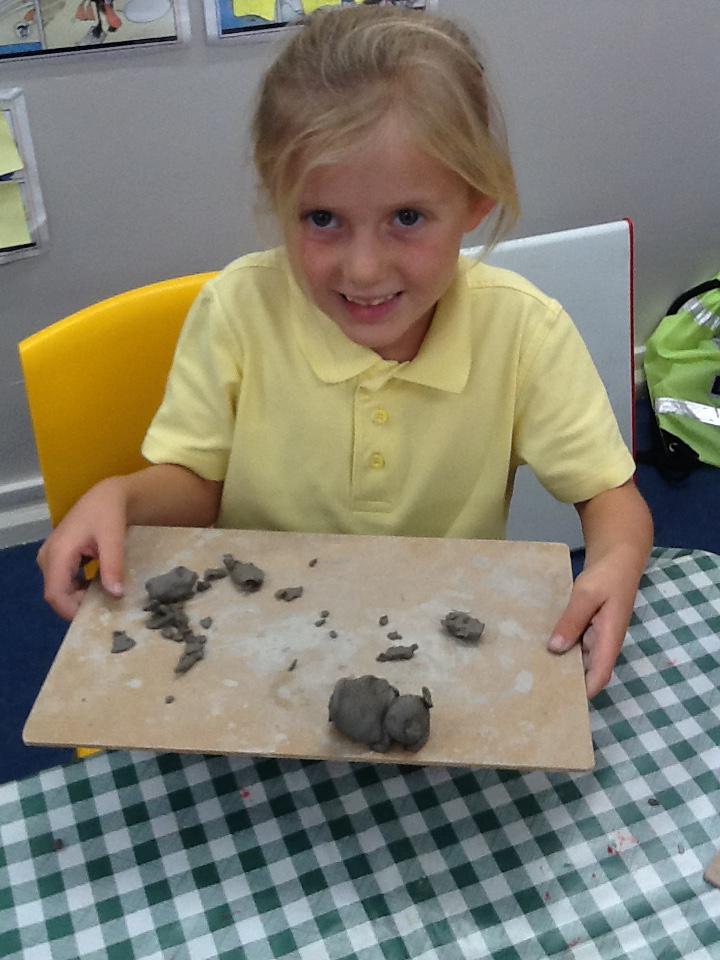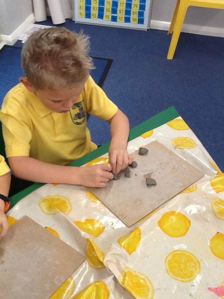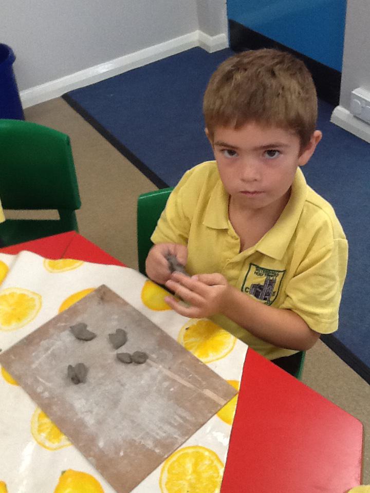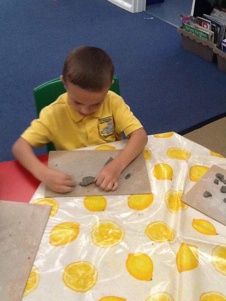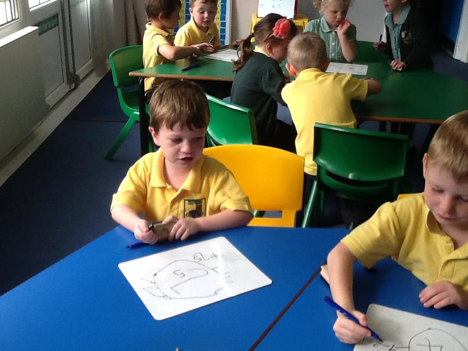 This week we have been using clay. We began by sketching our Bertie sculpture thinking about proportion. We then used our fingers to mould the clay into different shapes before putting them together for our final piece. It was great fun to use clay and our sculptures were fantastic!