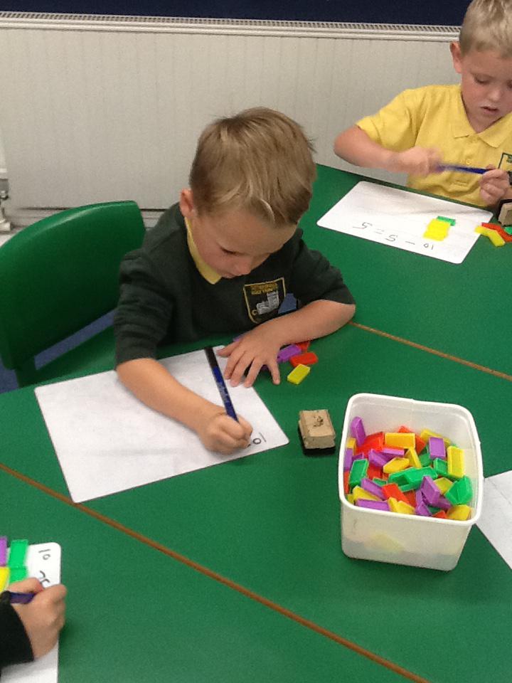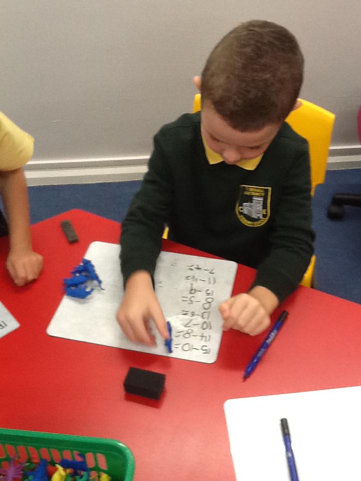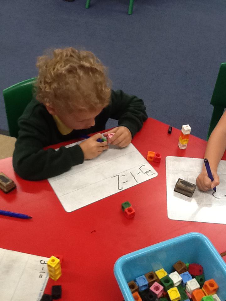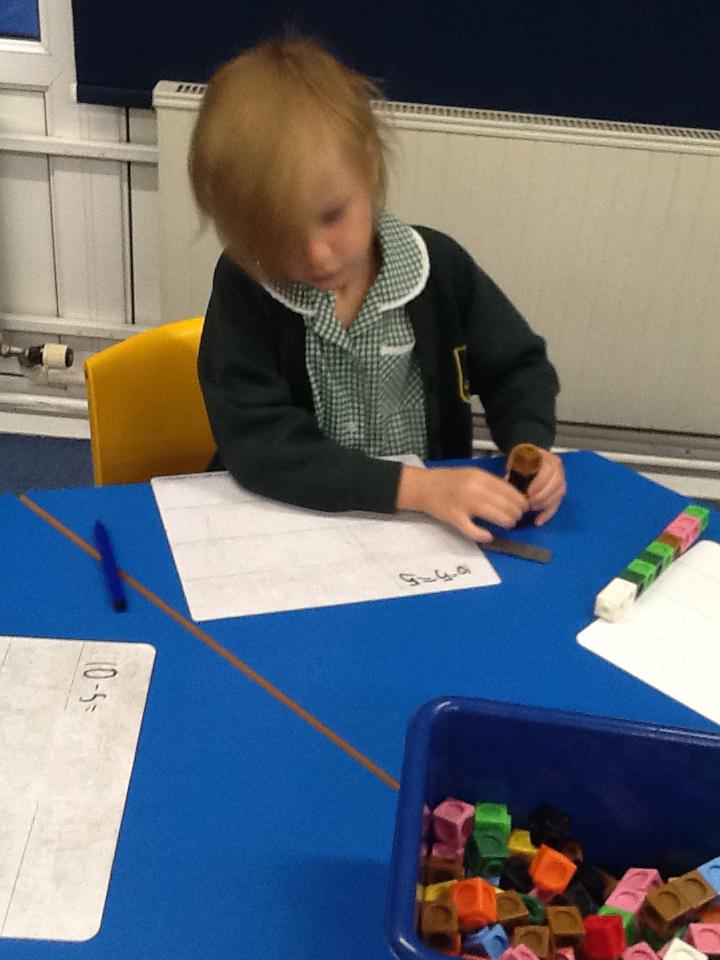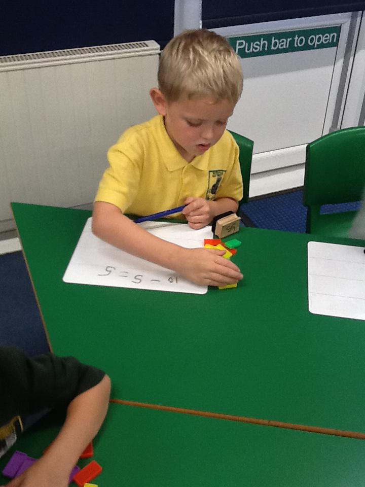 This week we have been recognising the subtraction symbol and investigating different strategies we could use to solve subtraction sentences. We have used lots of different maths equipment to help us and continued to practice our number formation. As we gained confidence we recapped our addition skills and had to read sentences very carefully to see which operation we needed to use. On Friday we had a maths investigation. We had to find as many different ways using addition and subtraction to make the same number.