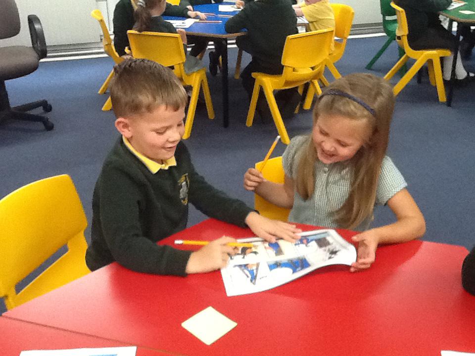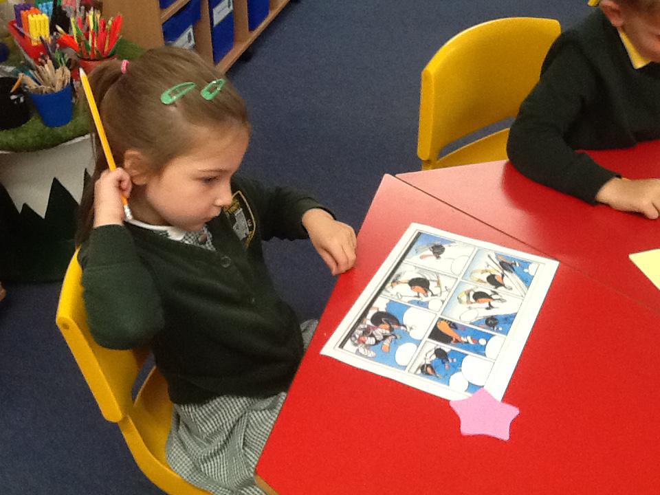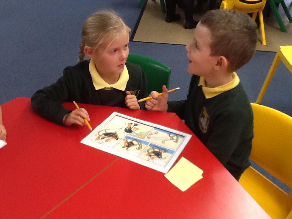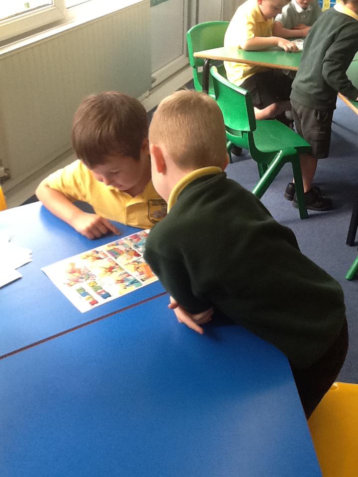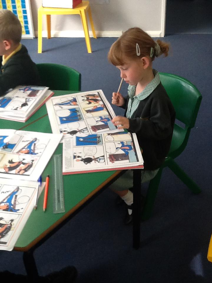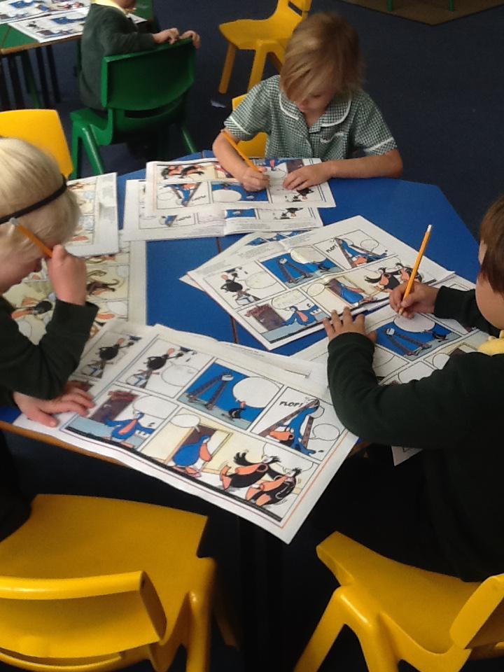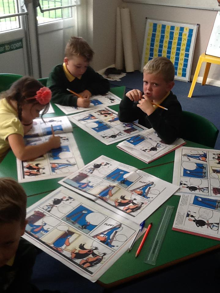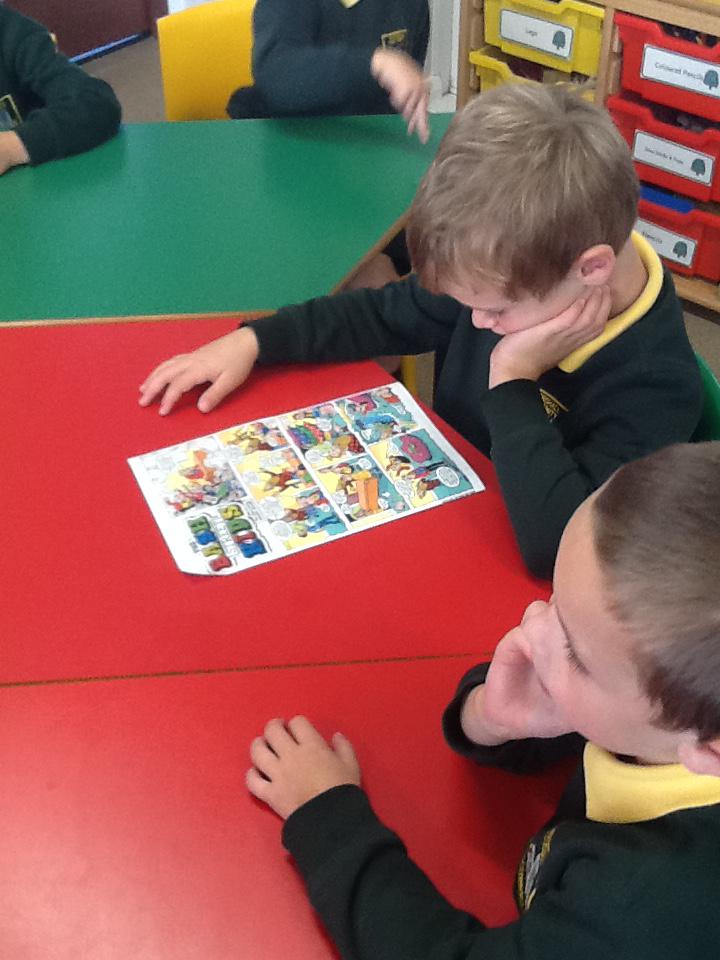 What a super writing week we have had. On Monday we looked at comics with no words. With a partner we discussed what we thought was happening in the different boxes and what words we might like to put into the speech bubbles. We then moved this on to creating a first draft of writing our own comic strip. We responded to feedback and made editing changes with gel pens (which was very fun) before finally creating our best polished piece. This was the first time we have done any editing and it was a great success!