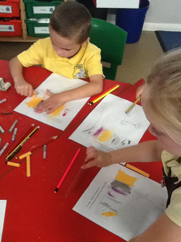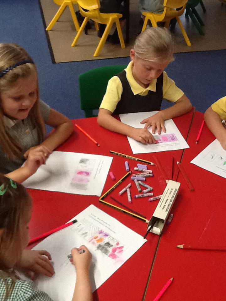 We have been investigating different art materials to see how they can create different art effects. We used oil and soft pastels, charcoal, chalks, a range of different drawing pencils and crayons to see how we could create different effects. We discovered some materials were better for outlines whilst some could be smudged to create a round effect.