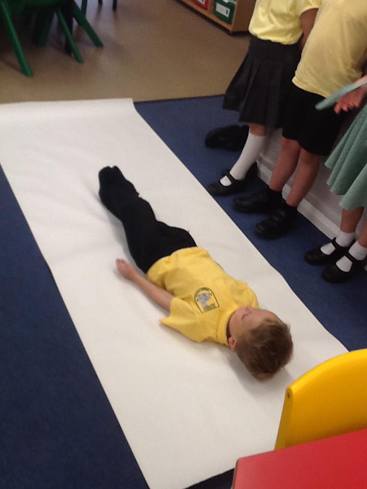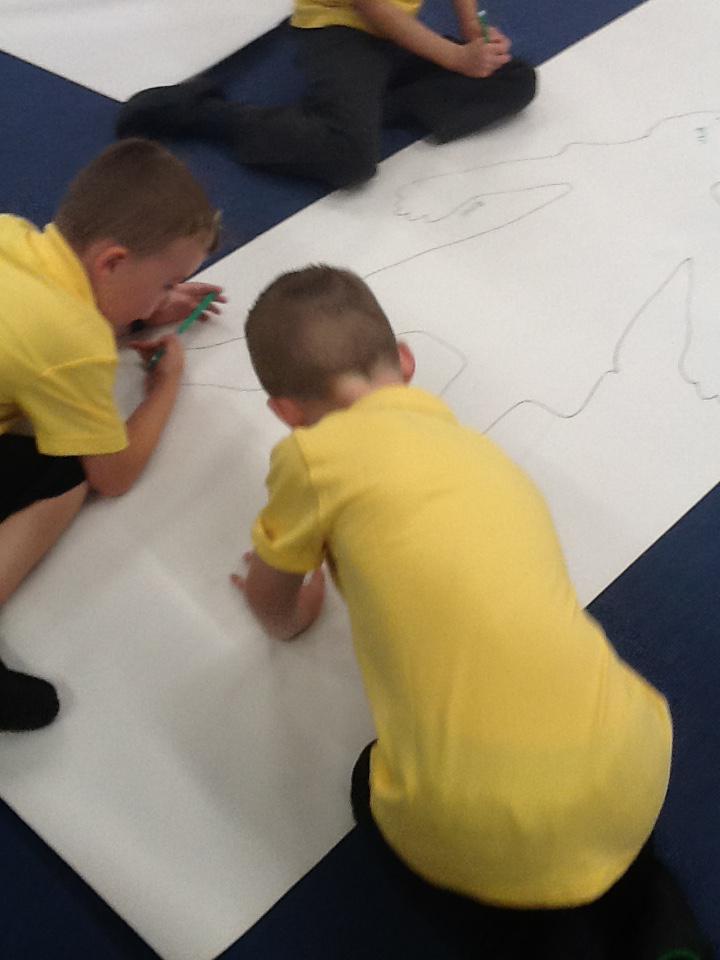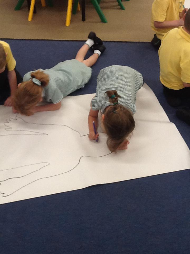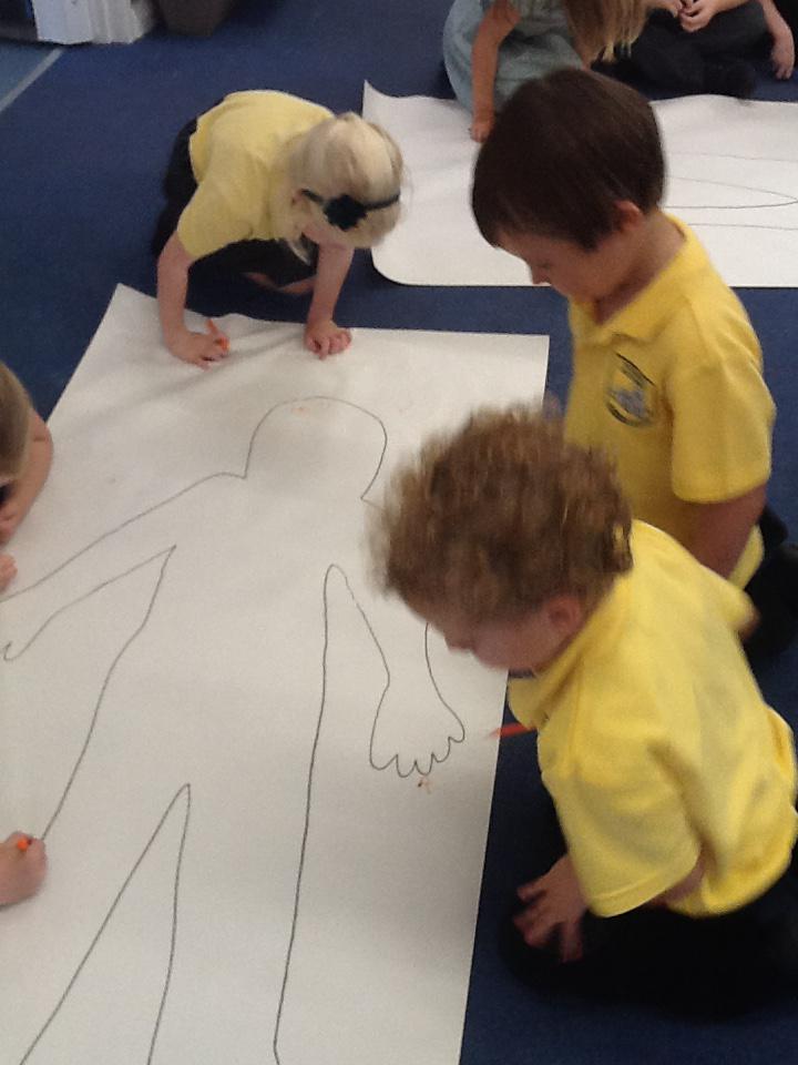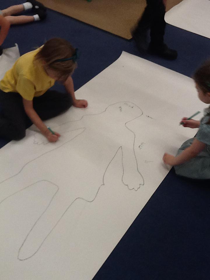Our science topic this term is to learn more out about the human body. This week we drew around each other and labelled as many parts of the body as we could. It was fun to create a real life sized labelled body.