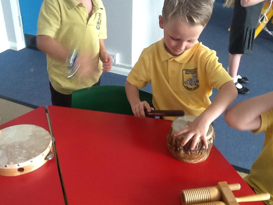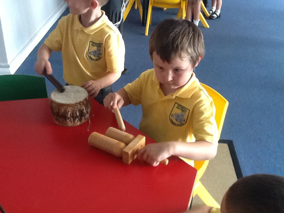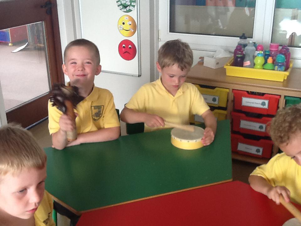 Friday afternoon was a very noisy afternoon in Willow class! We decided we would like to use different musical instruments to create sounds that we thought superheroes might make. We thought about when superheroes run, jump, slice, throw, stomping, spin and fly. We changed the way we played the instruments to create soft and hard sounds.