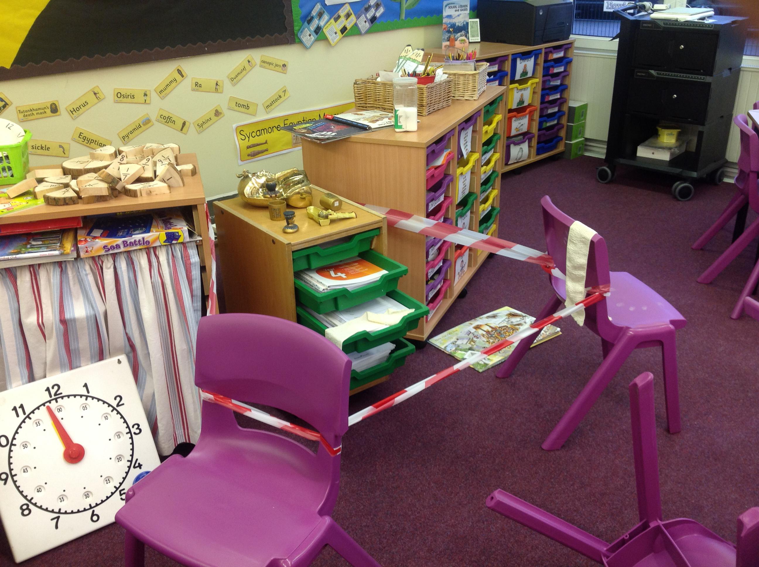 This morning, at 9am, we discovered a messy classroom! There were bandages all over the place and a mummy was stolen! Miss Read's Crime Scene Team are on the case! We are interviewing members of the public and information and clues. We will keep you informed of our progress.