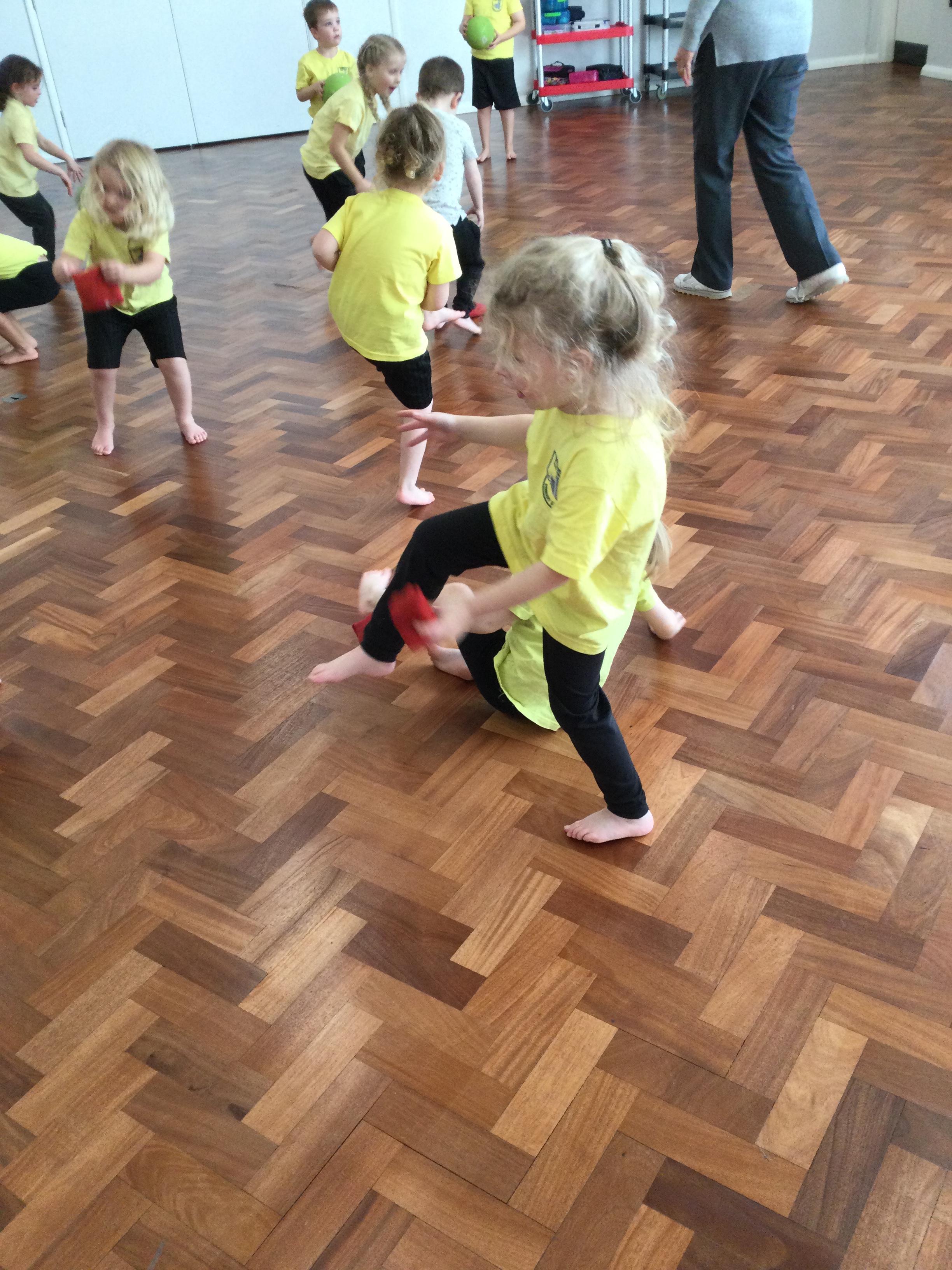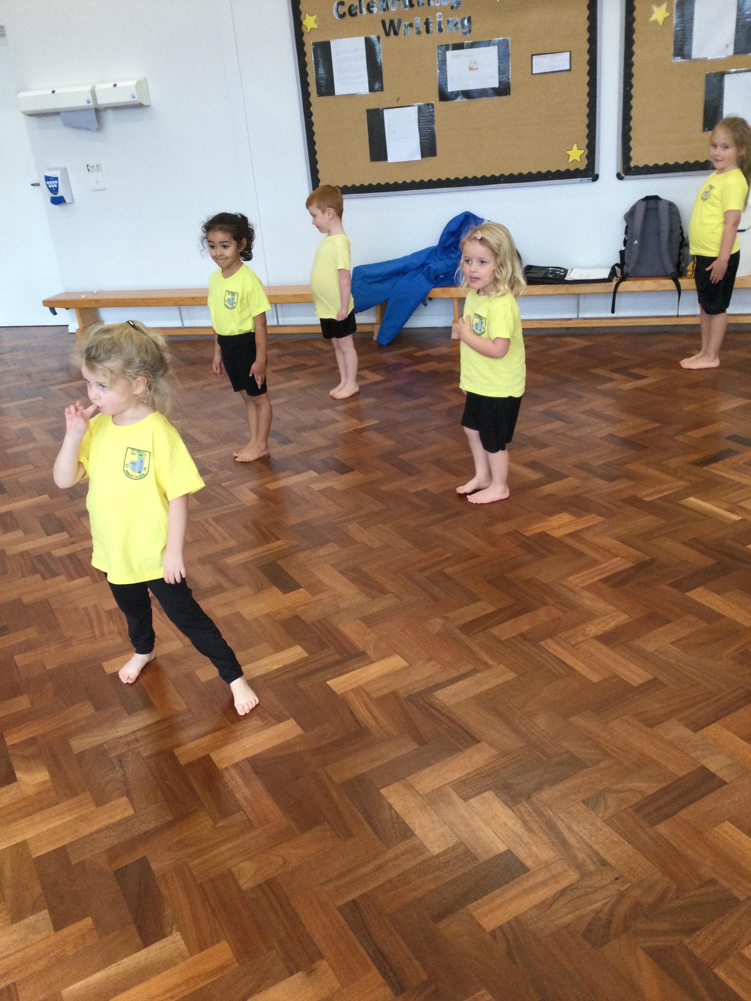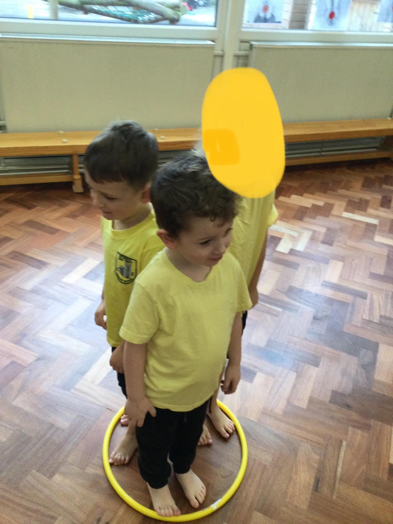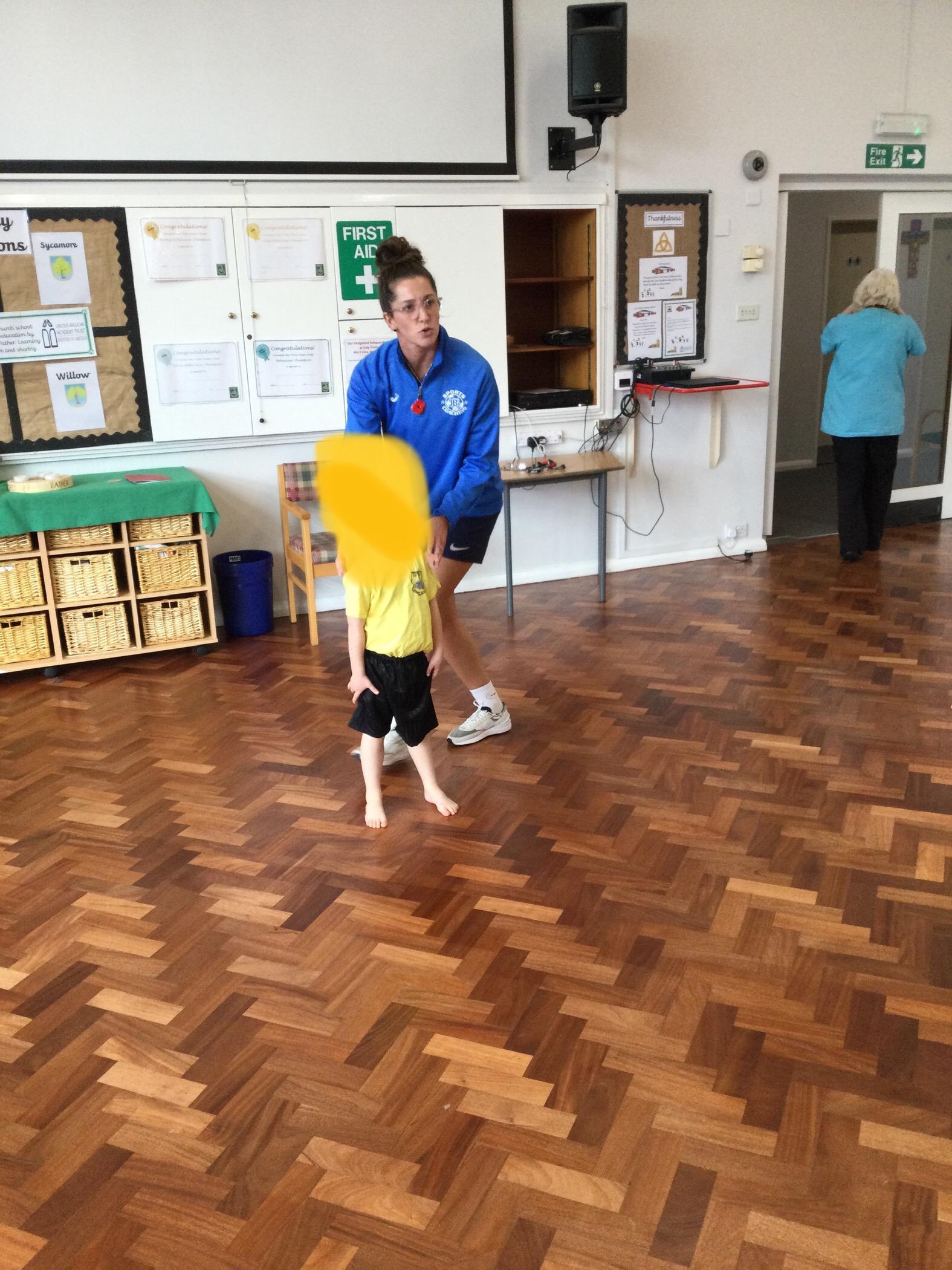 Today the children experimented with different equipment. This included a big ball, small ball and a bean bag. The children had to come up with different things they could do with their equipment.