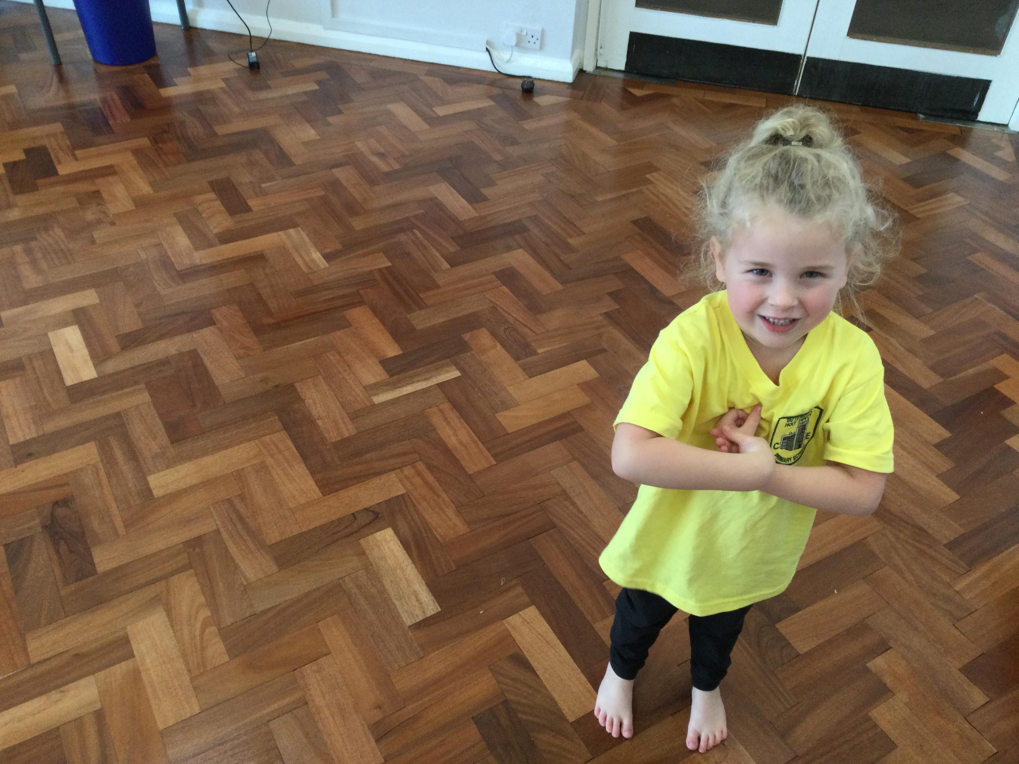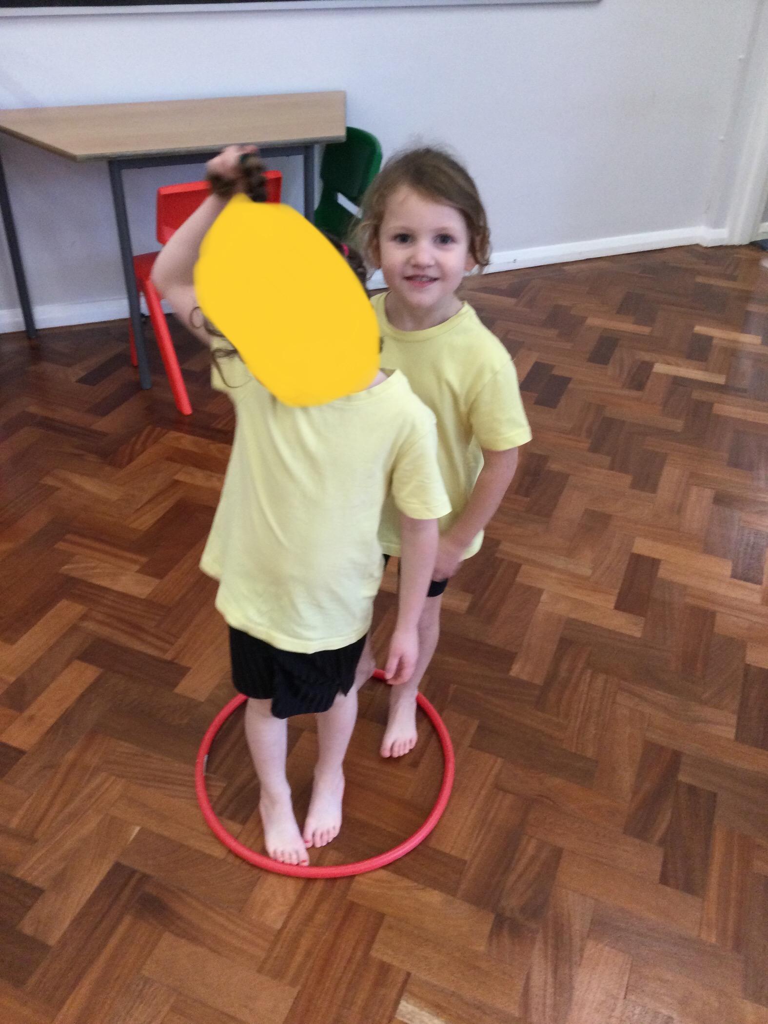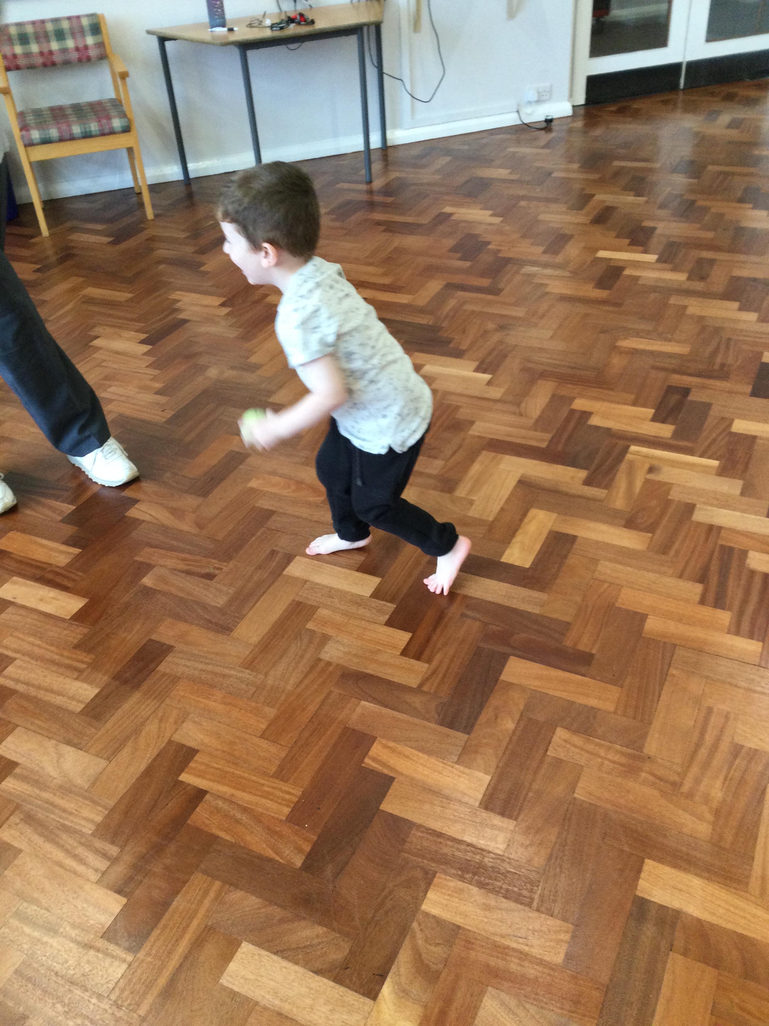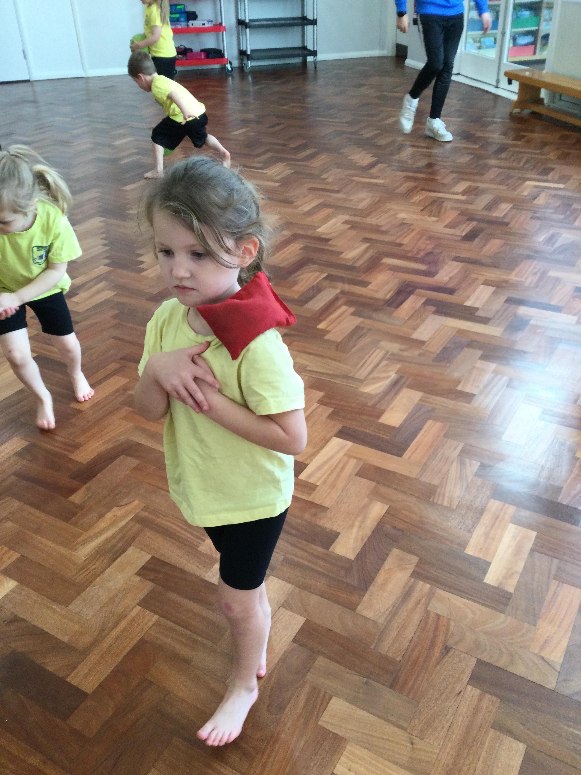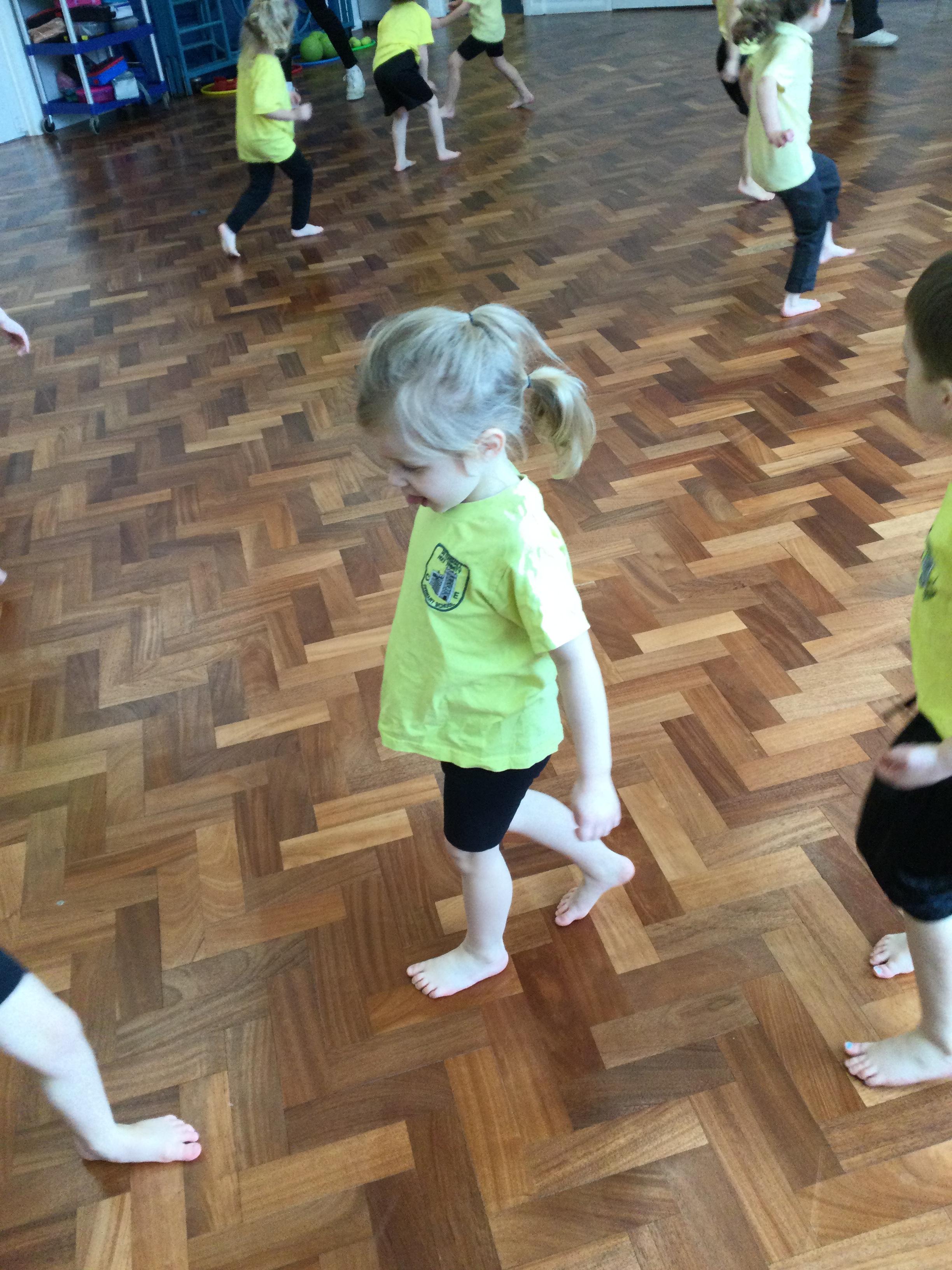 Today the children experimented with different equipment. This included a big ball, small ball and a bean bag. The children had to come up with different things they could do with their equipment.