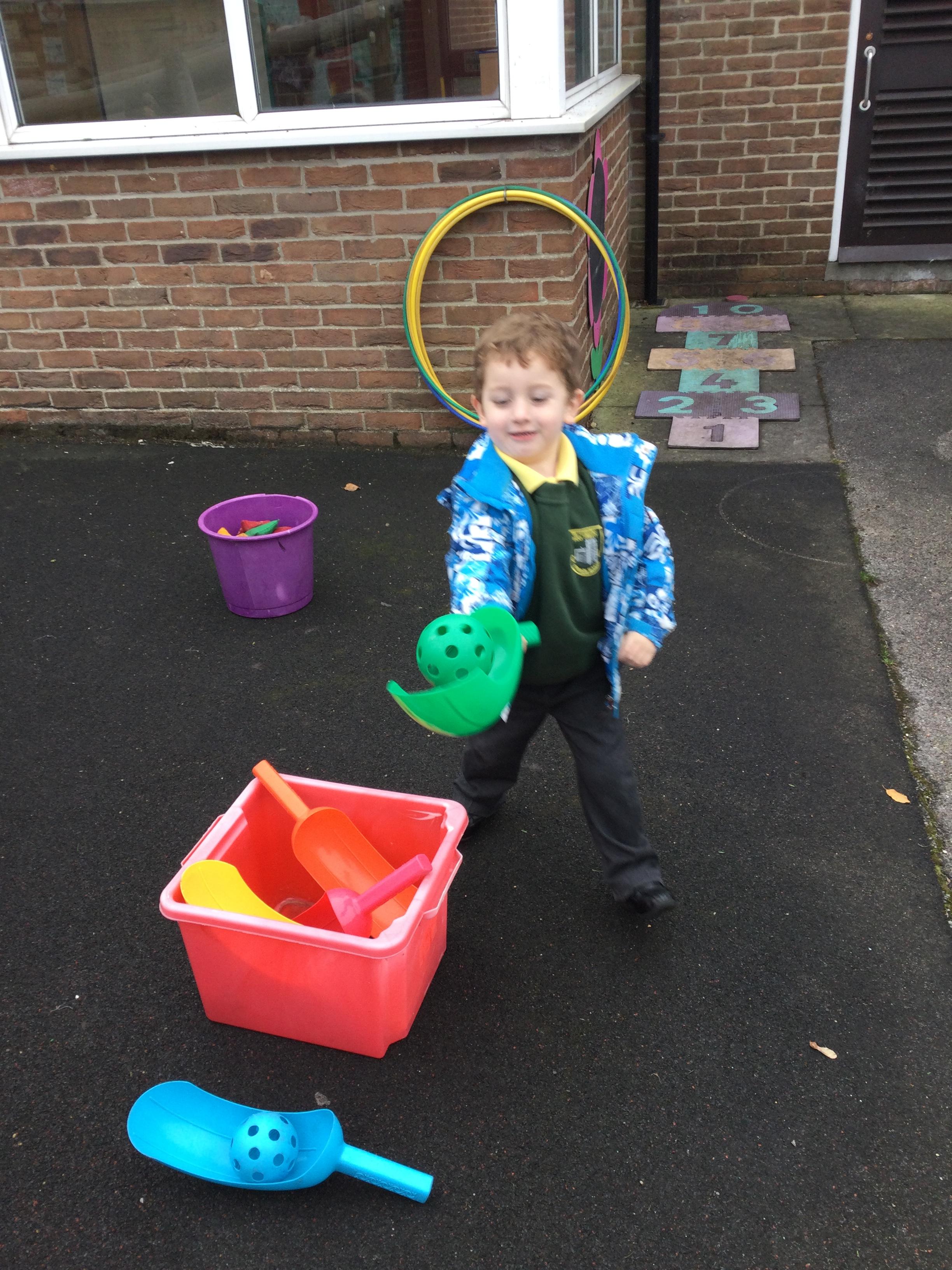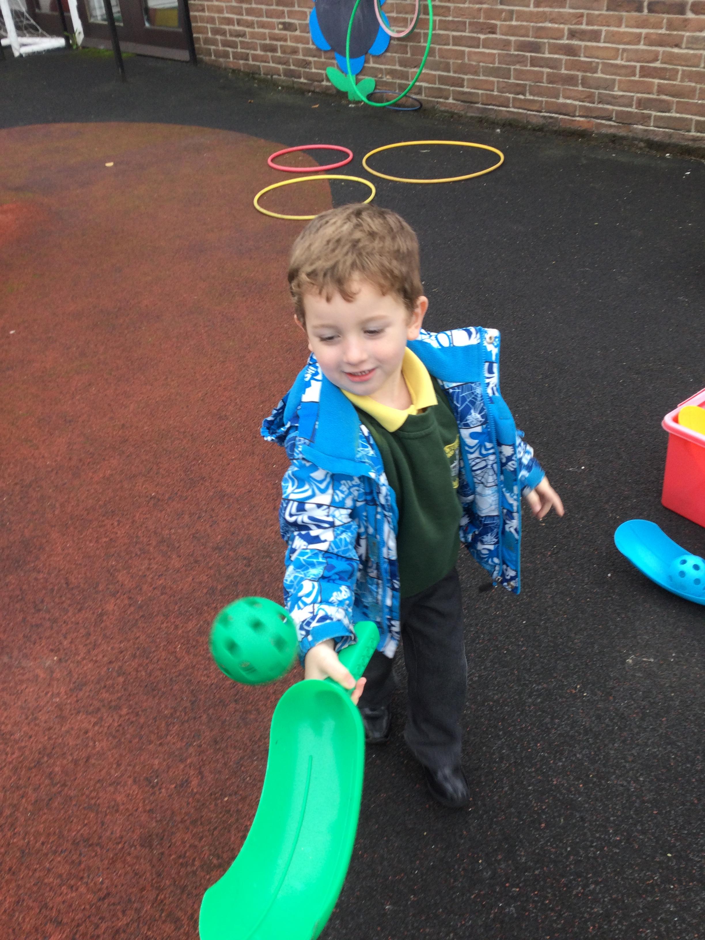 Whilst out in provision, some of the children practiced their ball skills, carrying on from their previous learning in PE