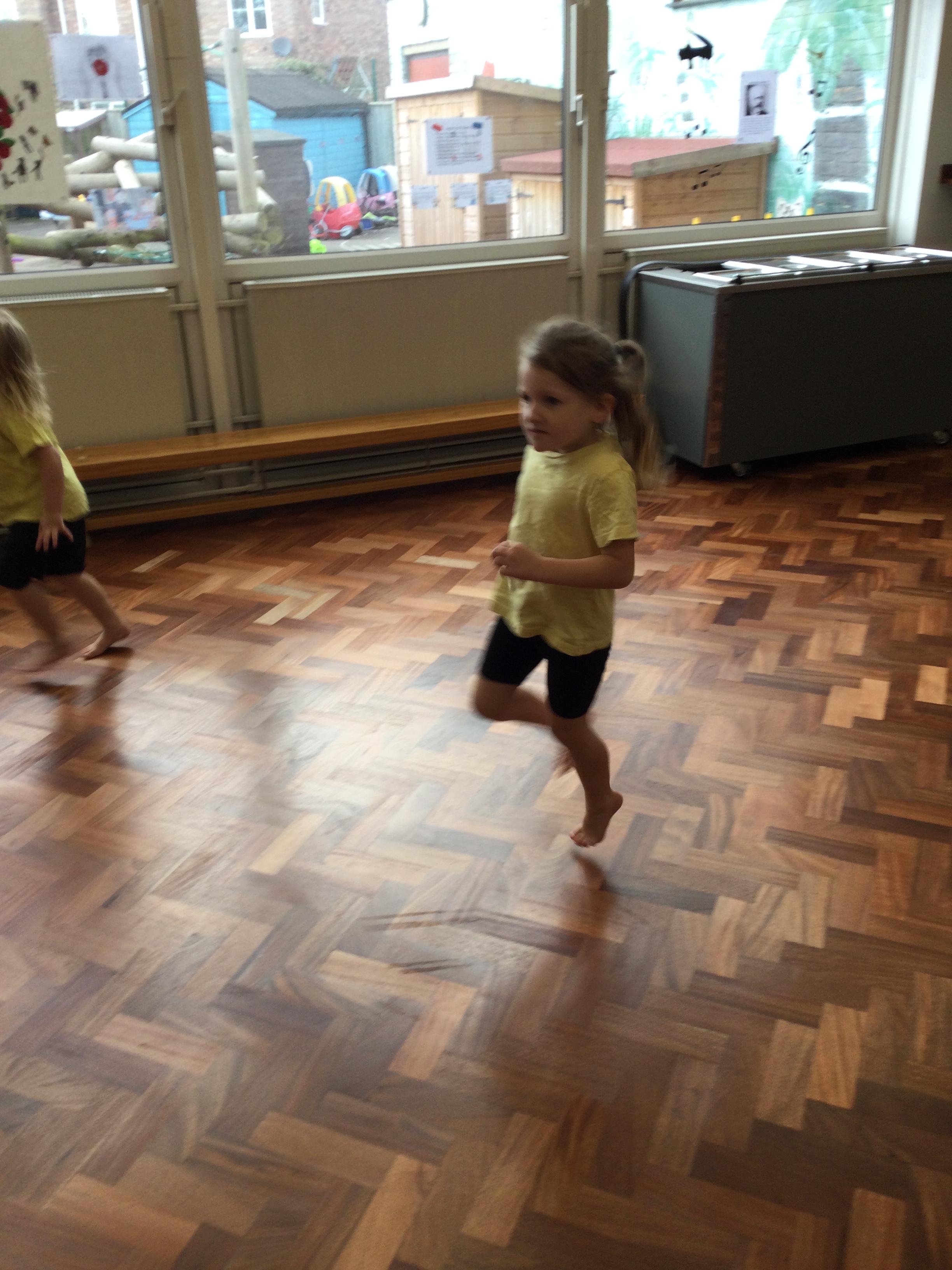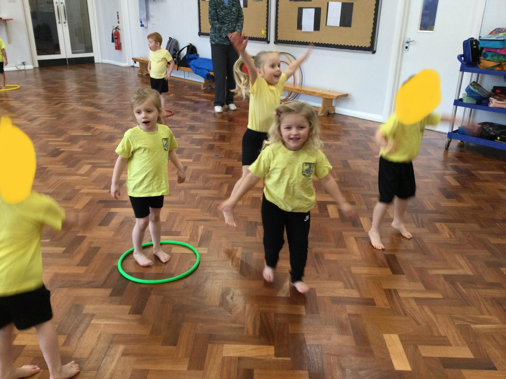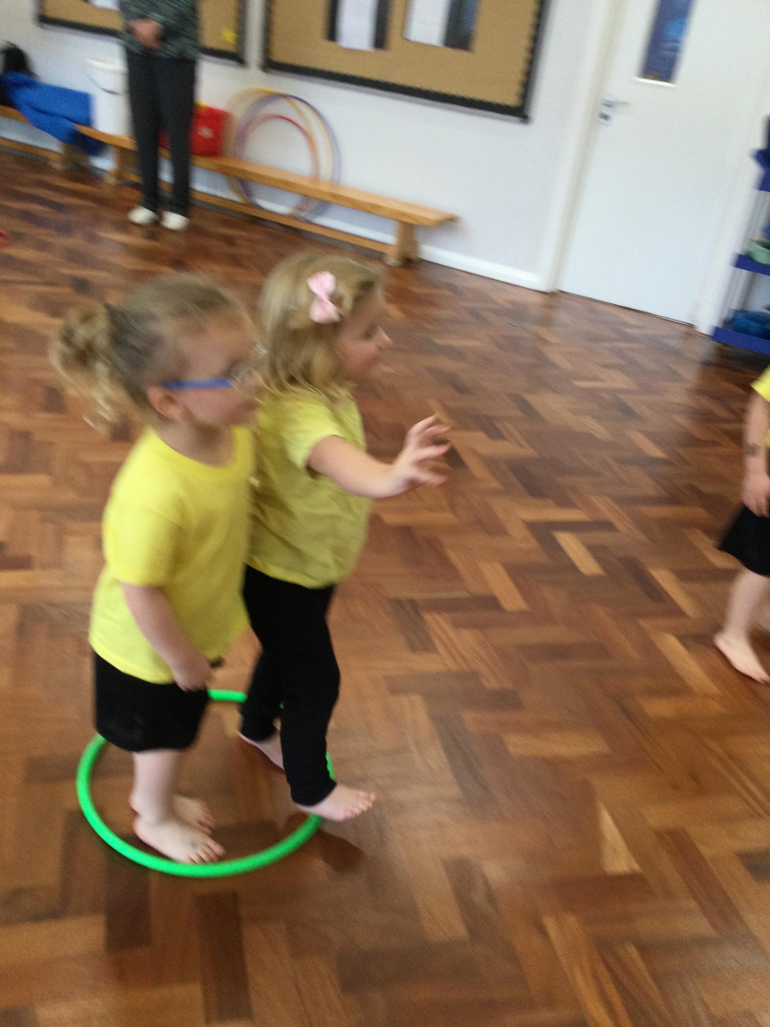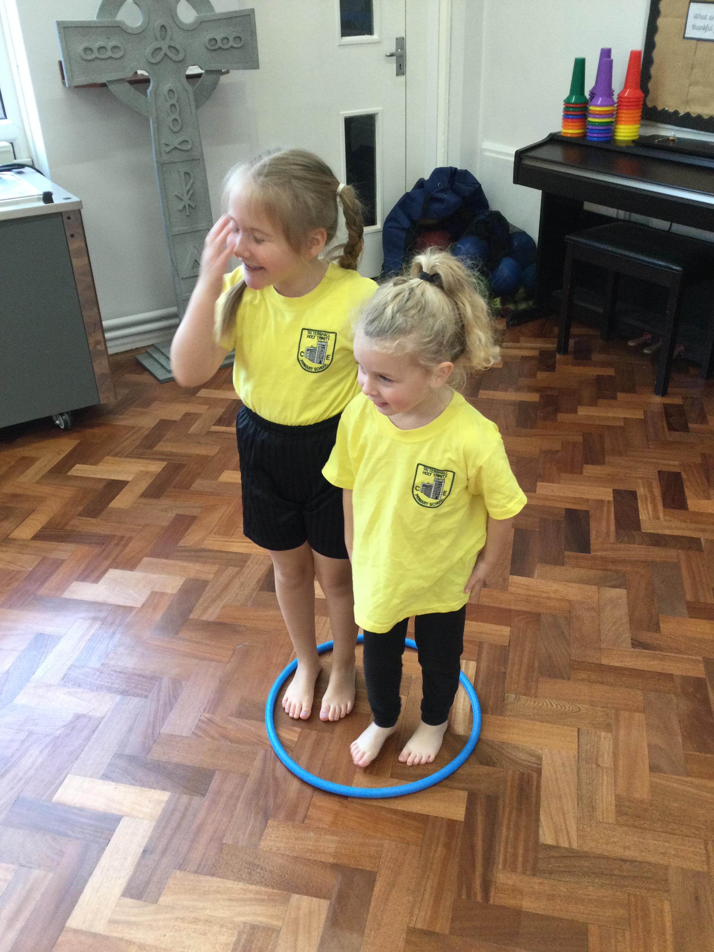Today in PE the children warmed up by moving in different ways and running into a coloured hoop when shark was called out. They then moved on to rolling balls to each other, rolling it along the ground into a hoop, rolling it to hit a cone and then moving on to hitting a skittle and trying to knock it down.