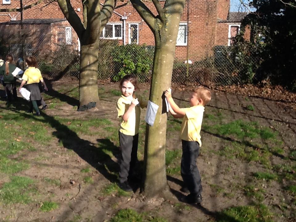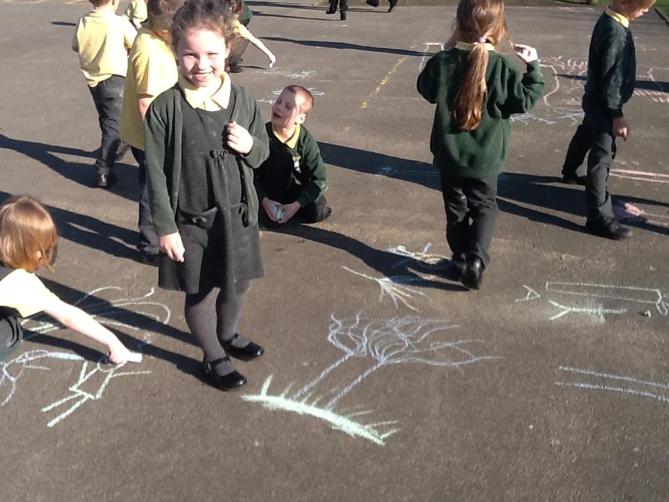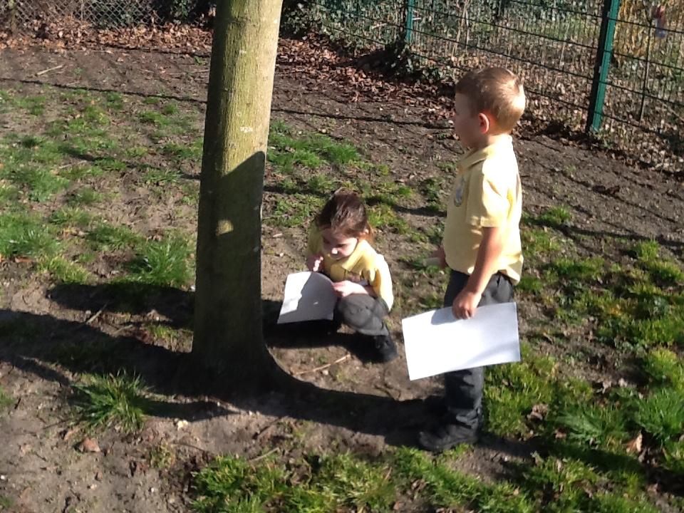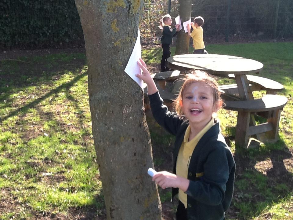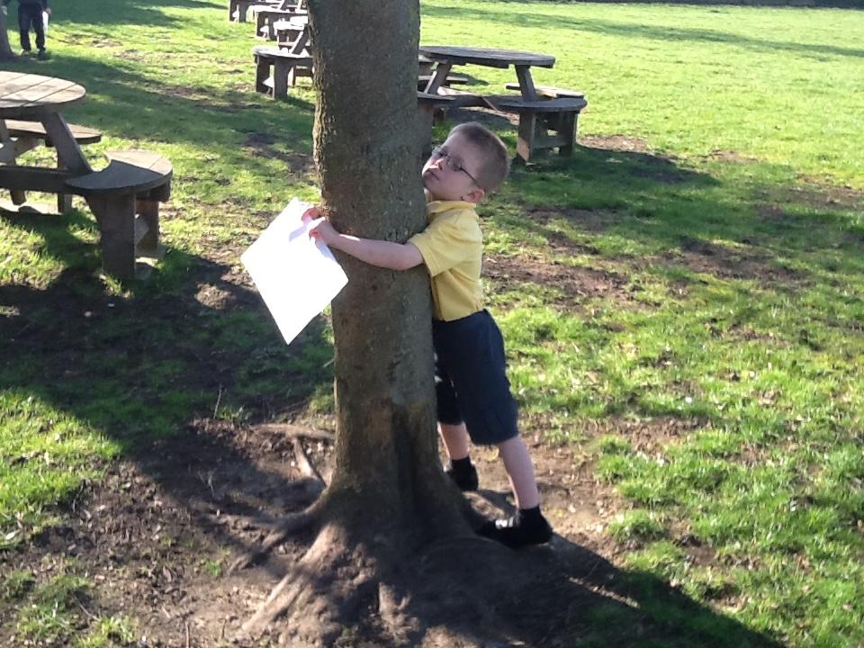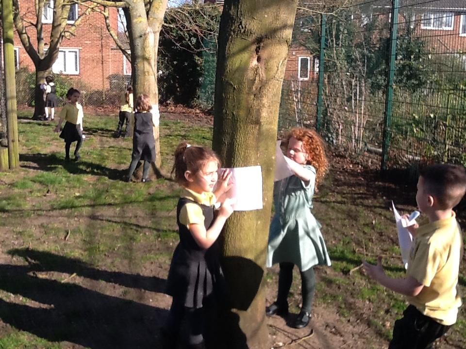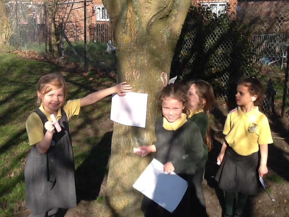 We made friends with a tree this afternoon. We named them, hugged them and got to know their bark by taking bark rubbings.