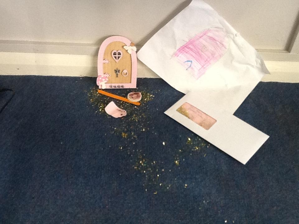 Today Tinkerbell left us a letter outside the fairy door Lily brought in. After replying with our own letters saying we would love her to visit, she arrived. She can't wait to have a sleepover at everyone's houses!