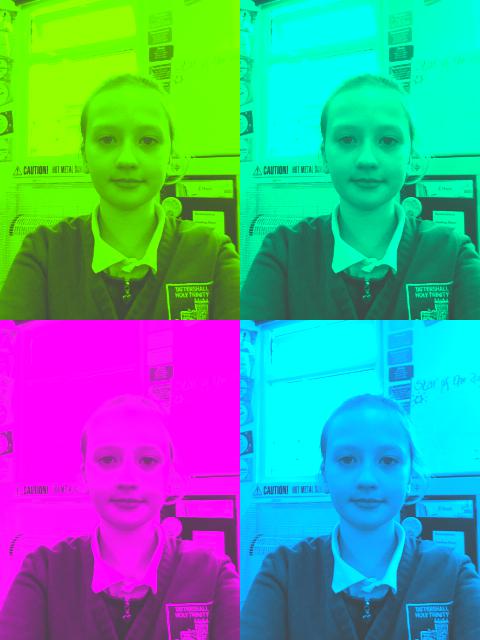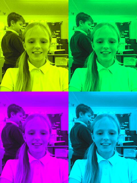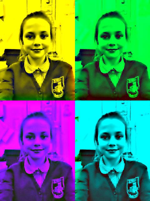 This week we looked at the work of Andy Warhol (Pop Art), then we used our ICT skills and programmes such a Pixlr and 2Simple photo to change the colour, light and textural effects on digital photographs we had taken in class.