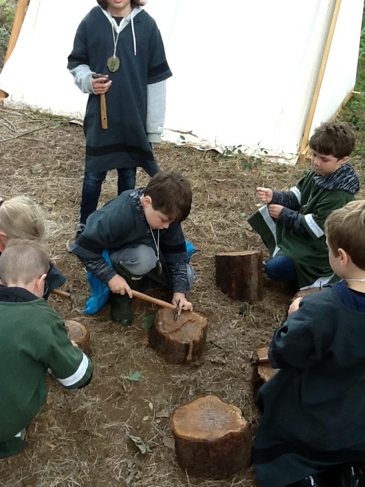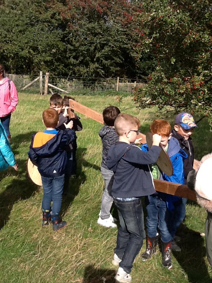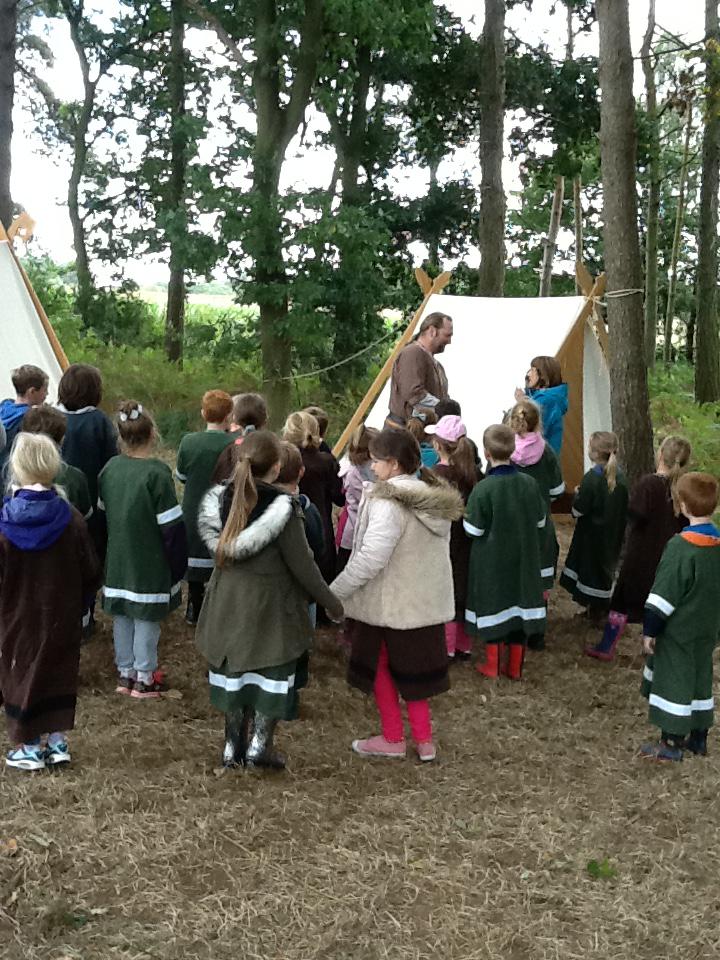We had a fantastic day at Perlethorpe on our trip this week! We arrived in the morning and we were met by Marcus No Laugh the Viking! He was really funny and very loud! We donned our Viking tunics and split into clans. We had to trek up to our Viking settlement in the forest, where we sat on sheepskin rugs and learnt all about the Viking weapons and way of life. We then got to make our own jewellery, grind flour and a play a Viking shield game! After lunch, we went into the forest to build our own Viking settlement. Our shelters were amazing and they even lasted the hurricane and rainstorm test!