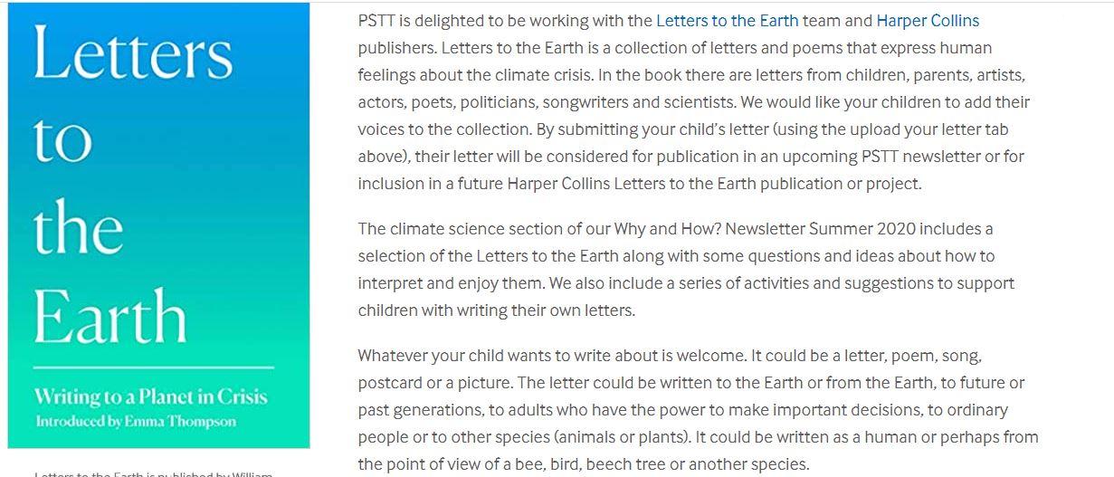 Mrs Addison has invited us to take part in a competition this week to write a letter, a poem or a piece of writing to the Earth for the chance to win prizes for school and become a part of an Earth Book!