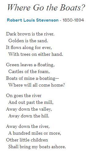Reading Activity – 'Where Go the Boats' by Robert Louis Stevenson